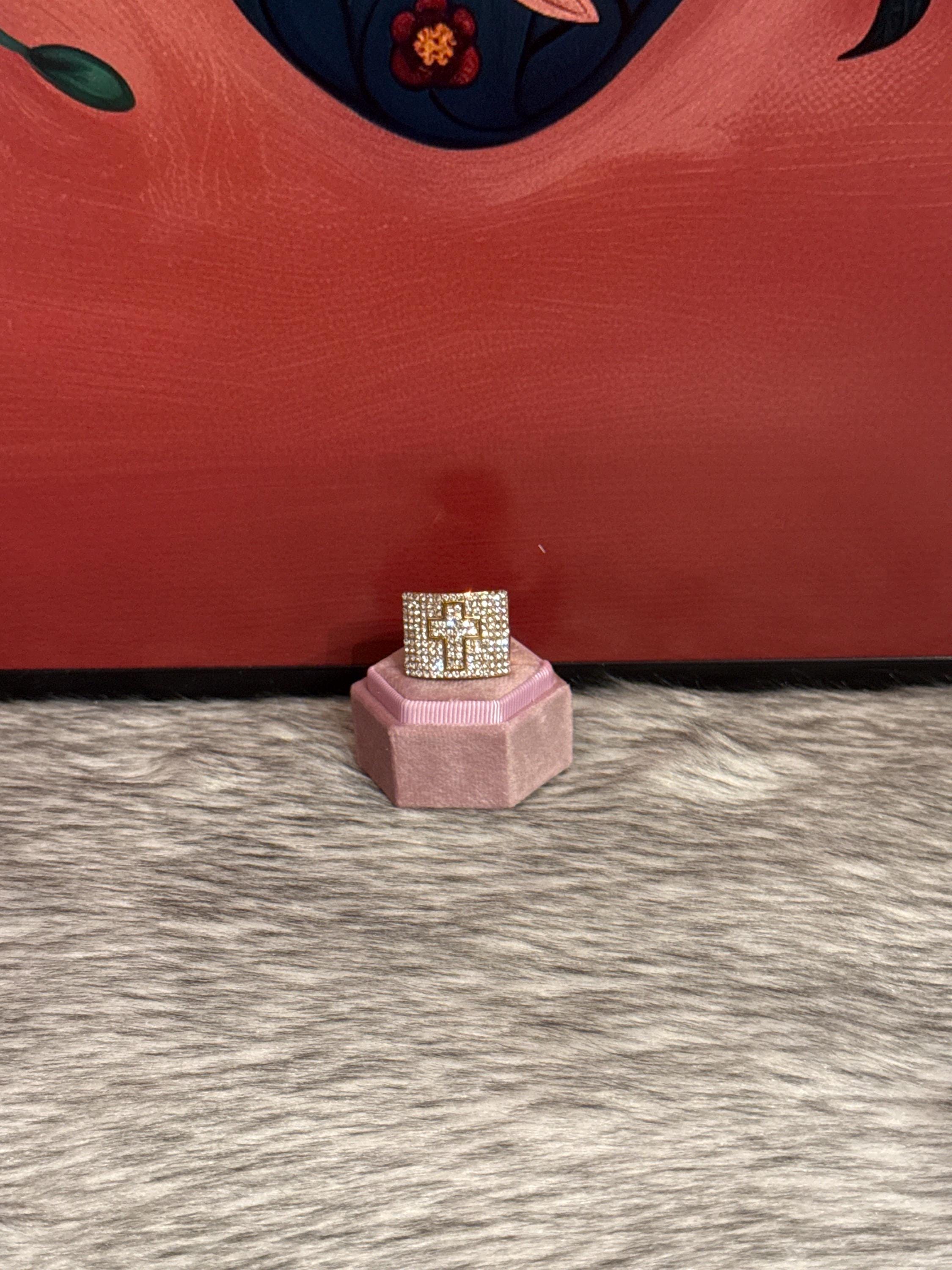 Beautiful cross ring with crystals, made in 14k gold plated, available in unisex size 8.