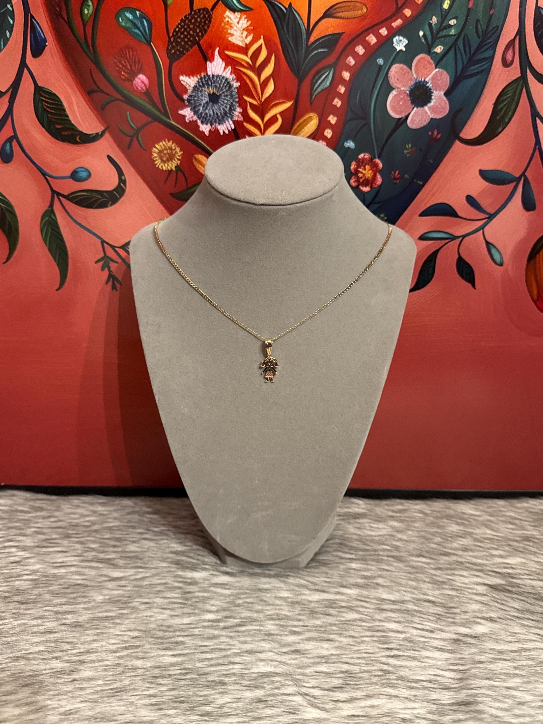 Beautiful necklace with a girl pendant in 18k gold plated, the chain measures approximately 16 inches long