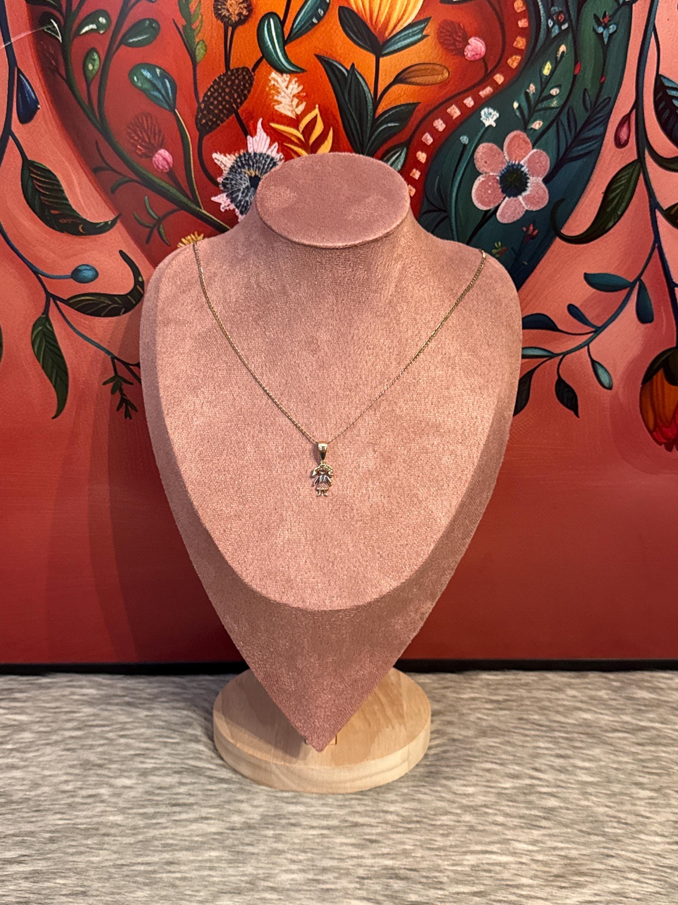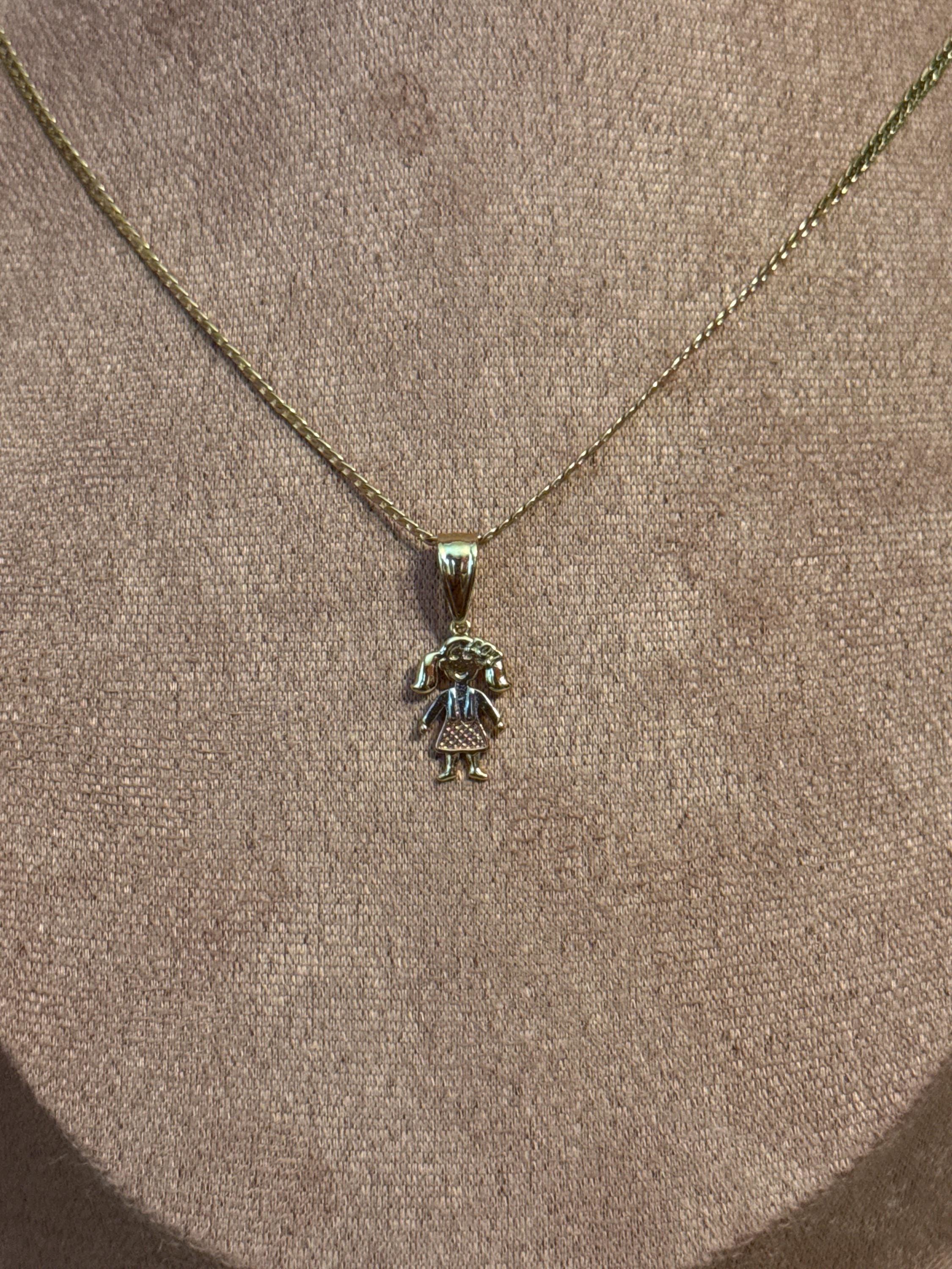 Beautiful necklace with a girl pendant in 18k gold plated, the chain measures approximately 16 inches long
