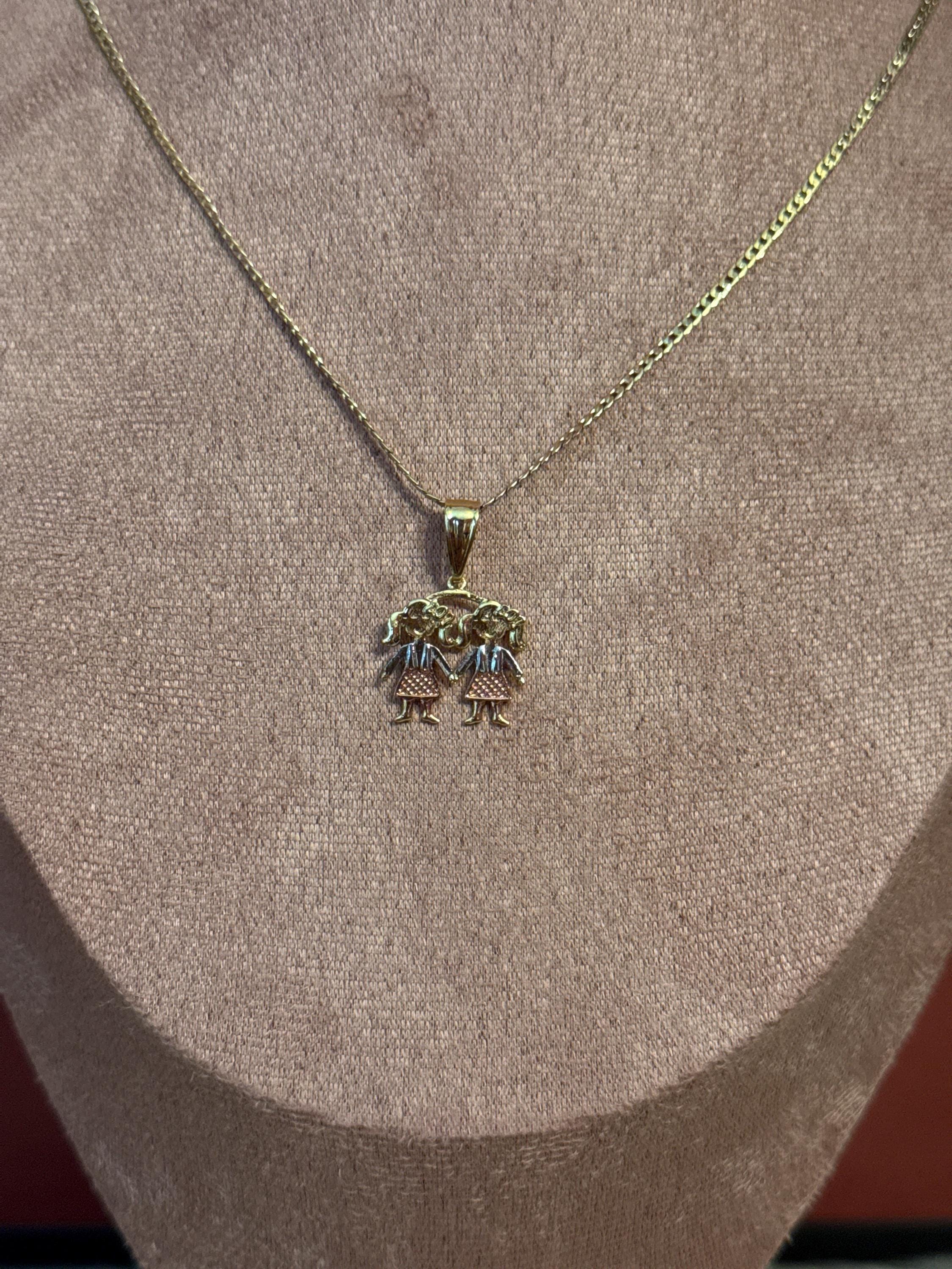 Beautiful necklace with a pendant of two girls in 18k gold plated, the chain measures approximately 16 inches long