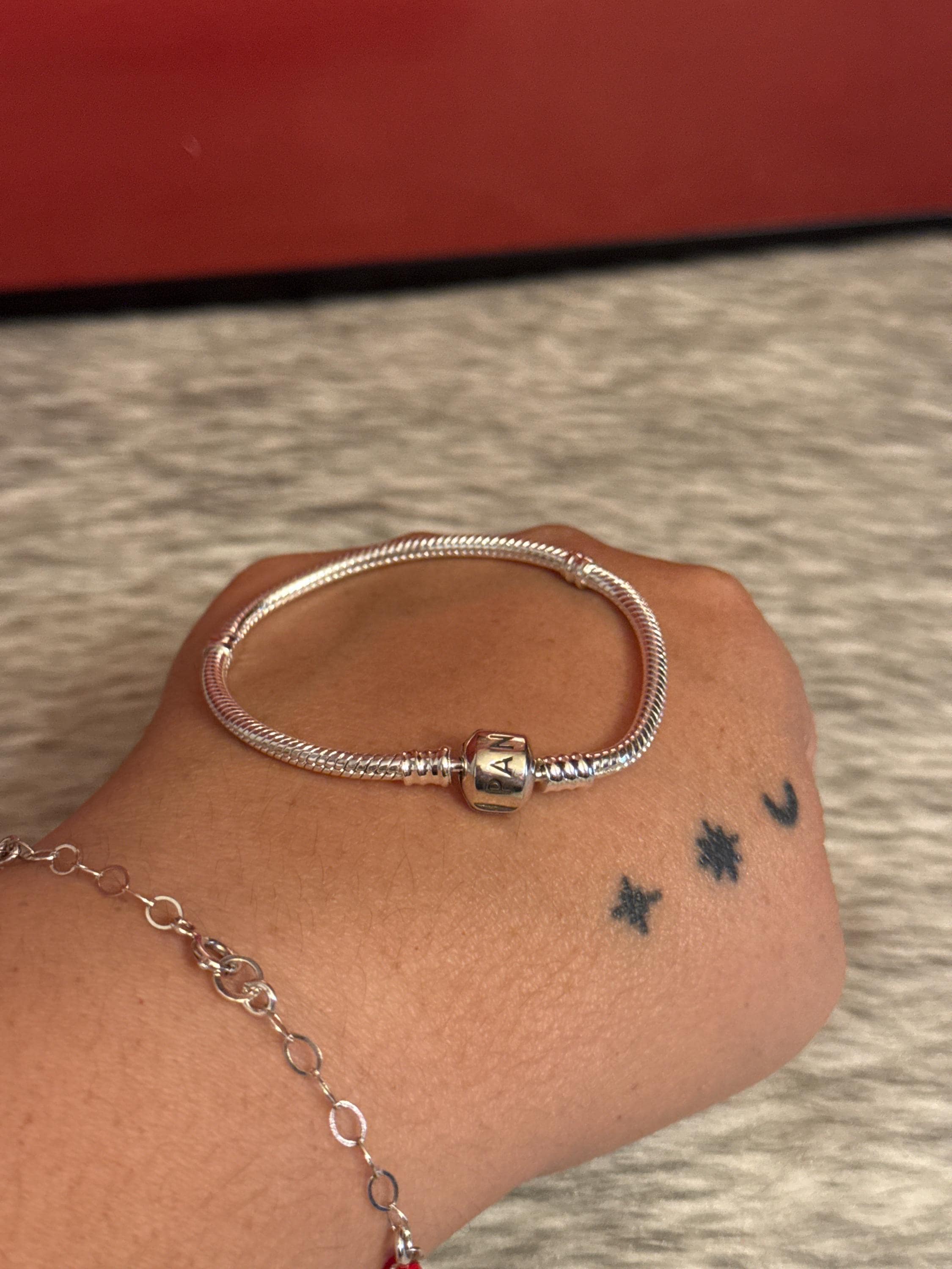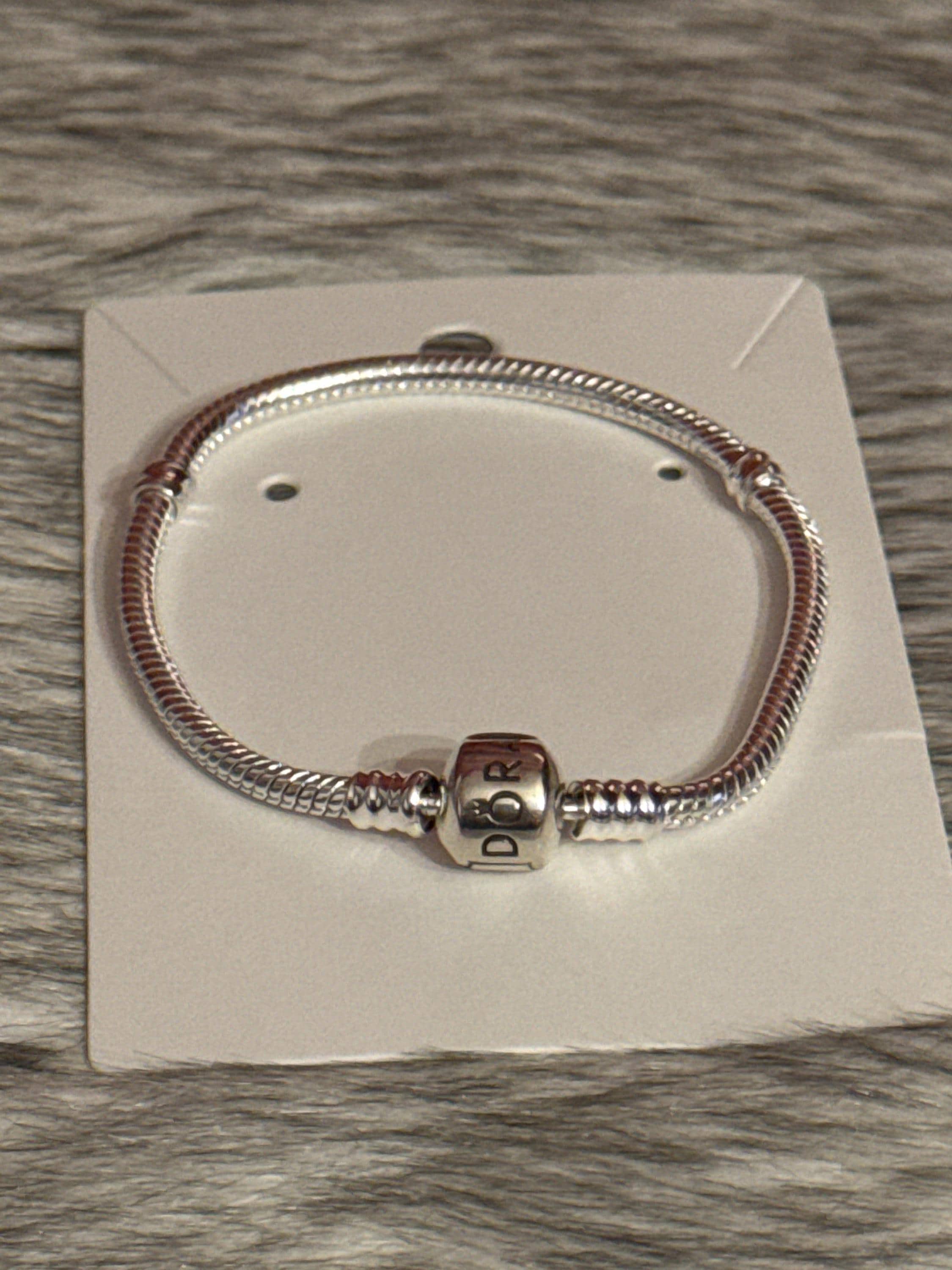 Beautiful Pandora style bracelet approximately 7.5 inches long made of 925 sterling silver.