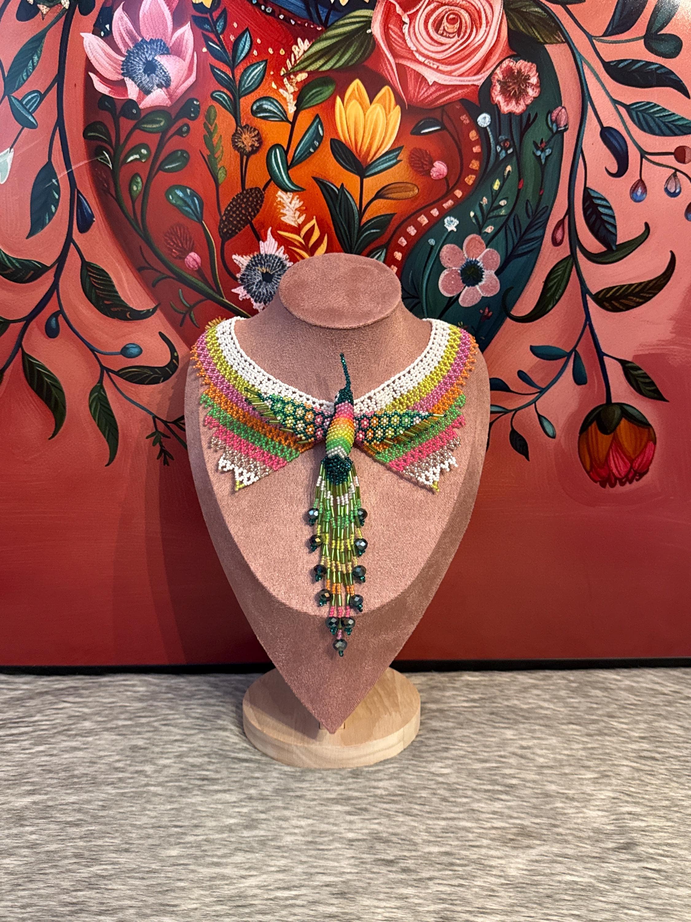 Beautiful handmade hummingbird necklace set, includes earrings and bracelet, handmade with bugle beads.