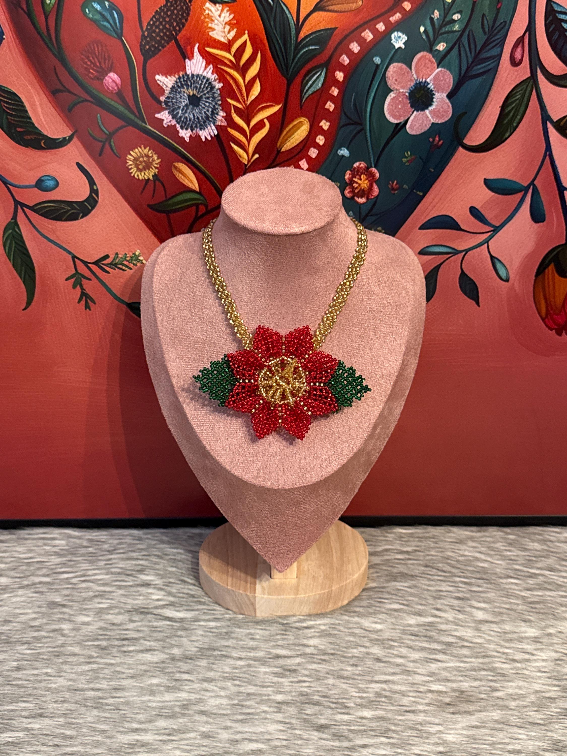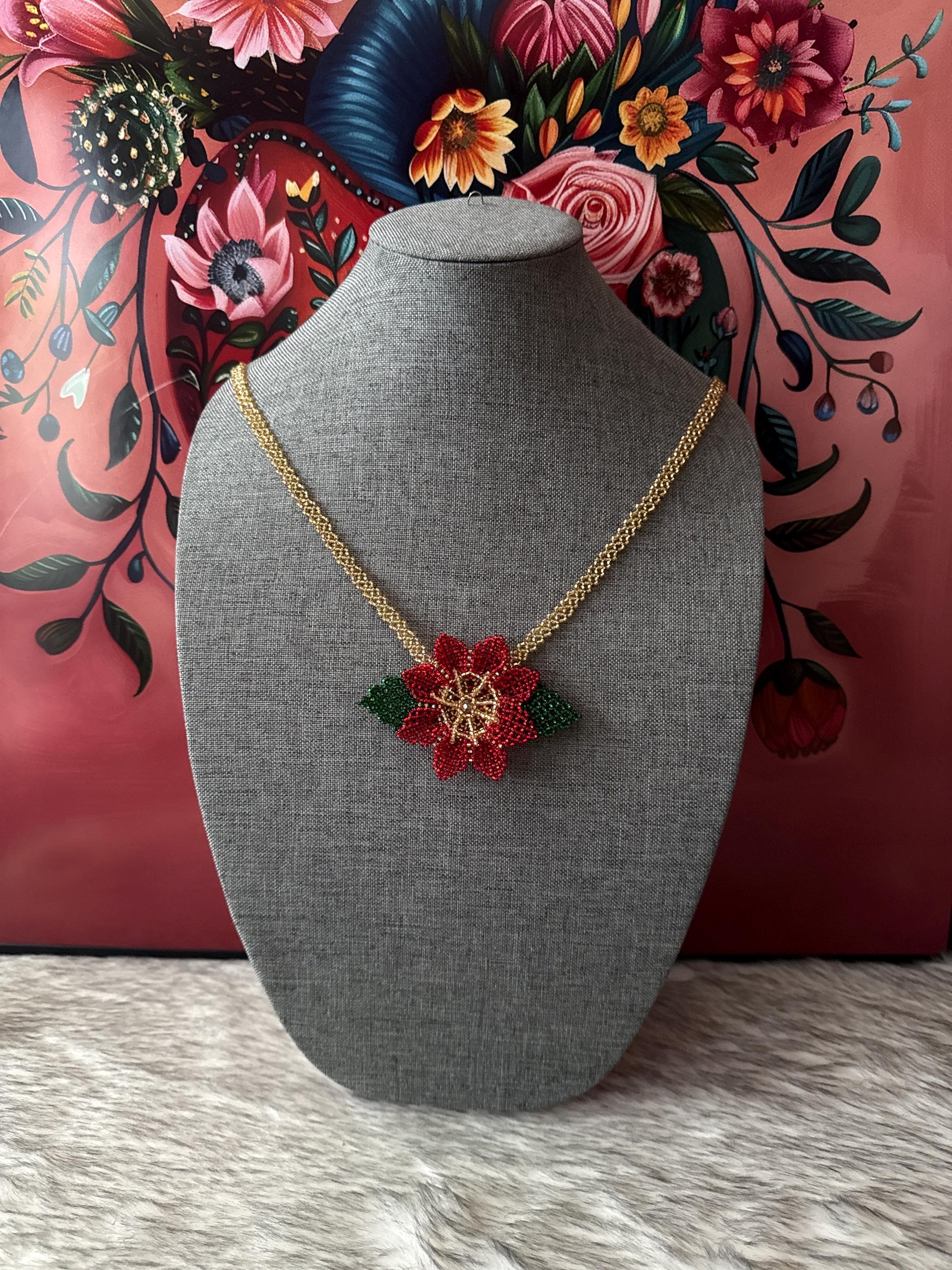 Beautiful Christmas Flower necklace with earrings, handmade by Mexican artisans.