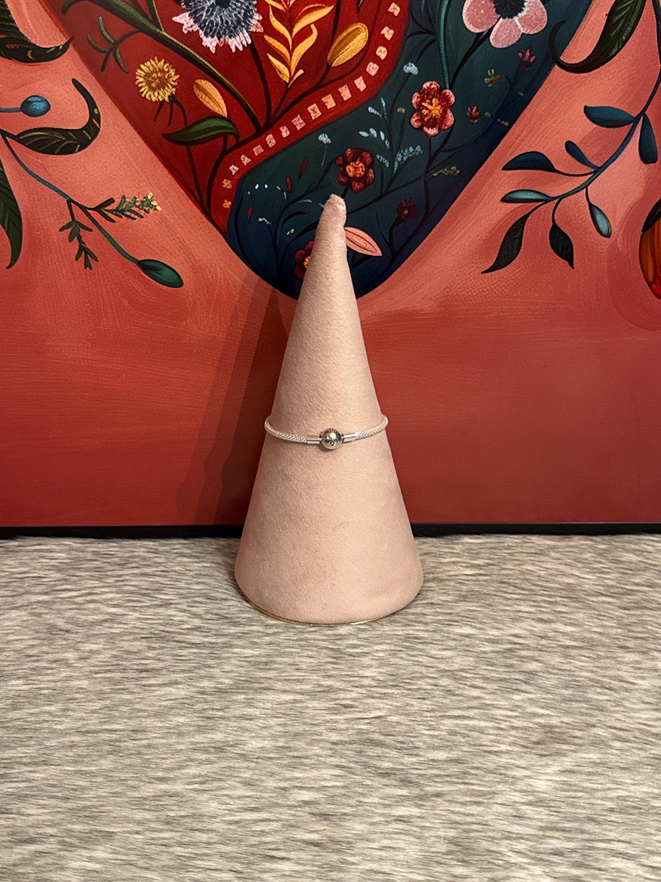 Beautiful Pandora style bracelet approximately 6.5 inches long made of 925 sterling silver.