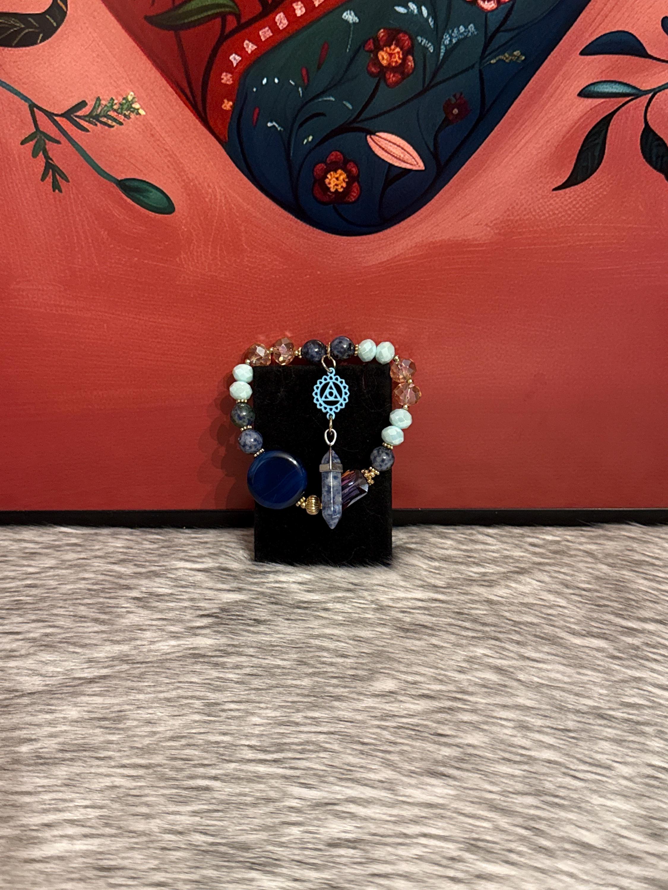 Beautiful handmade bracelet crafted with Czech crystals and natural agate stones, Mexican handicraft.