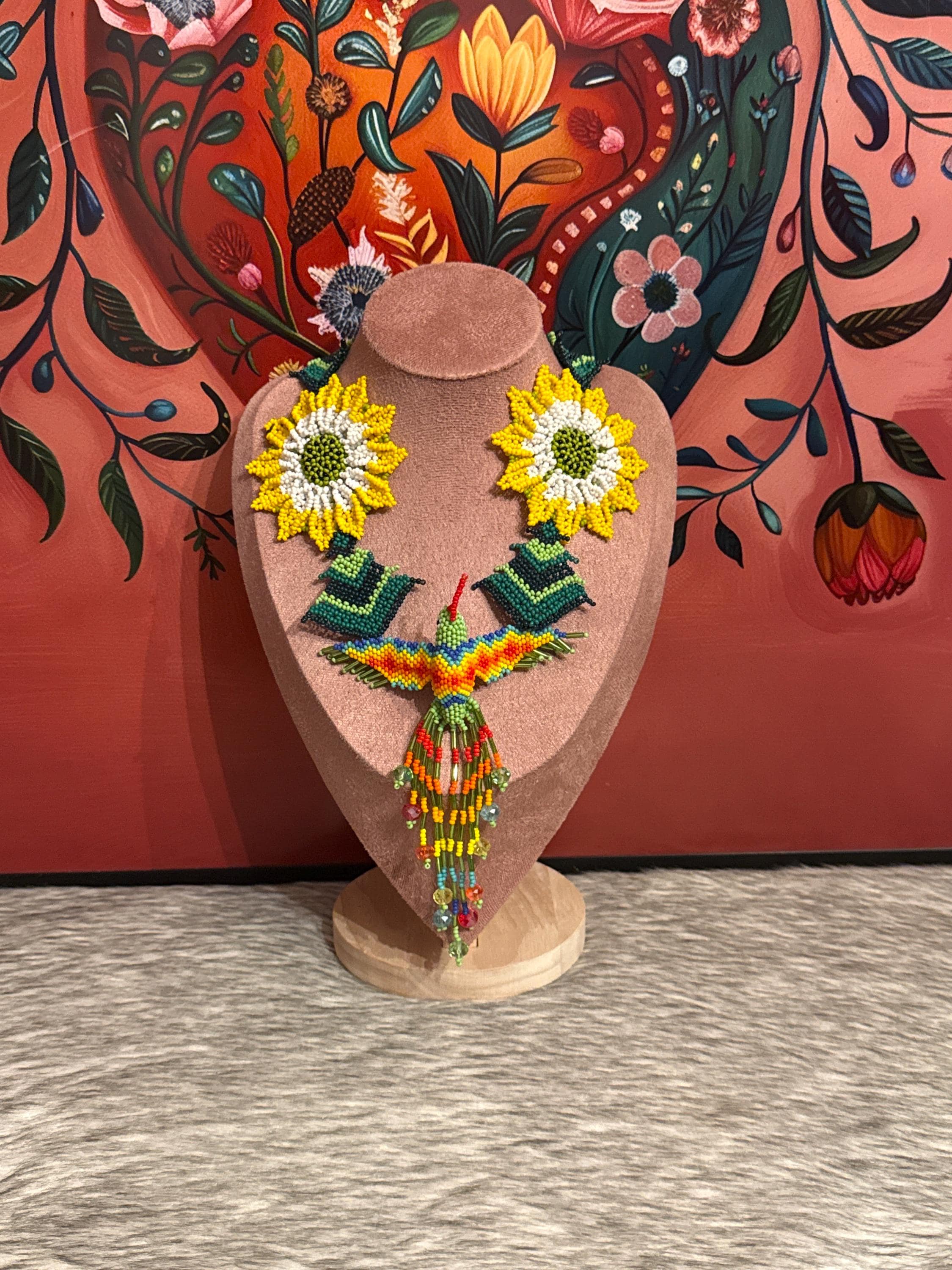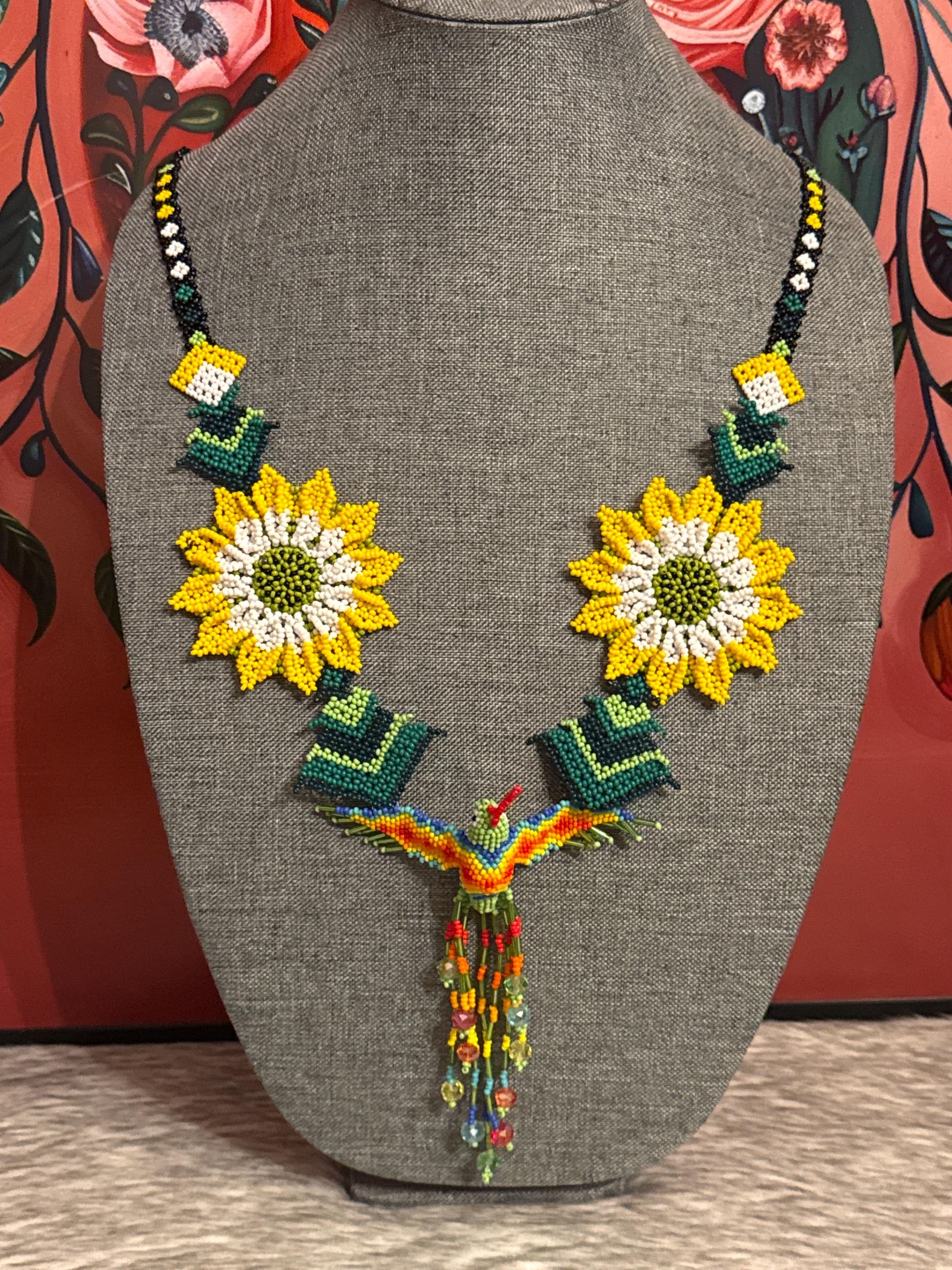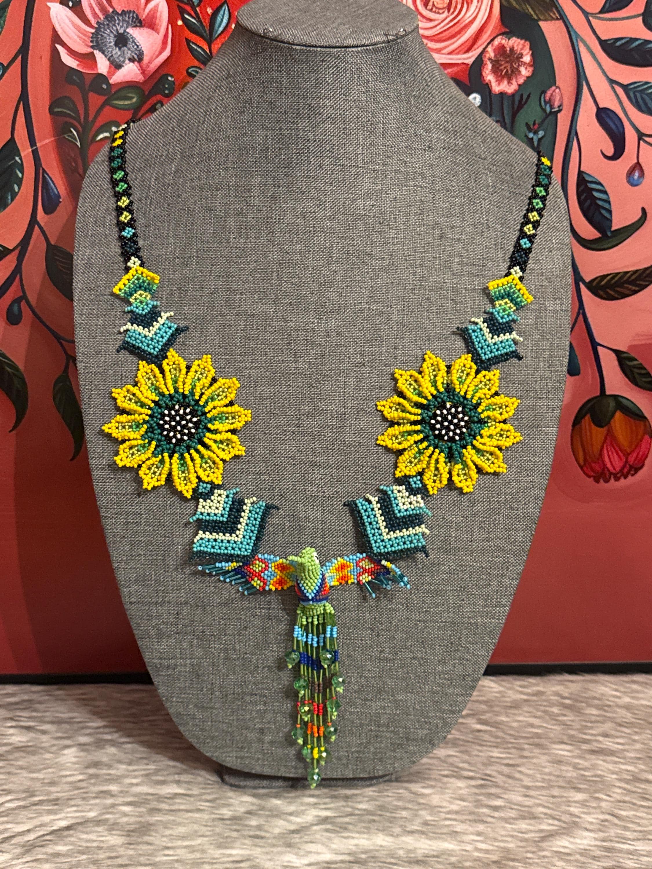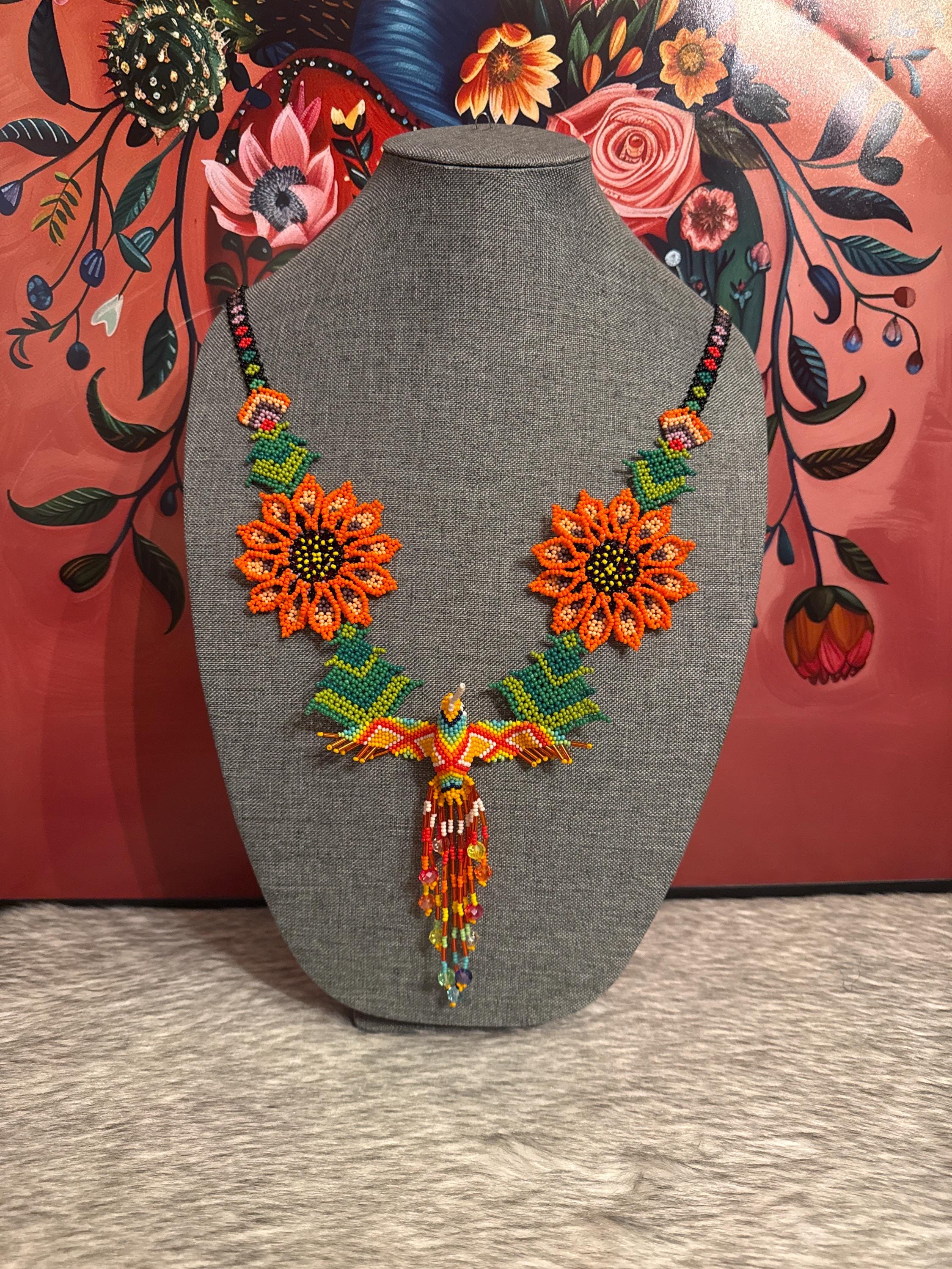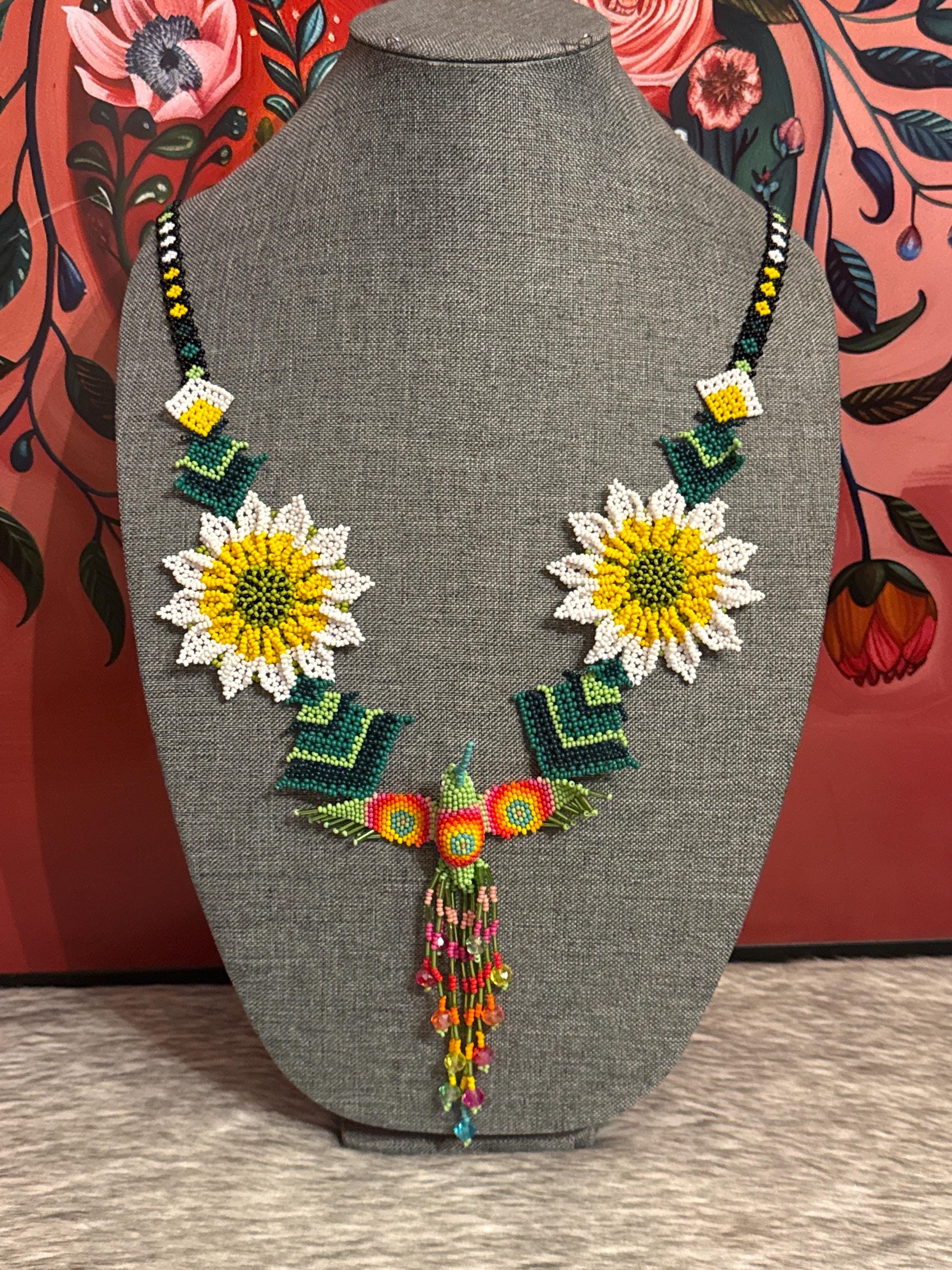 Beautiful hummingbird necklace set with earrings and bracelet, handmade by Mexican artisans.