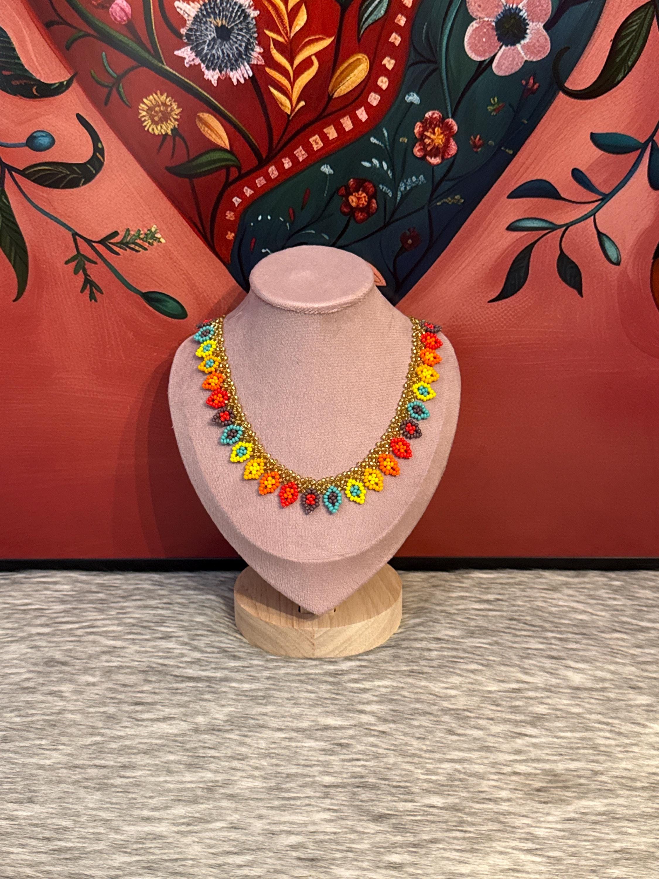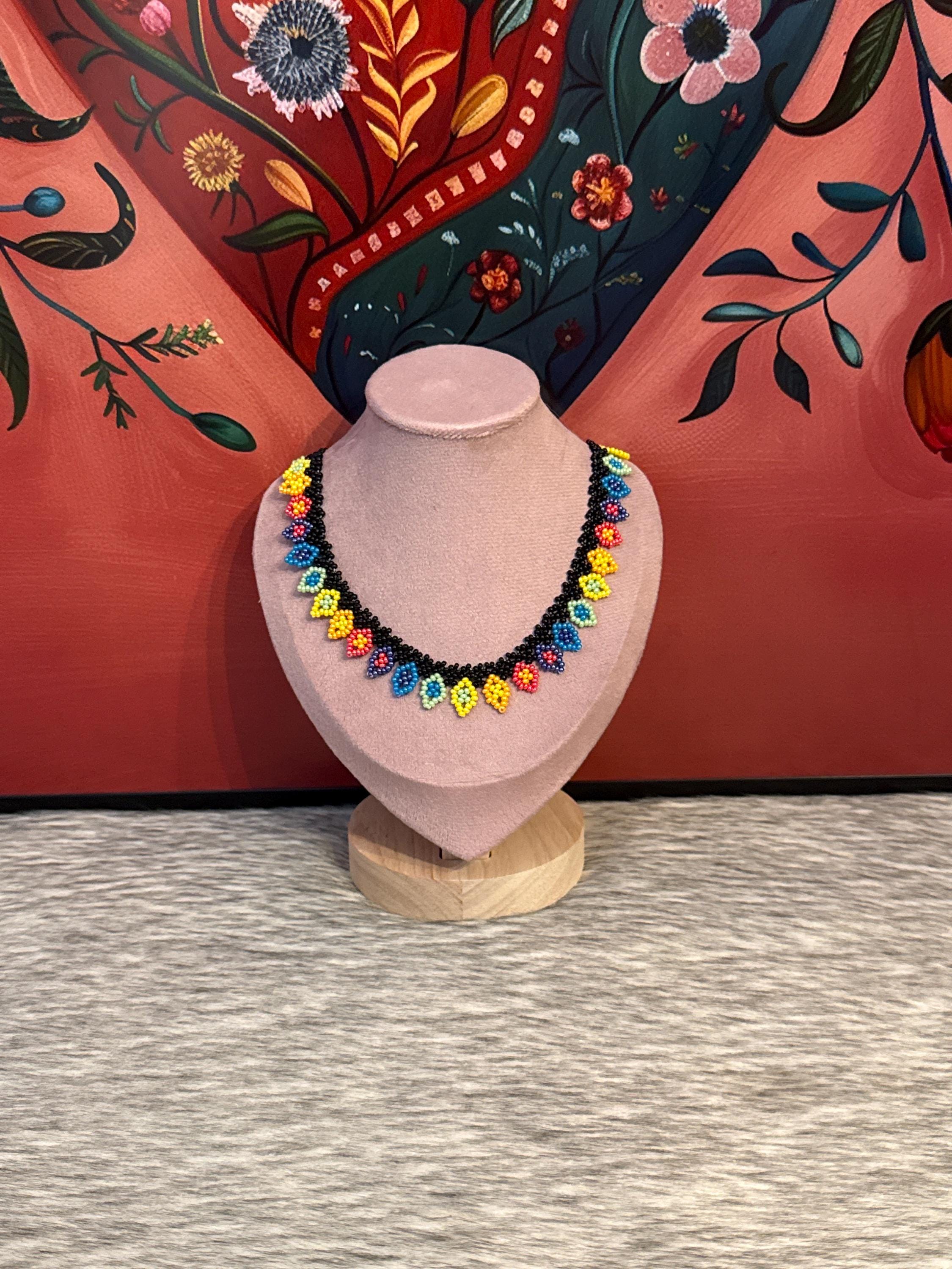 Beautiful choker necklace with diamond patterns, handmade by Mexican artisans.
