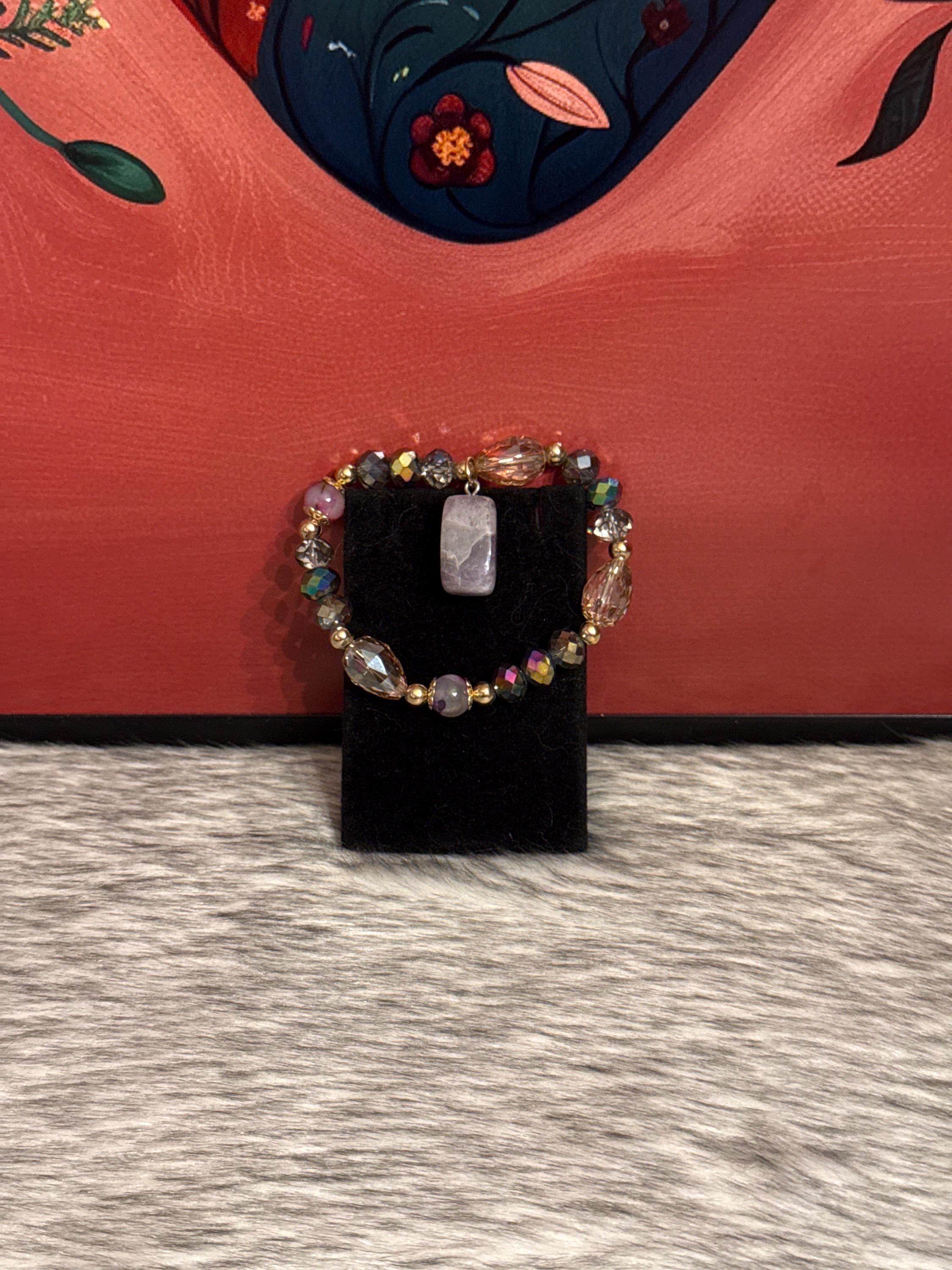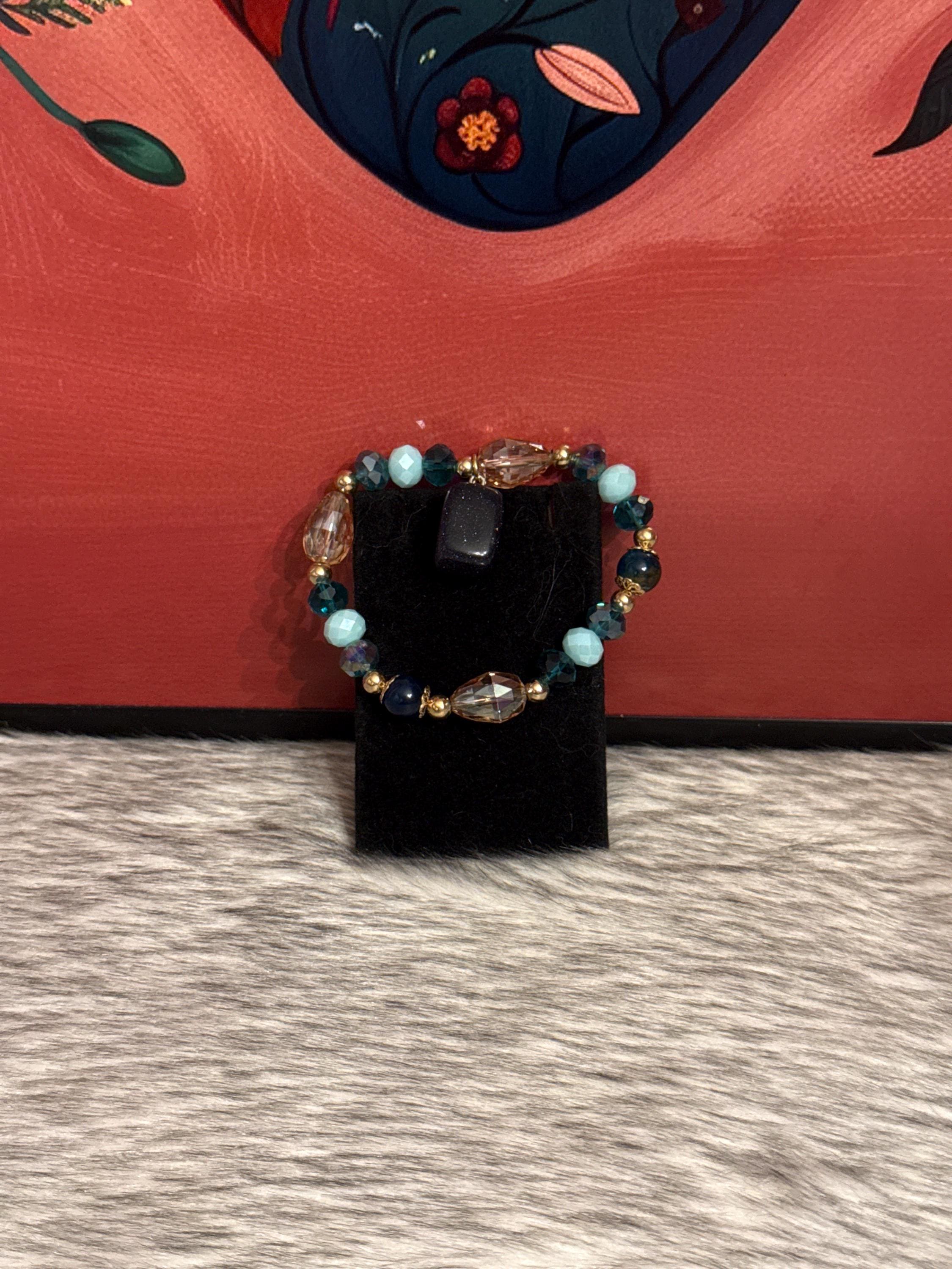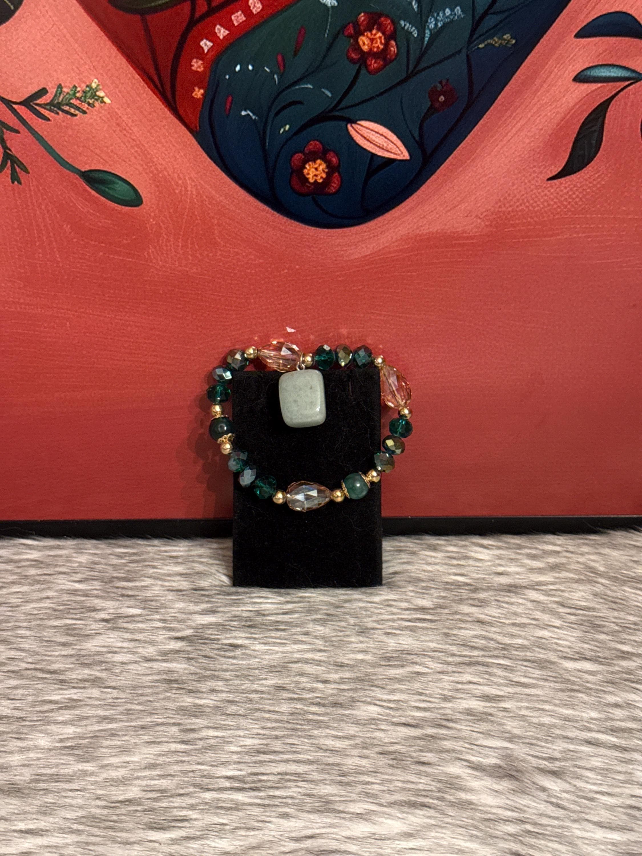 Beautiful handmade bracelet crafted with Czech crystals and natural agate stones, Mexican handicraft.