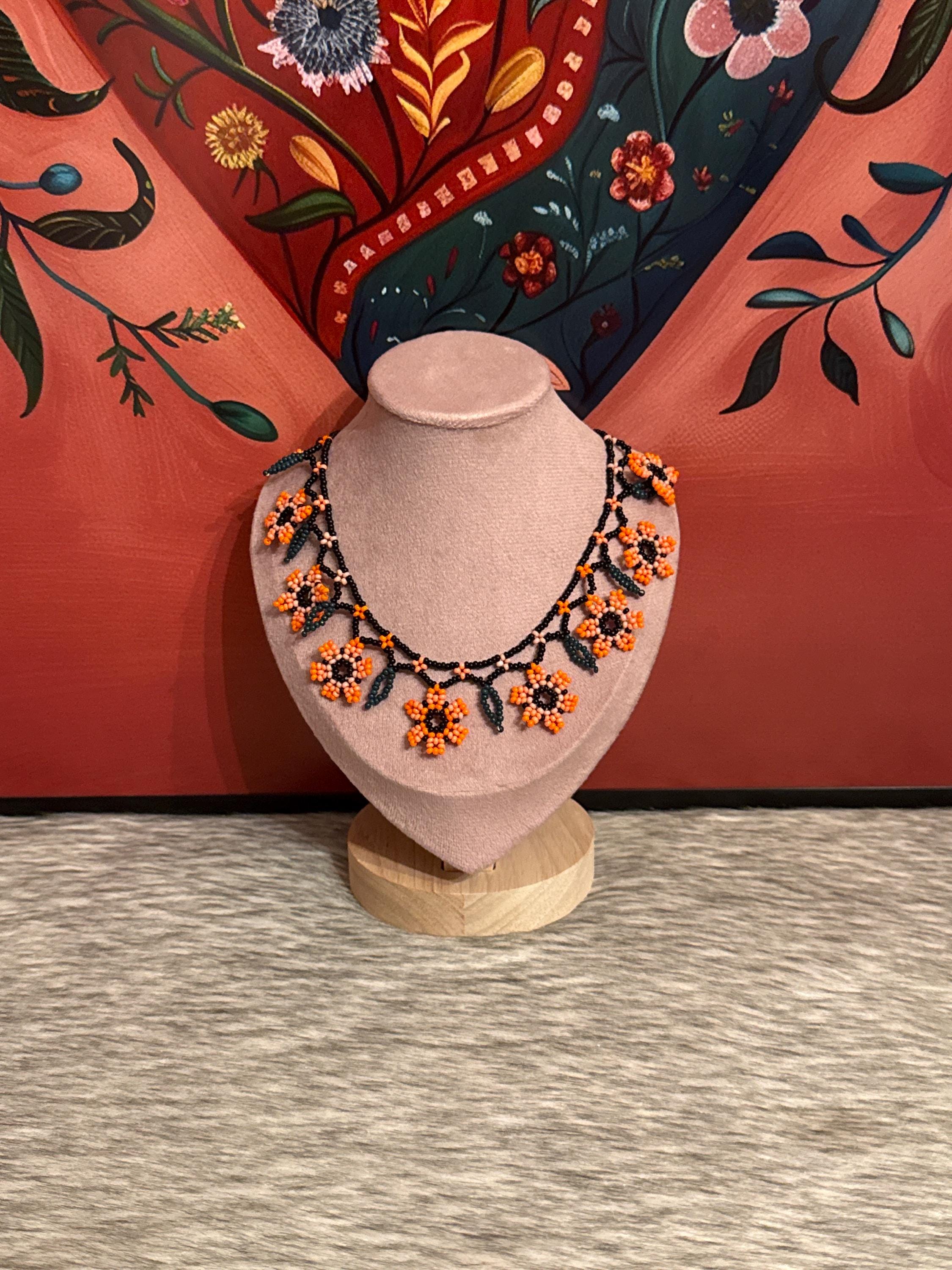 Beautiful flower choker necklace set with earrings and bracelet, handmade by Mexican artisans.