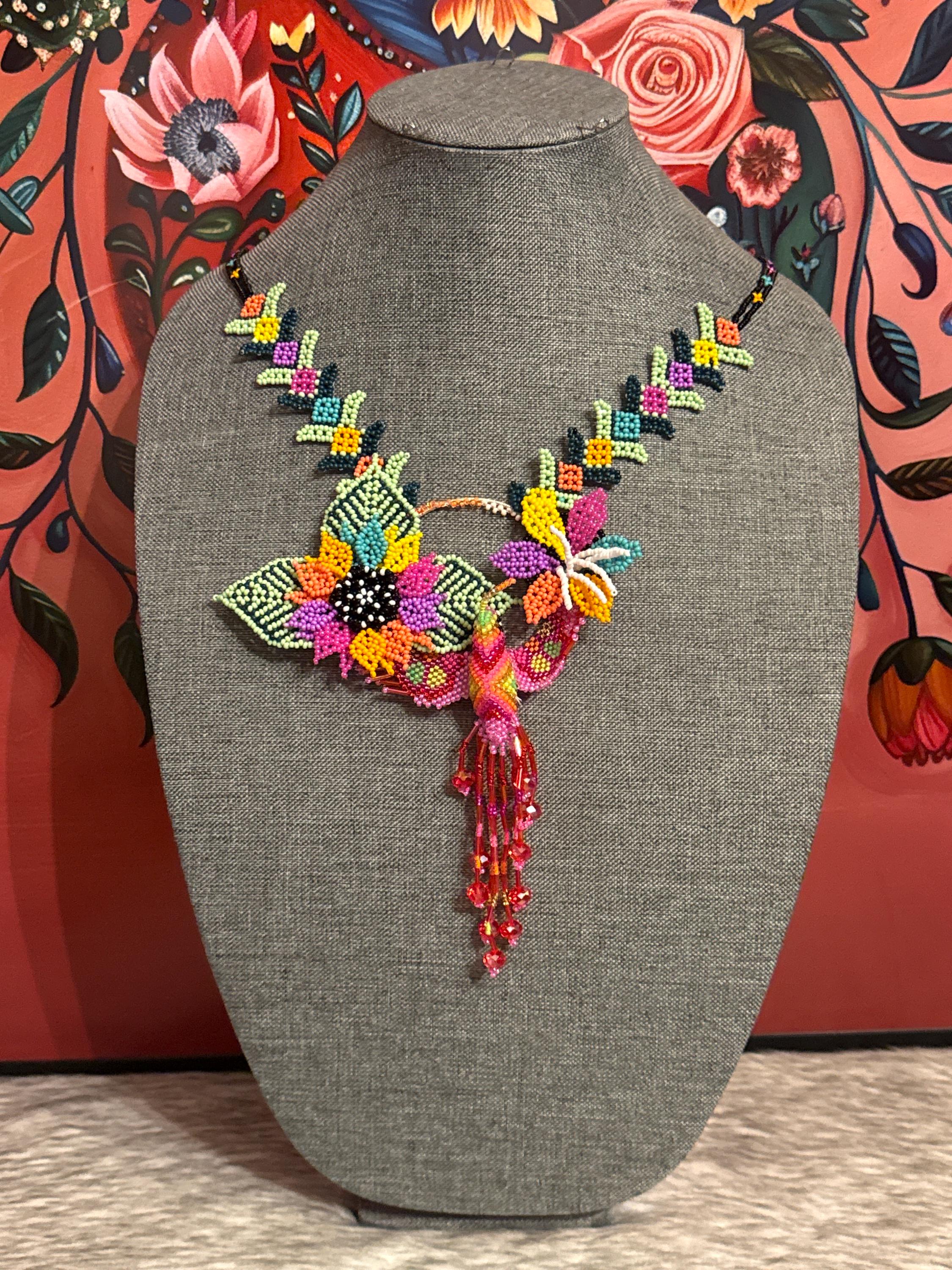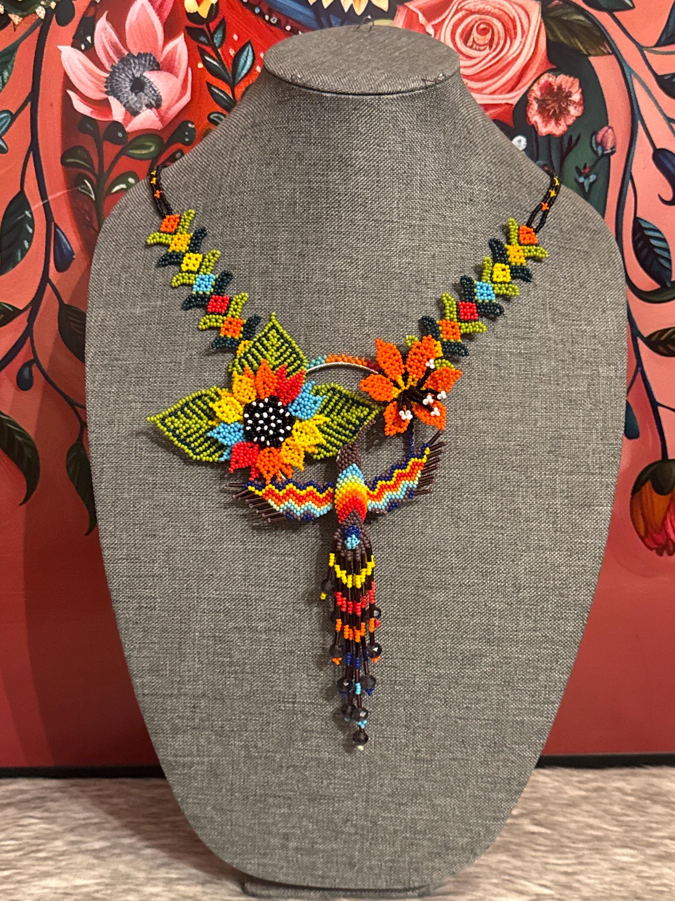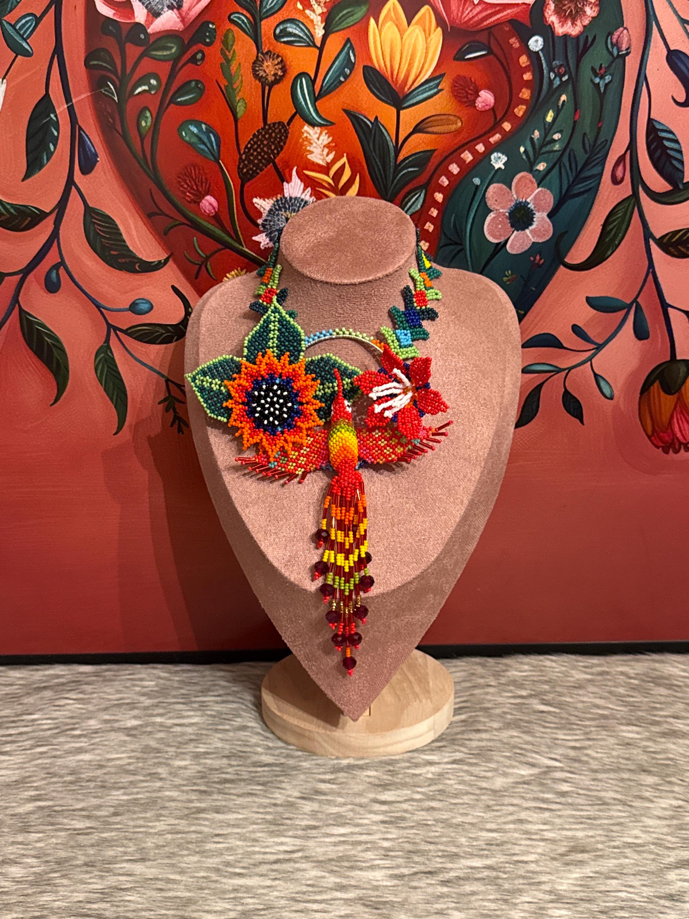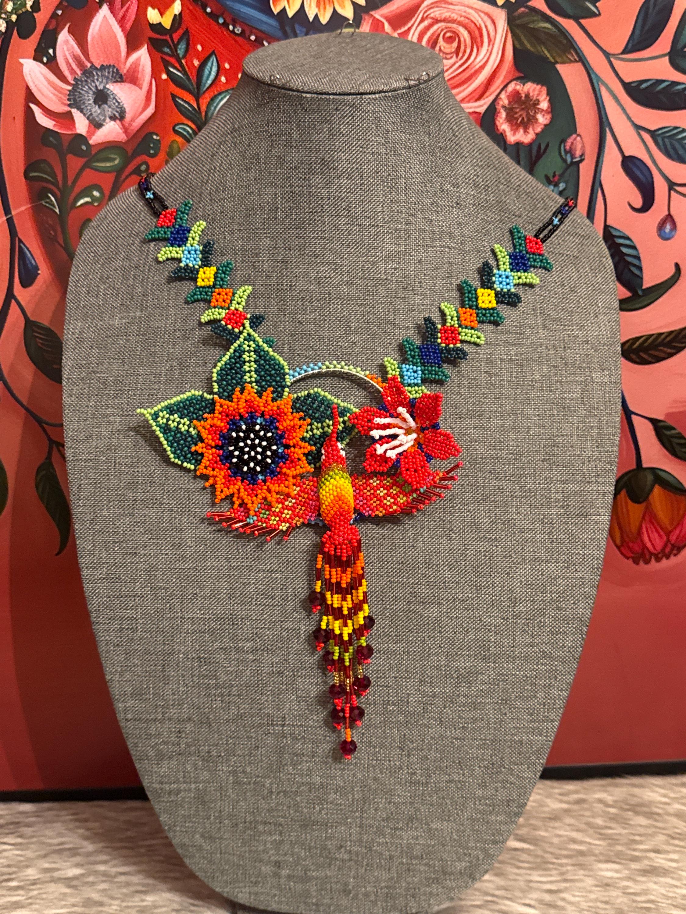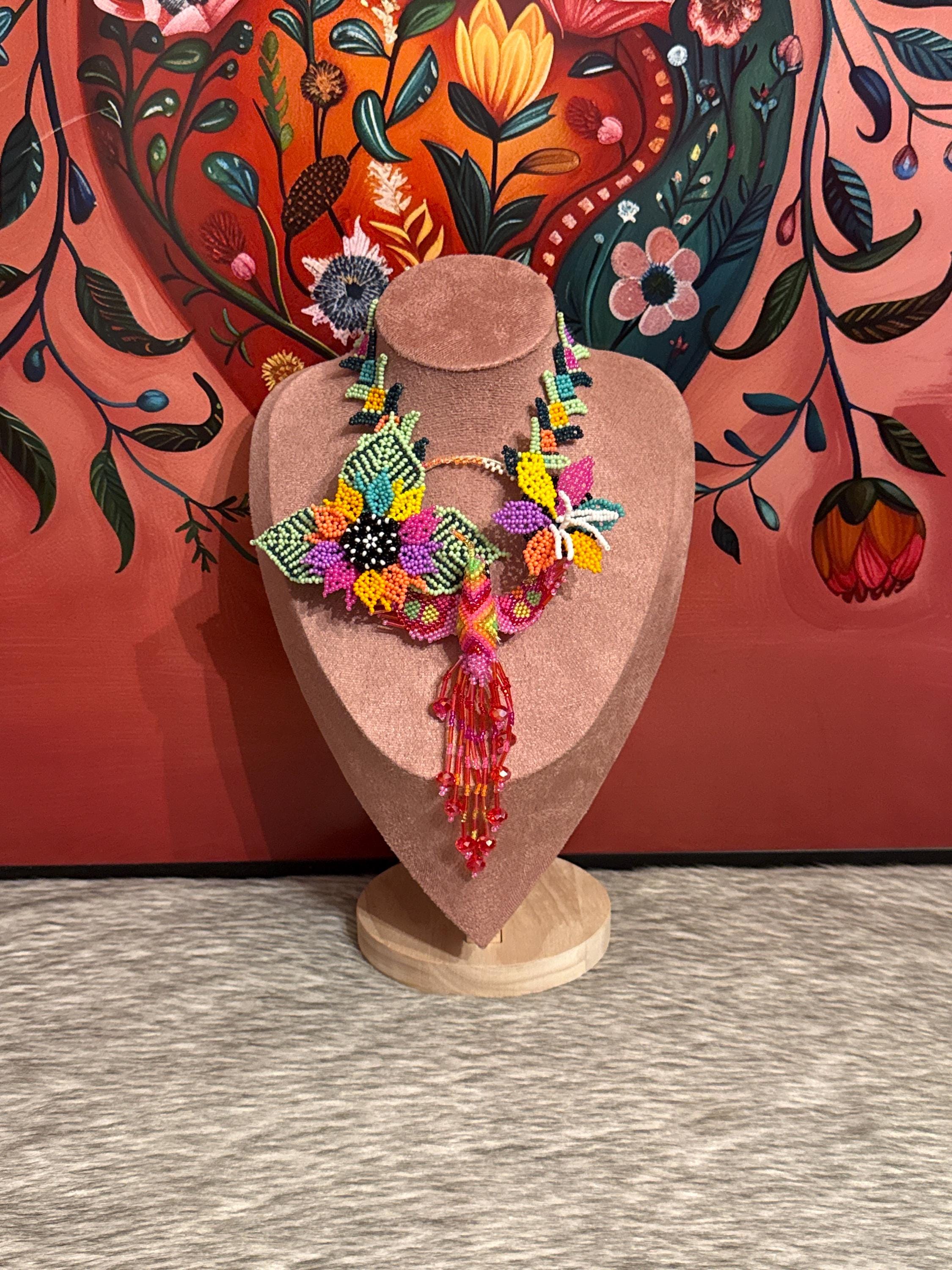 Hermoso set de collar,aretes y pulsera,inspirados en las flores y el colibri,hechos a mano por artesanos mexicanos.