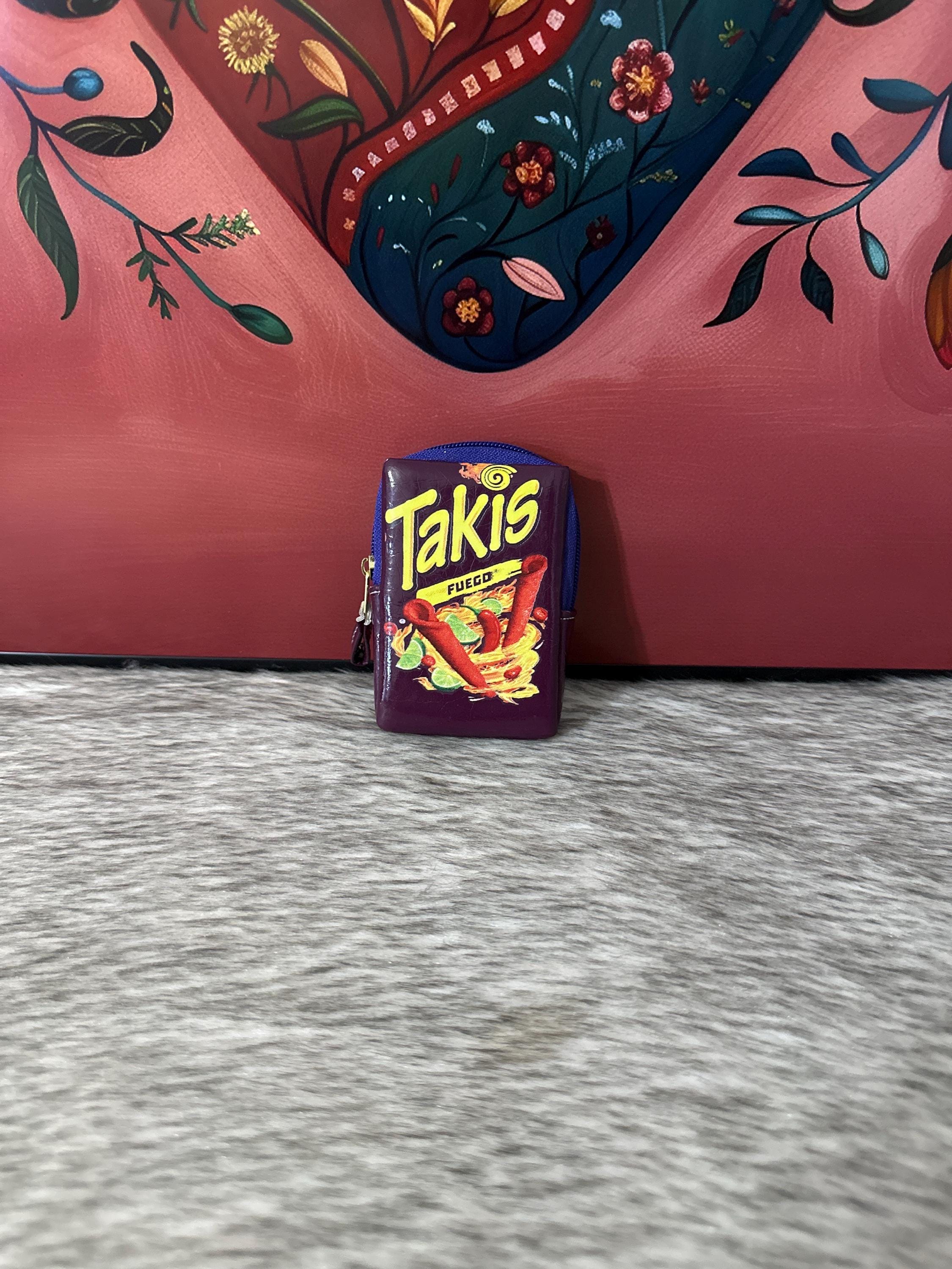 Takis coin purse, the coin purse measures approximately 4 inches long by 3 inches wide. Made in Mexico.