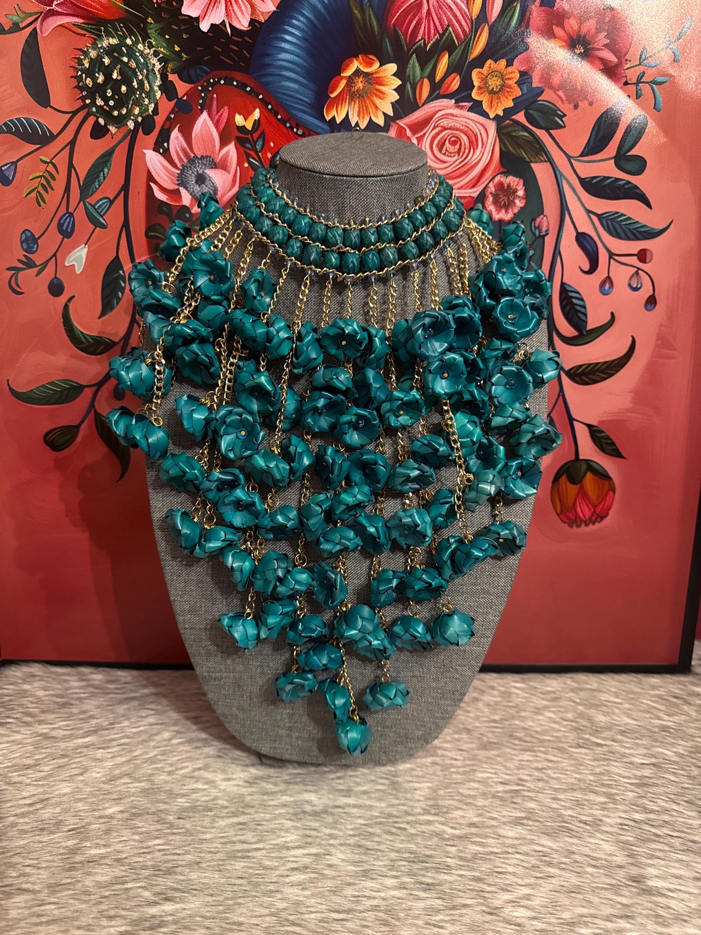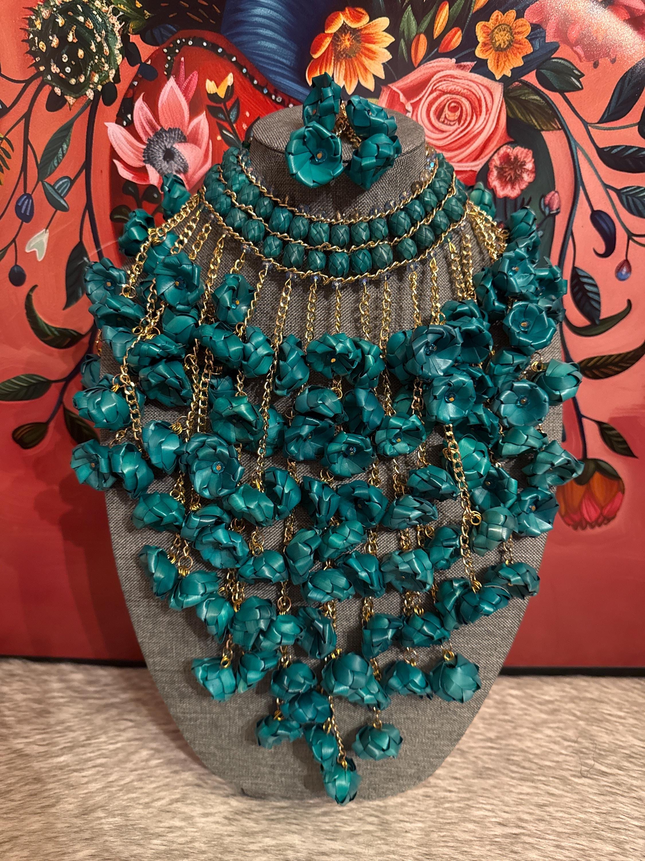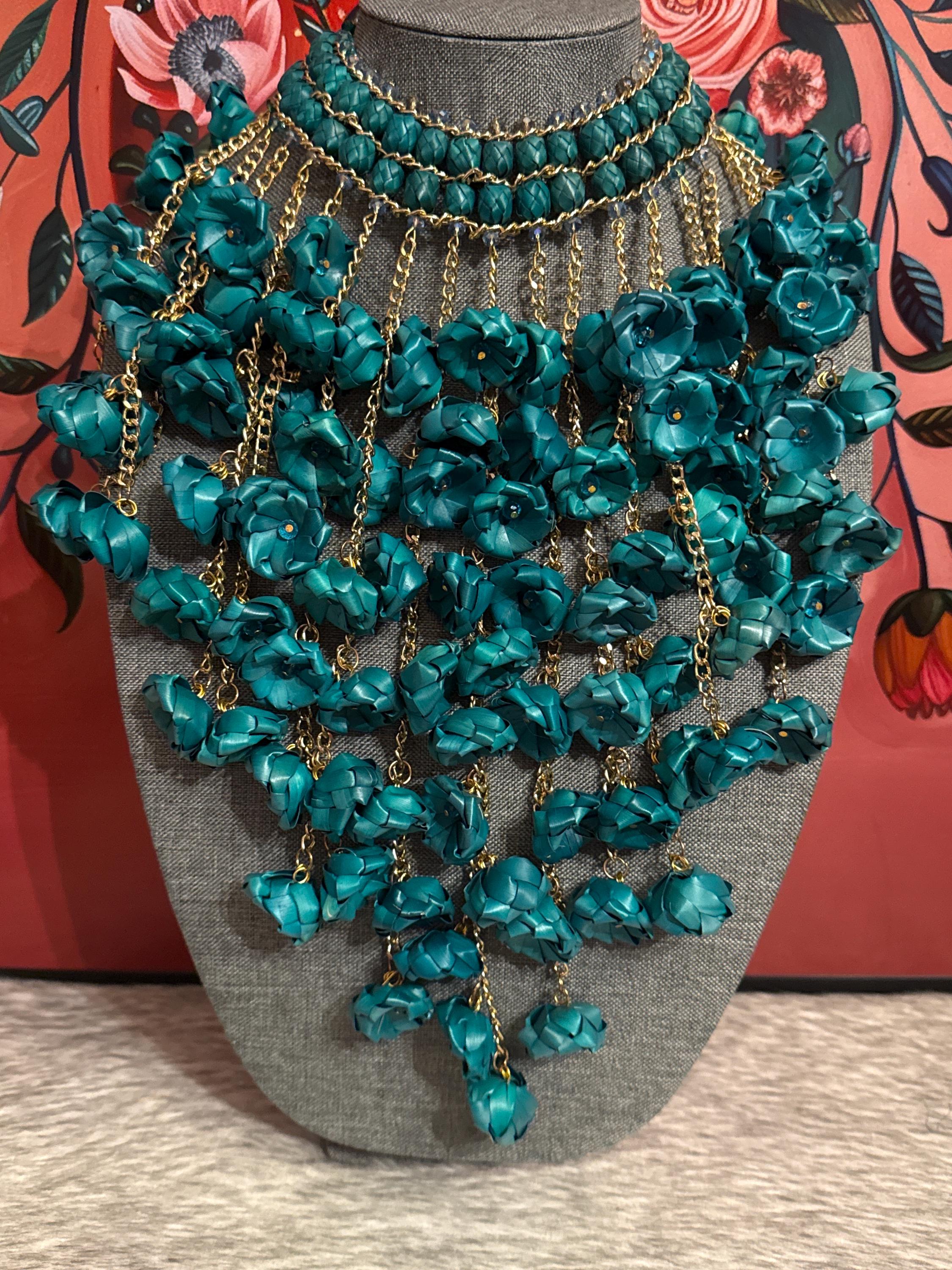 Beautiful necklaces made with palm flowers, crystals, and beads, handmade by Mexican artisans. Includes earrings.
