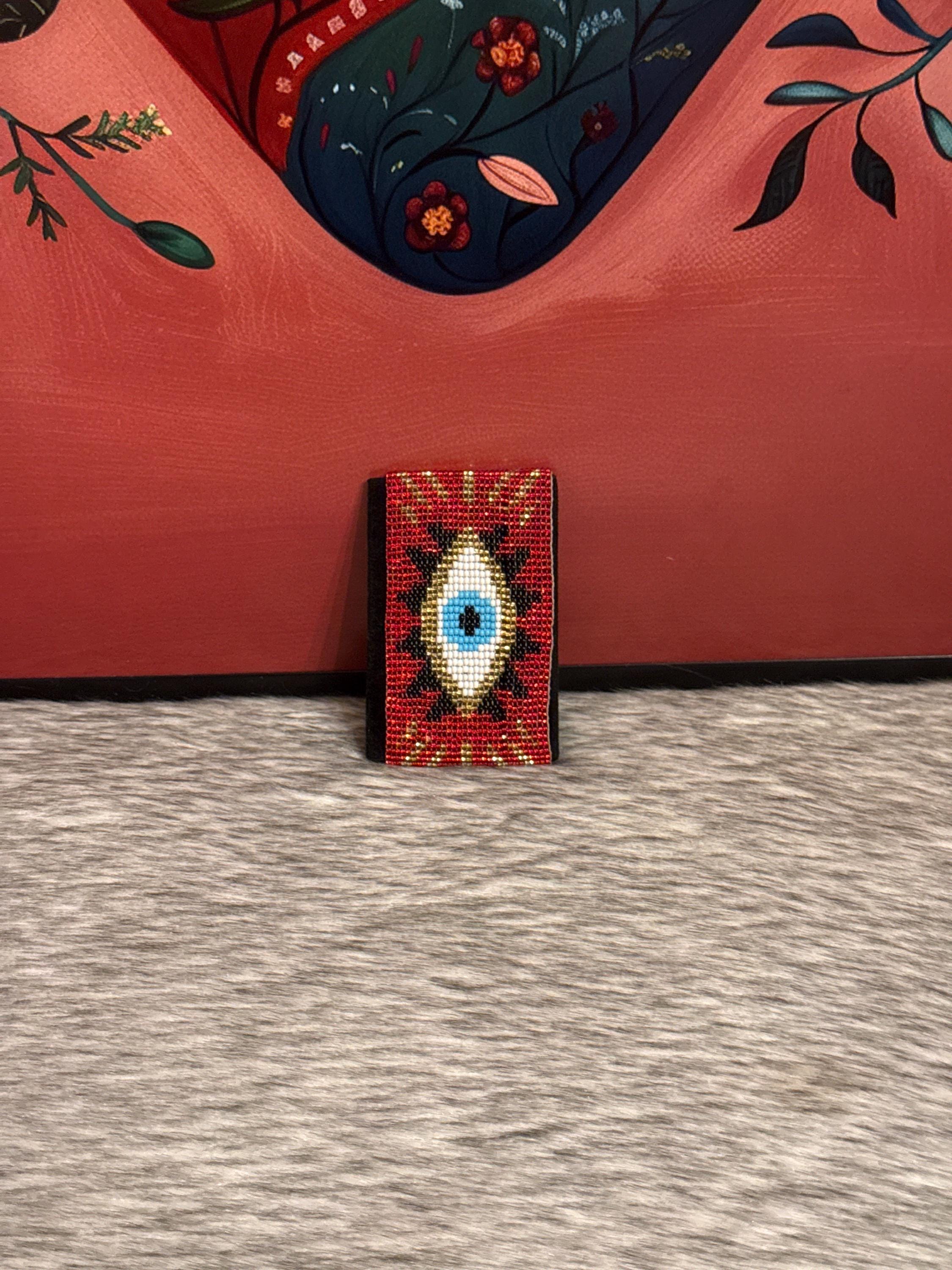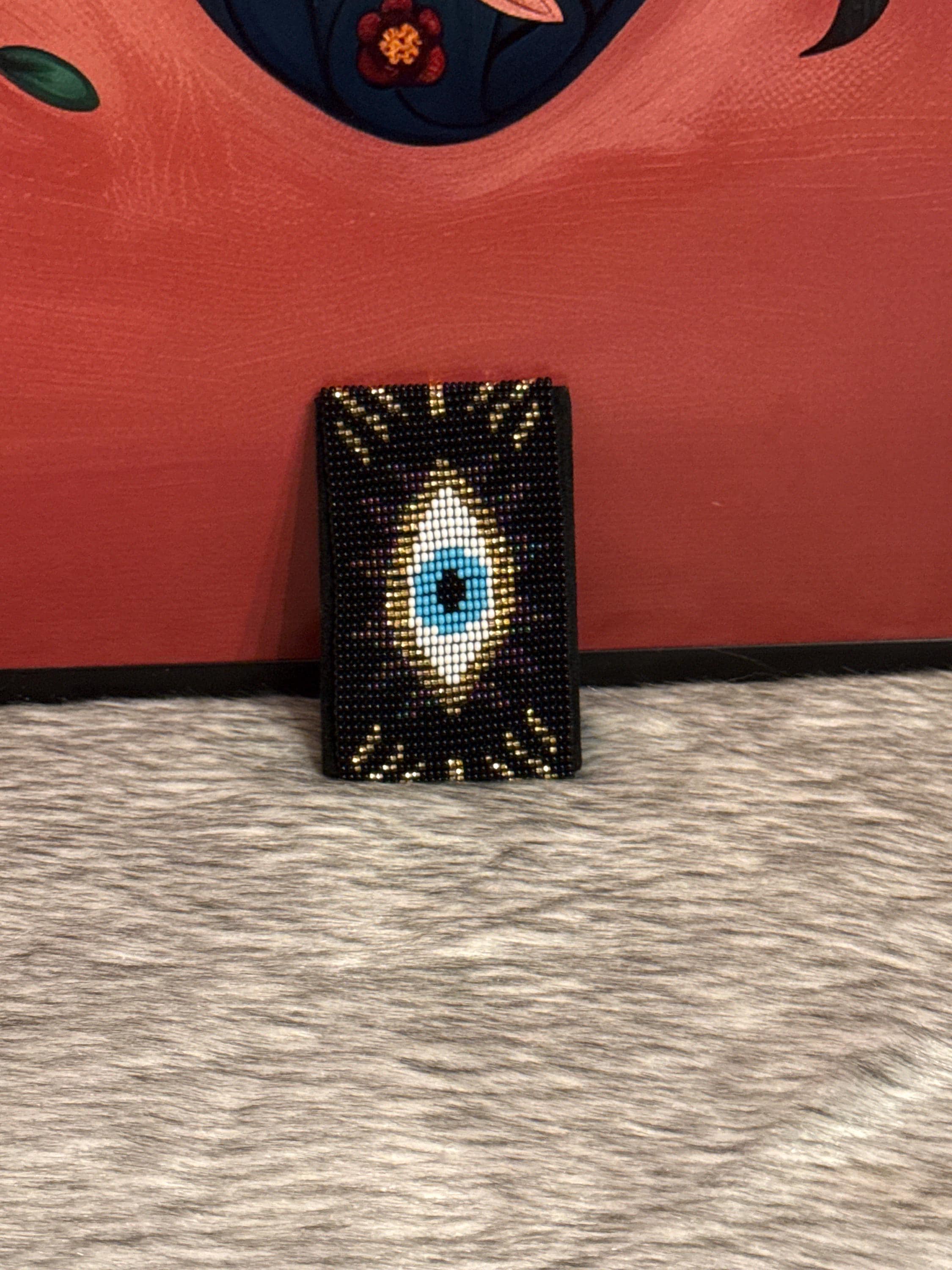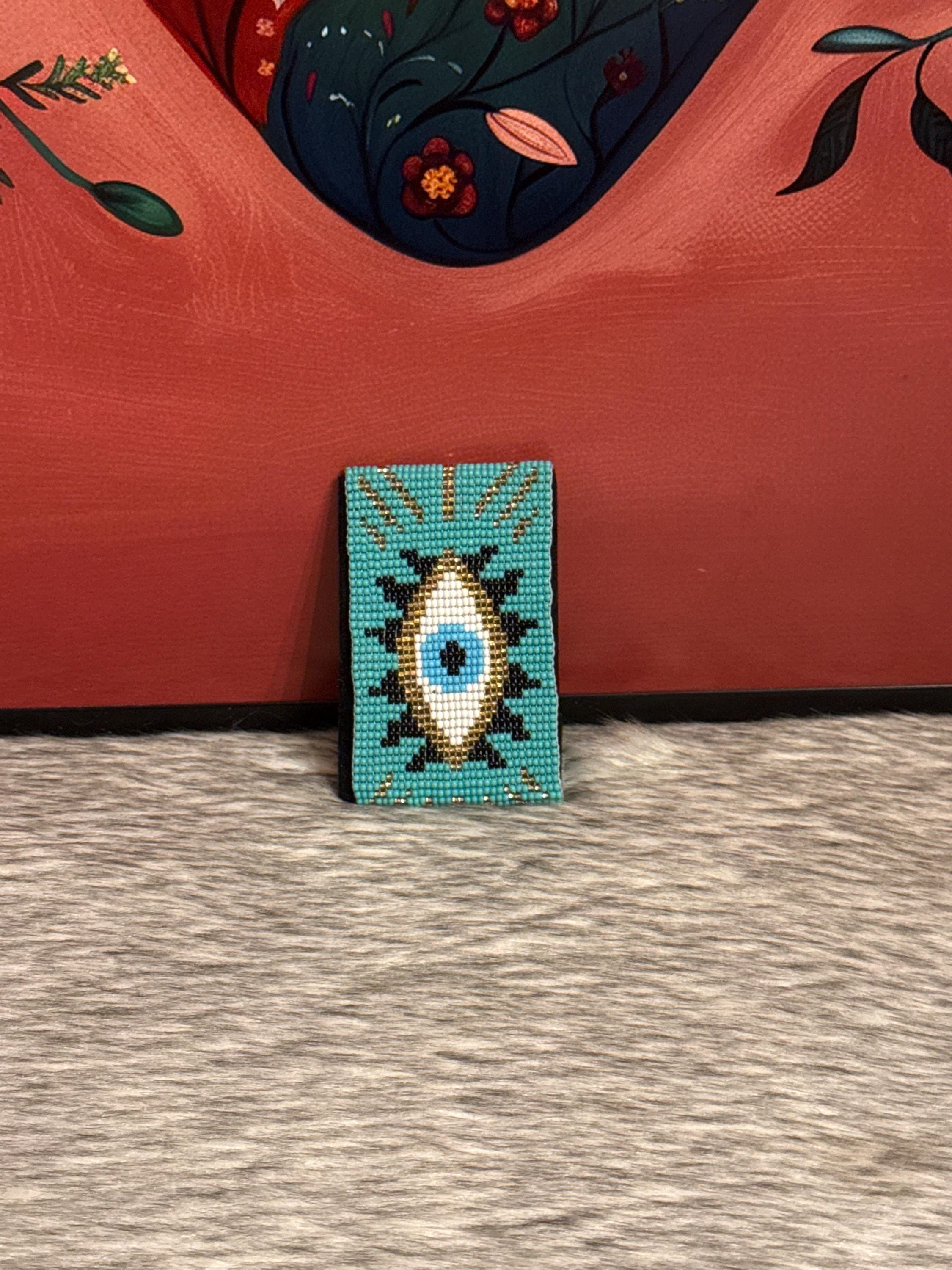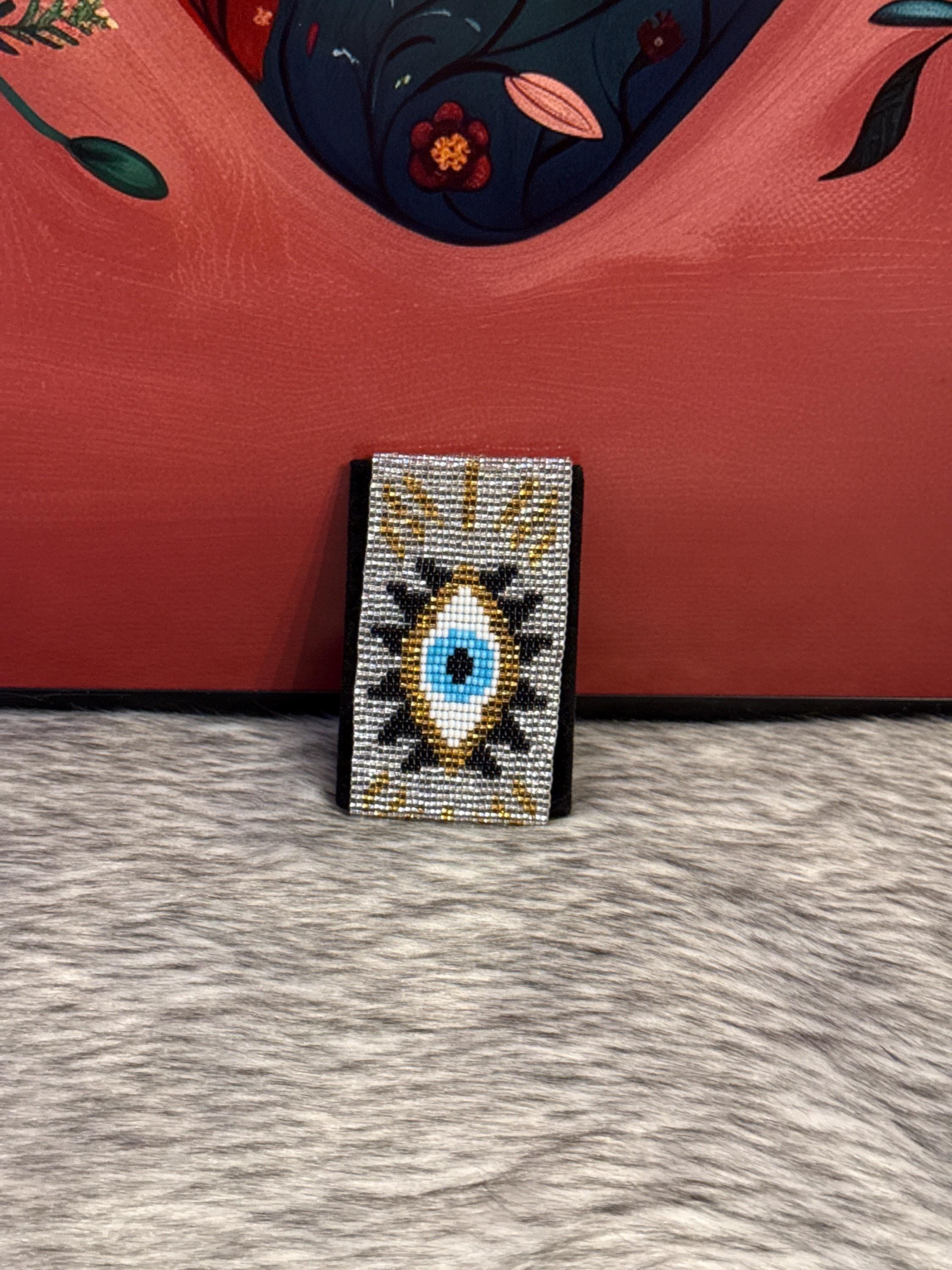 Beautiful bracelets made with a Turkish eye pattern, made with seed beads by Mexican artisans. The bracelets measure approximately 7 inches long by 2 inches wide.