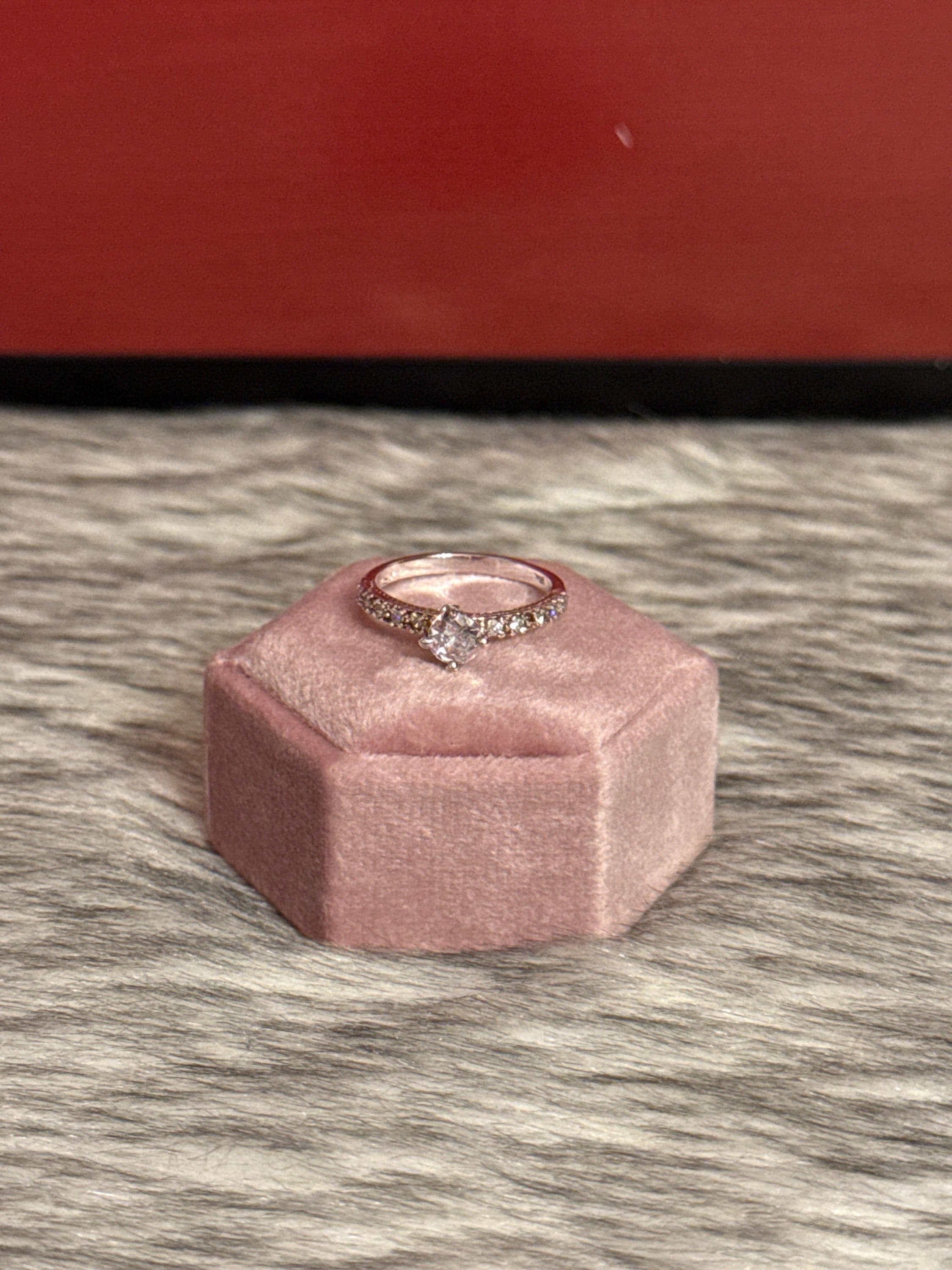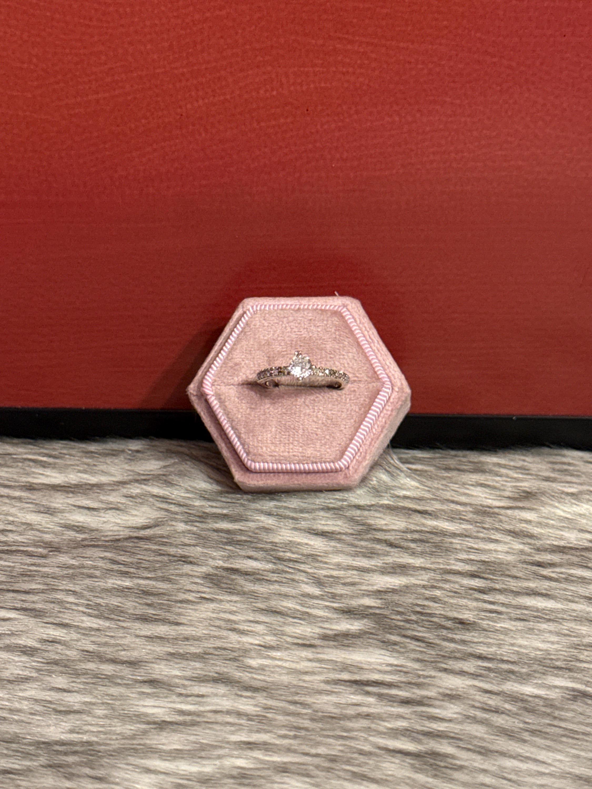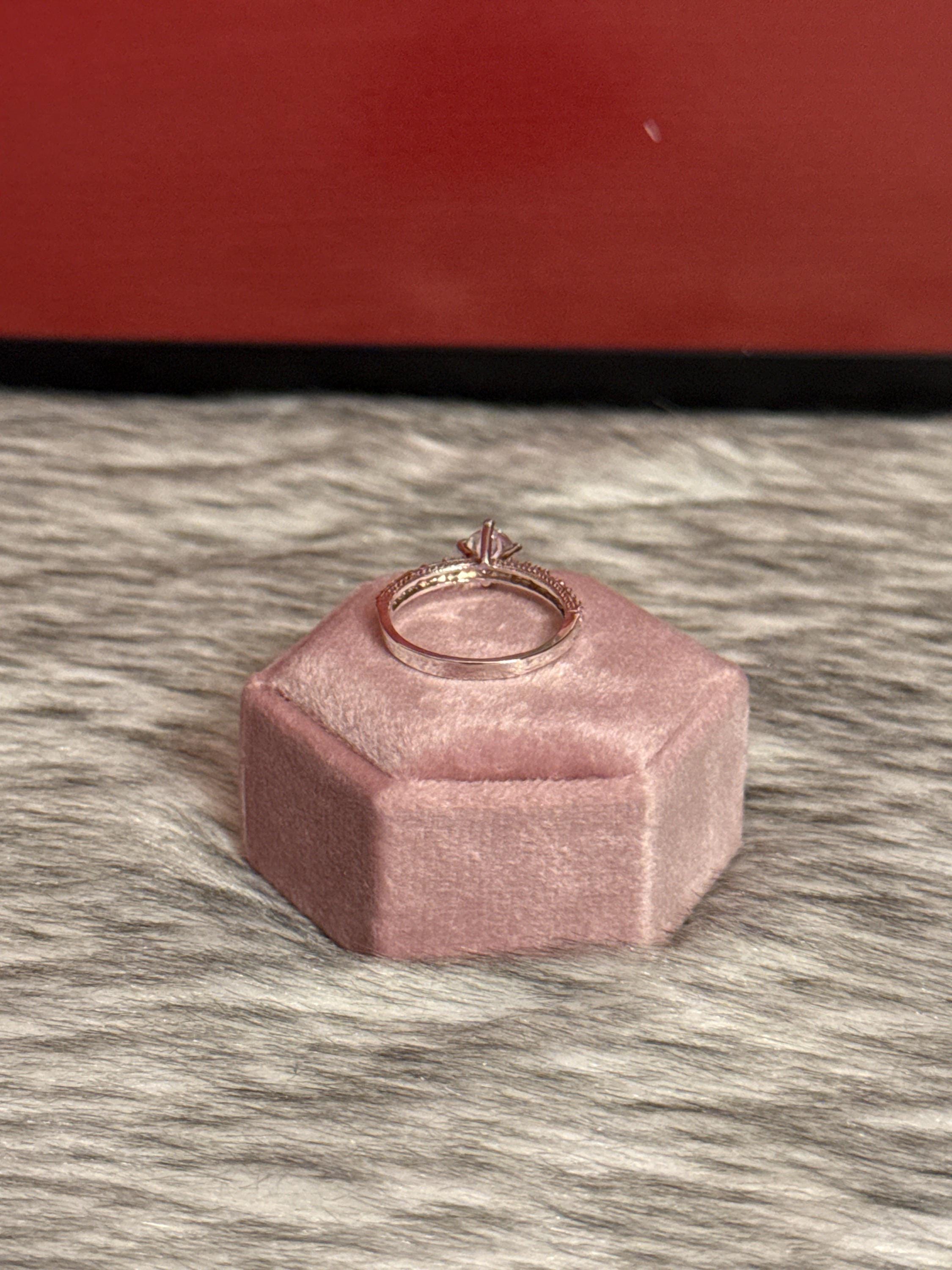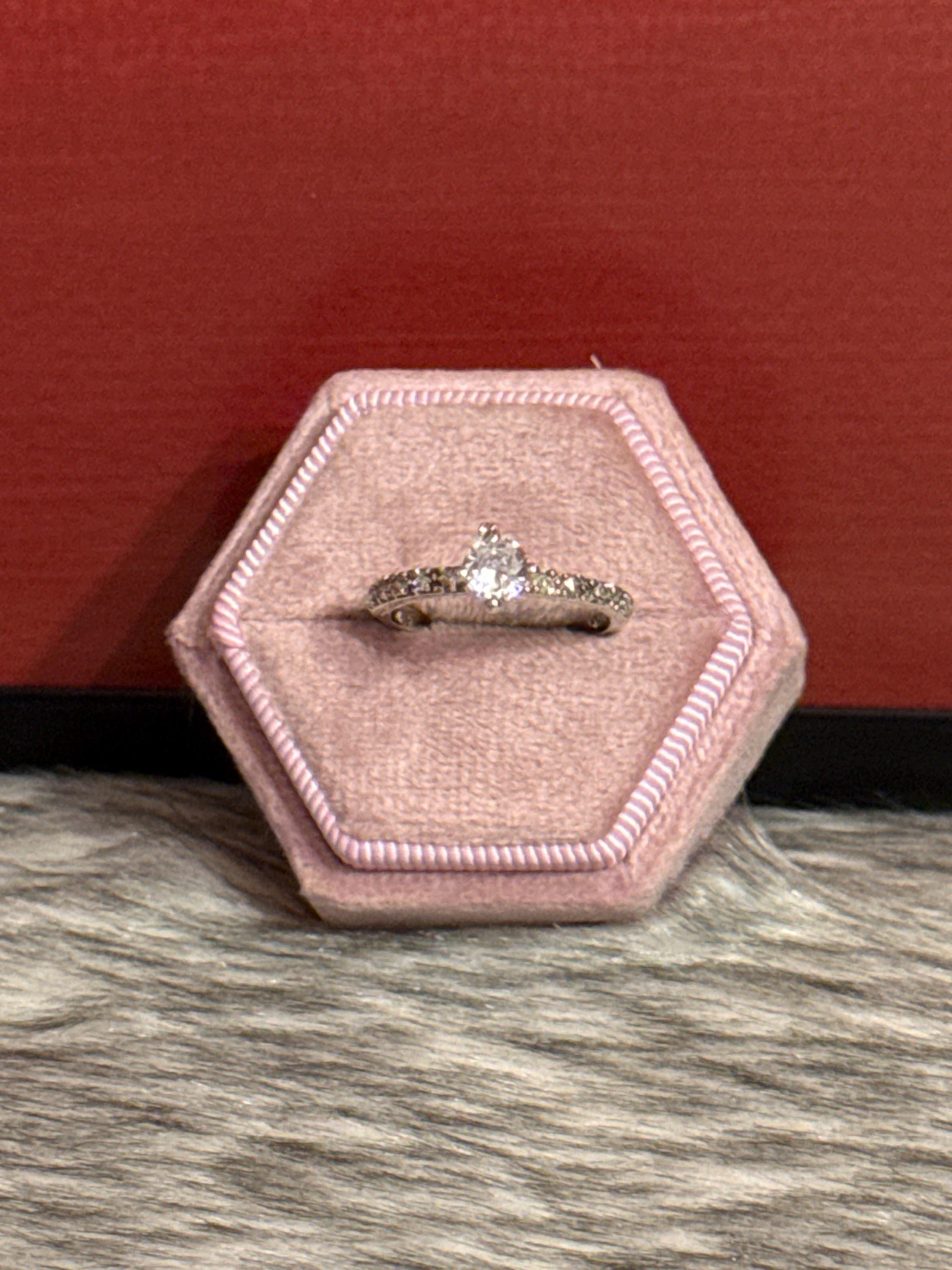 Beautiful solitaire promise or engagement ring with a cubic zirconia stone. The ring is made of 925 sterling silver in size 6.5.