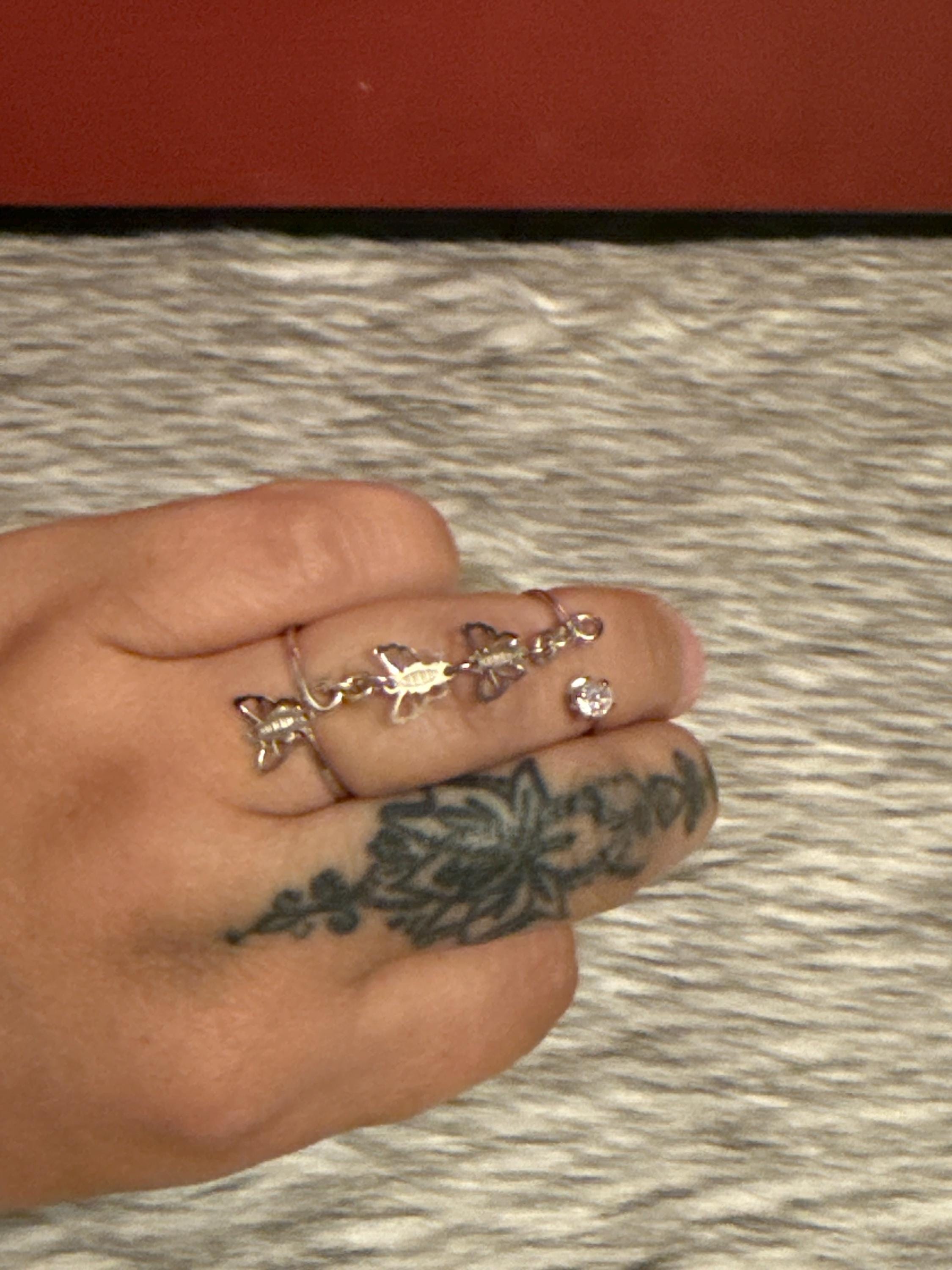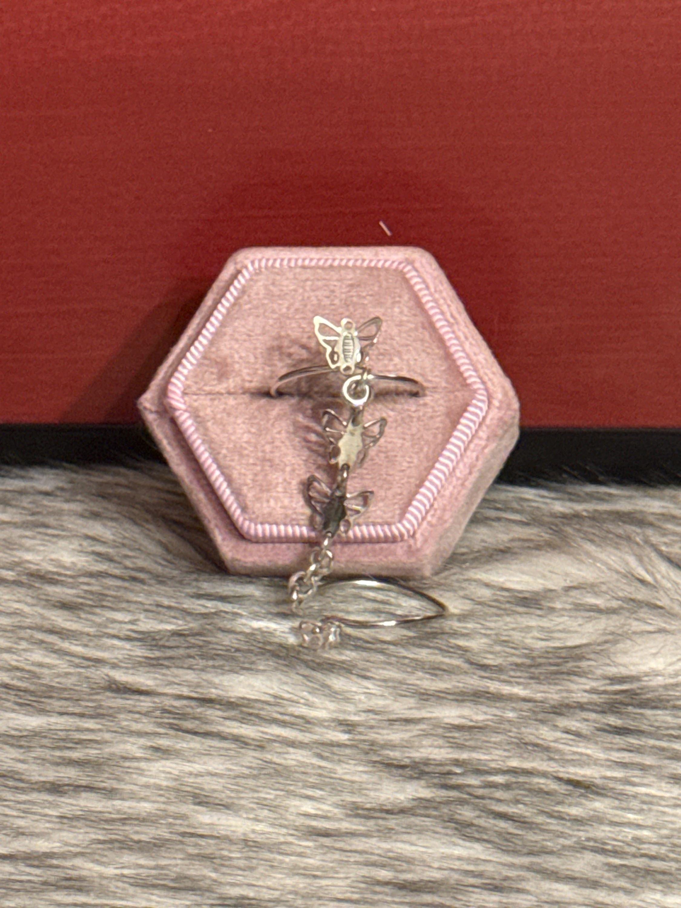 Beautiful Gypsy Butterfly Ring, double ring made of 925 sterling silver and zirconia, size 7 adjustable