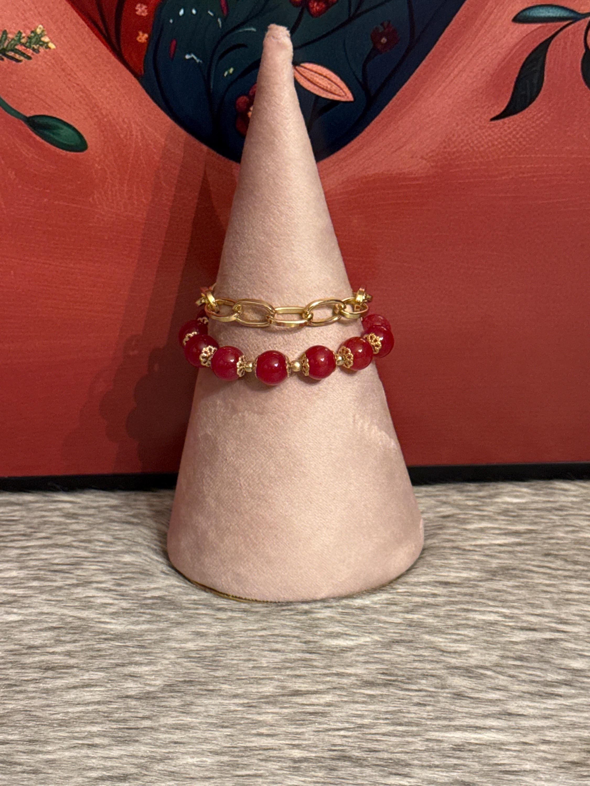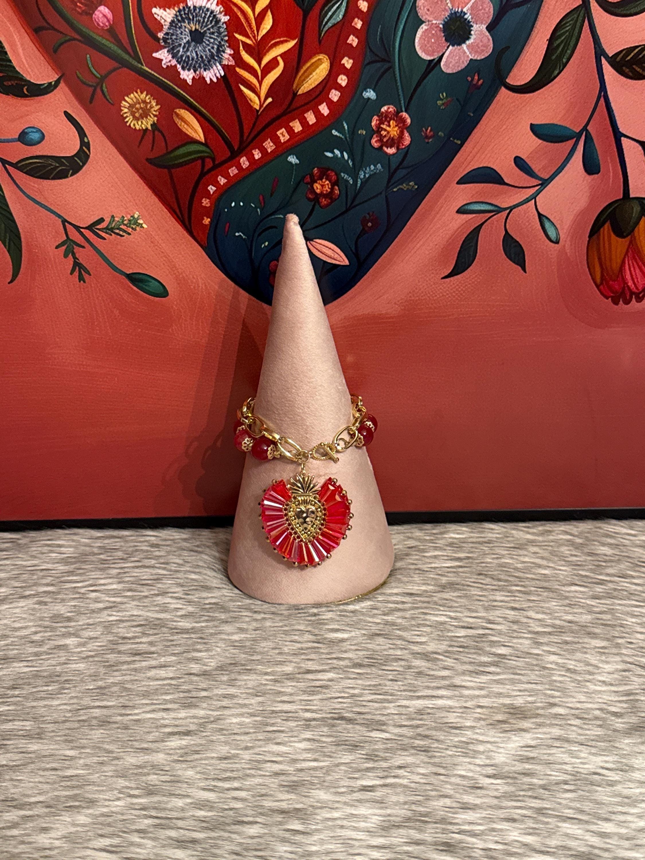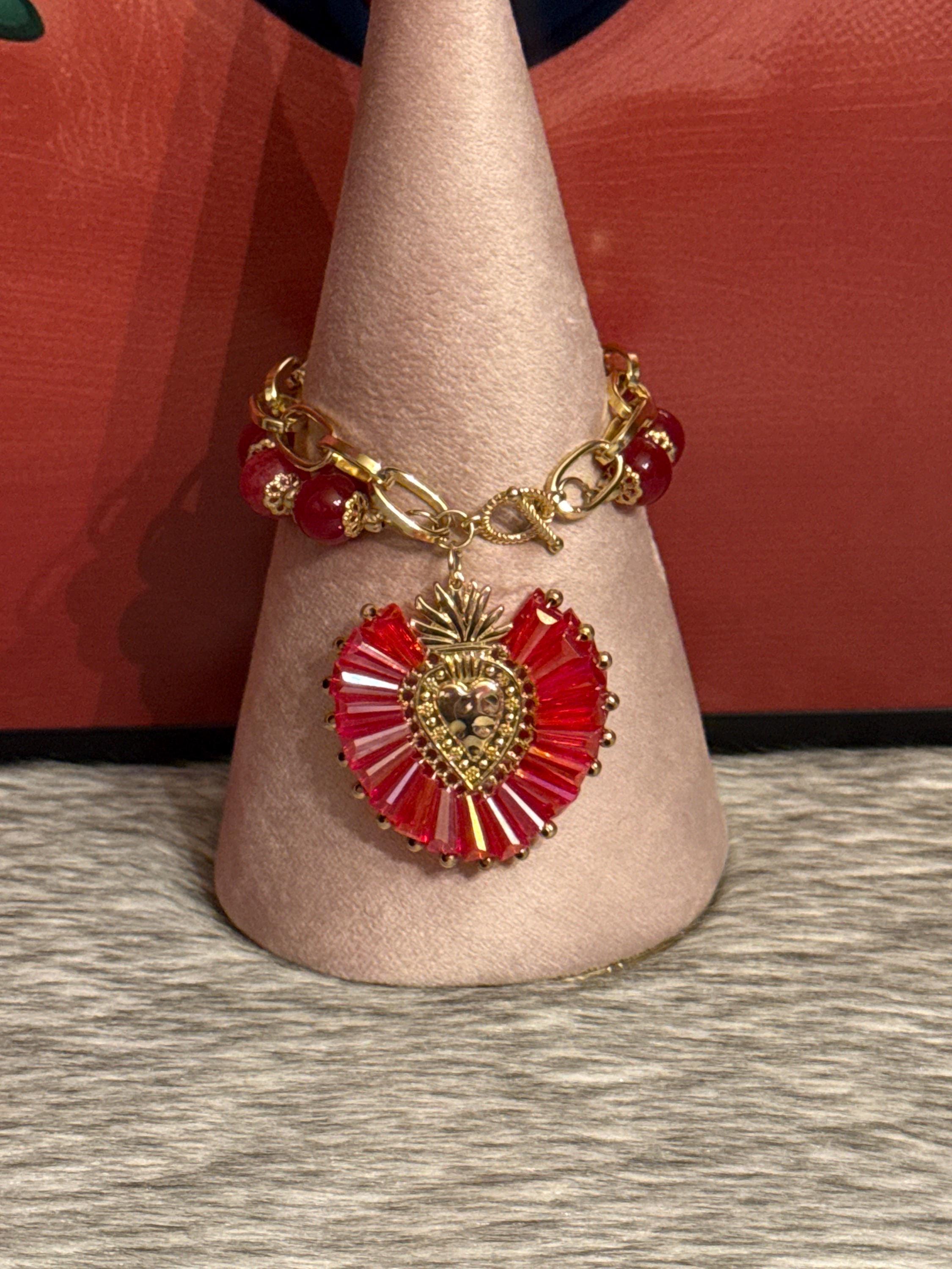 Beautiful bracelet made of natural agates and a pendant of the Sacred Heart of Jesus embroidered with crystals.