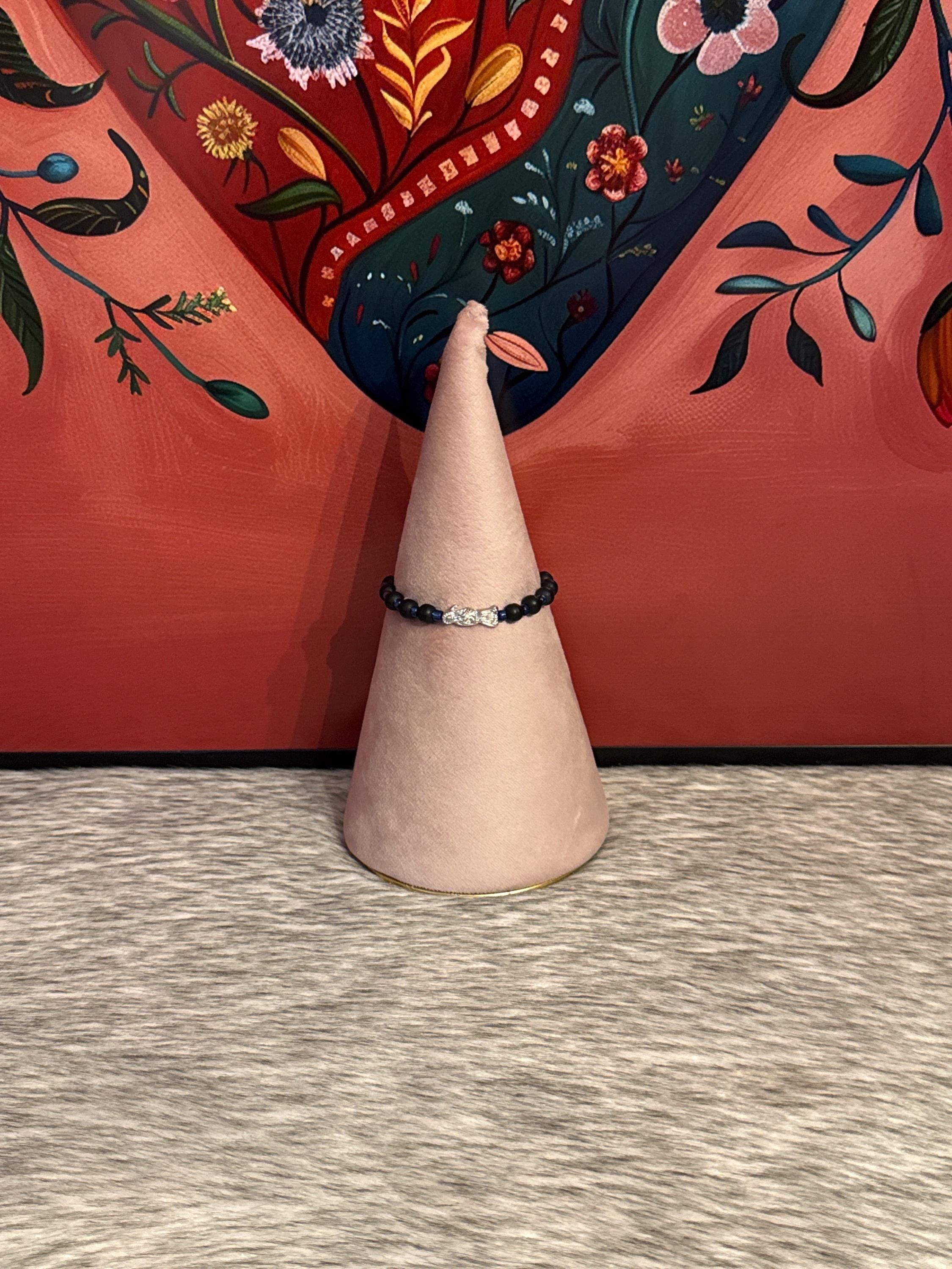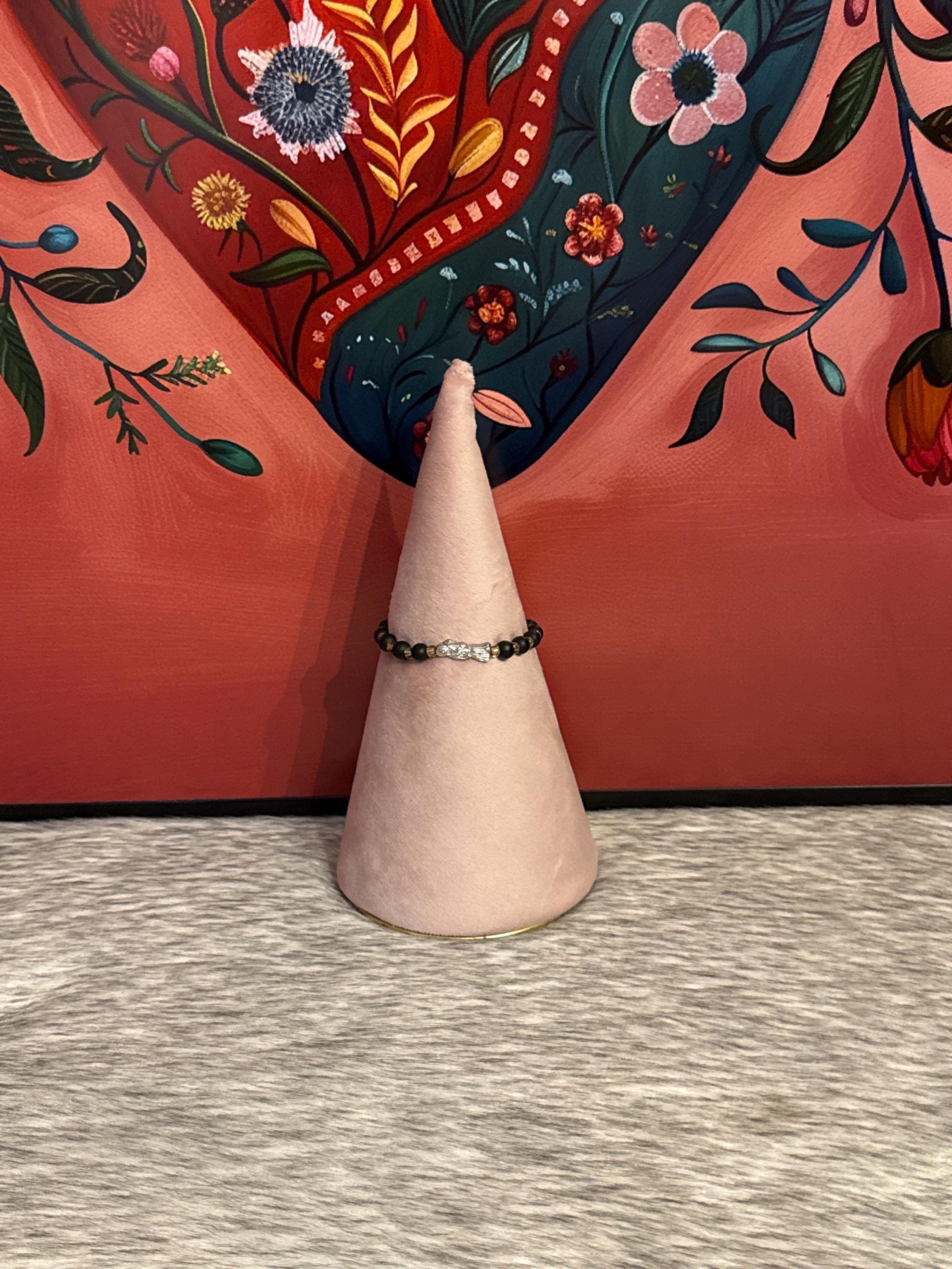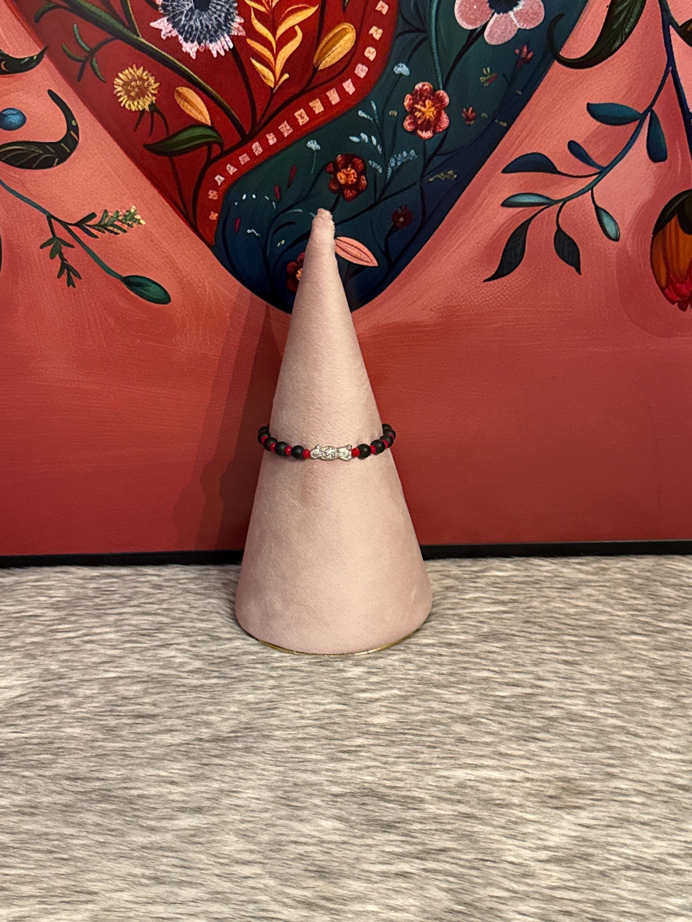 Adjustable Santa Muerte thread bracelet made with agate stones.