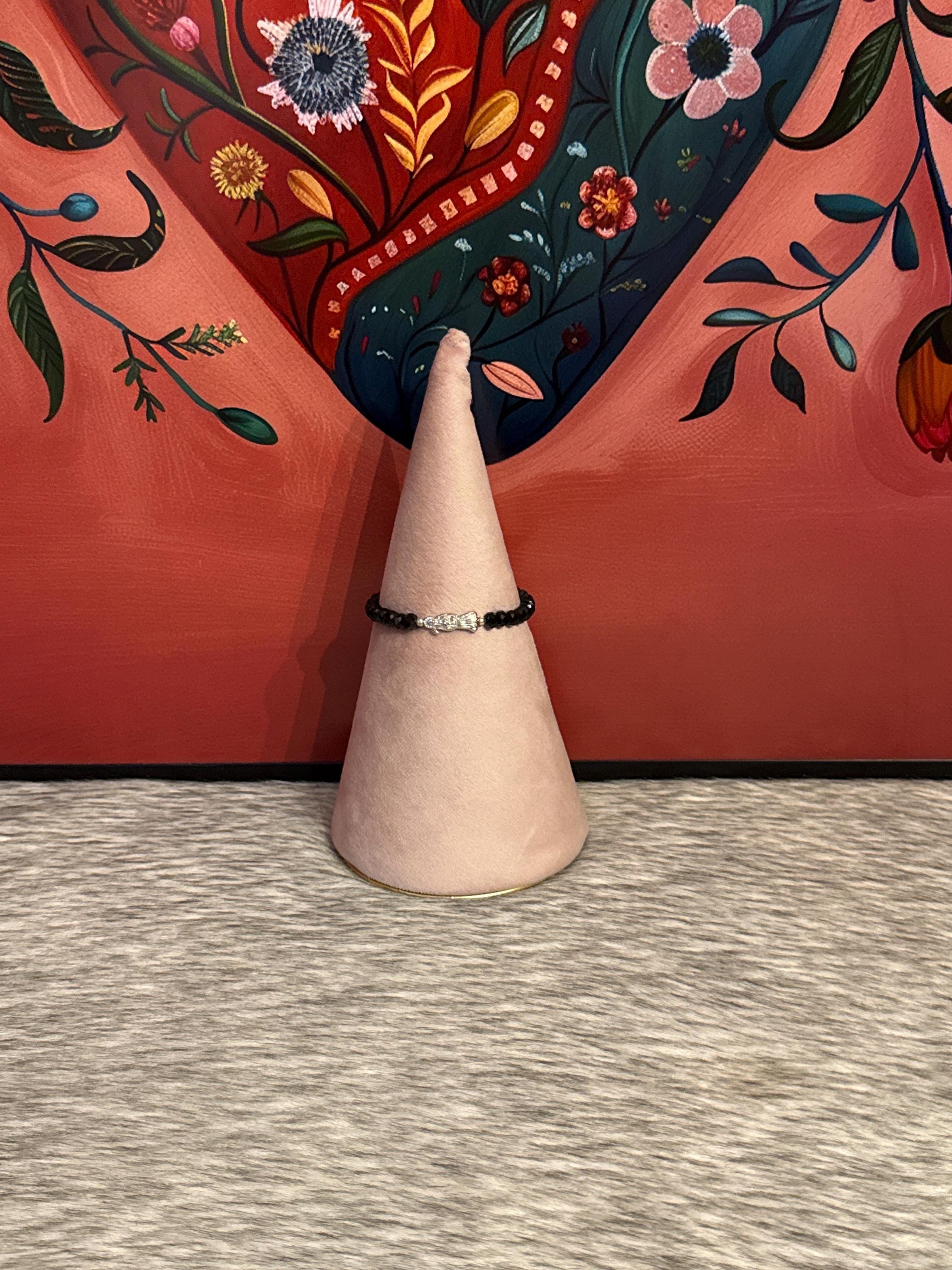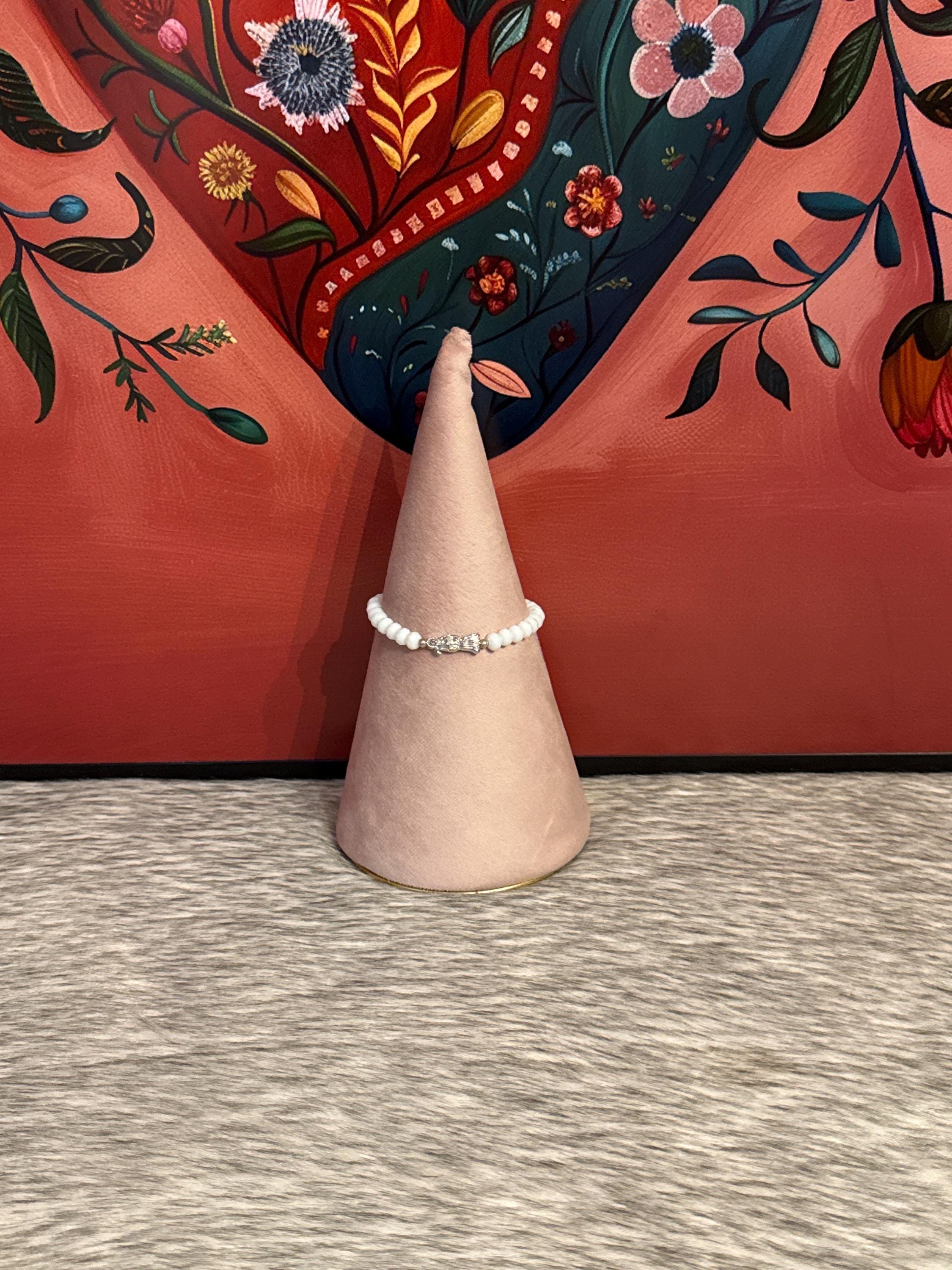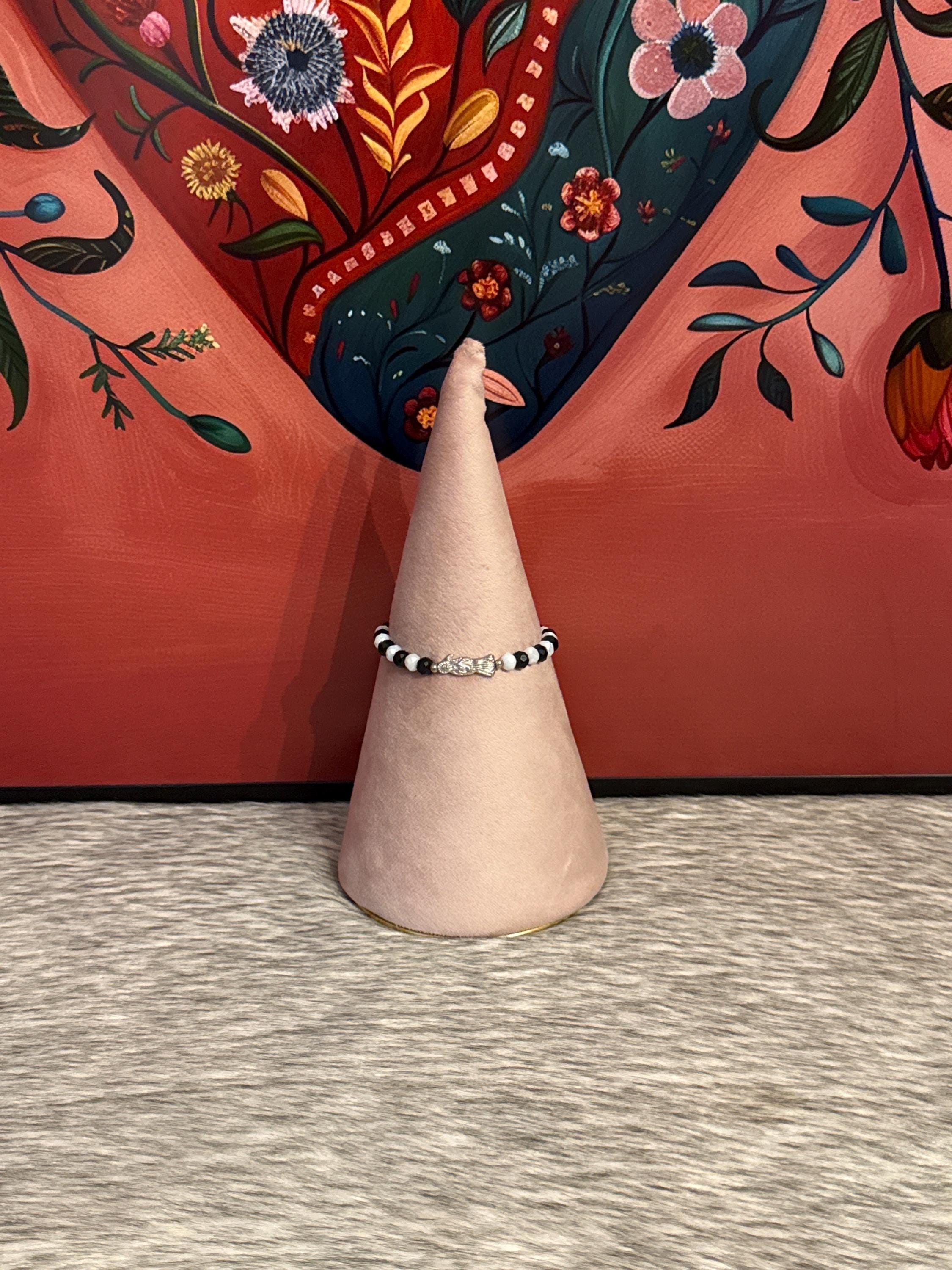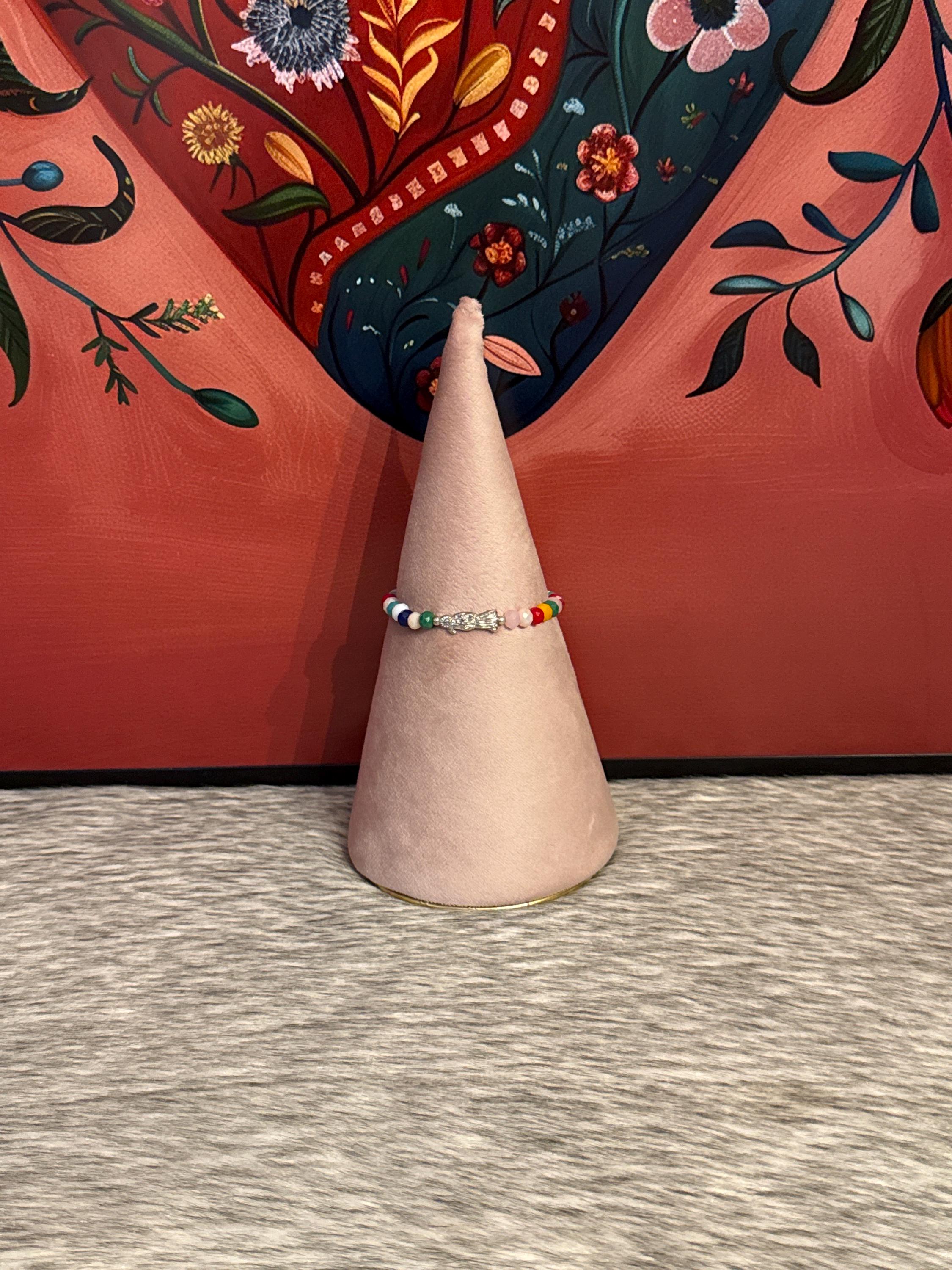 Adjustable Santa Muerte thread bracelet made with Czech crystals.