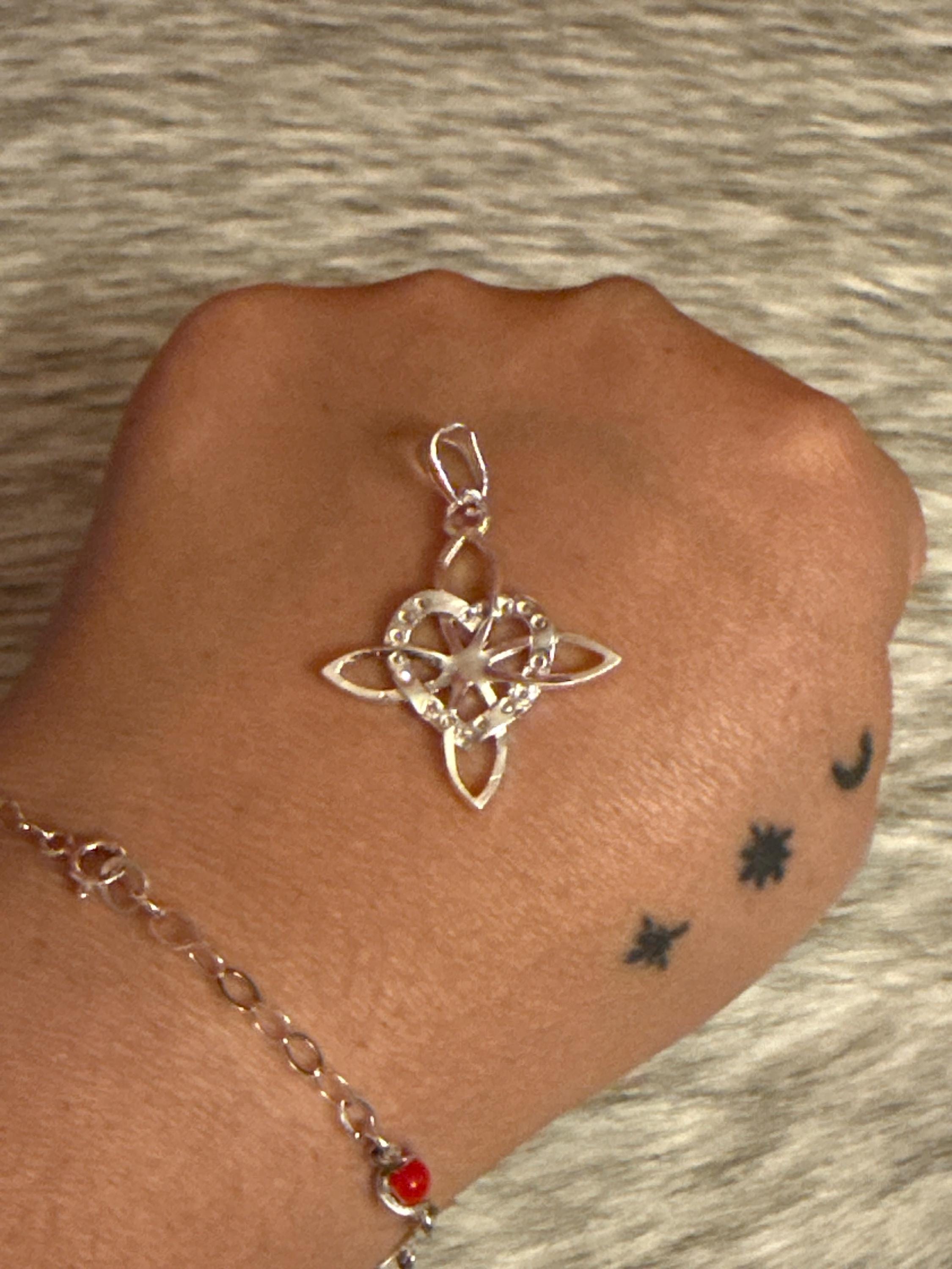 Beautiful Celtic witch knot pendant, made of 925 sterling silver, measures approximately 1.50 inches long.