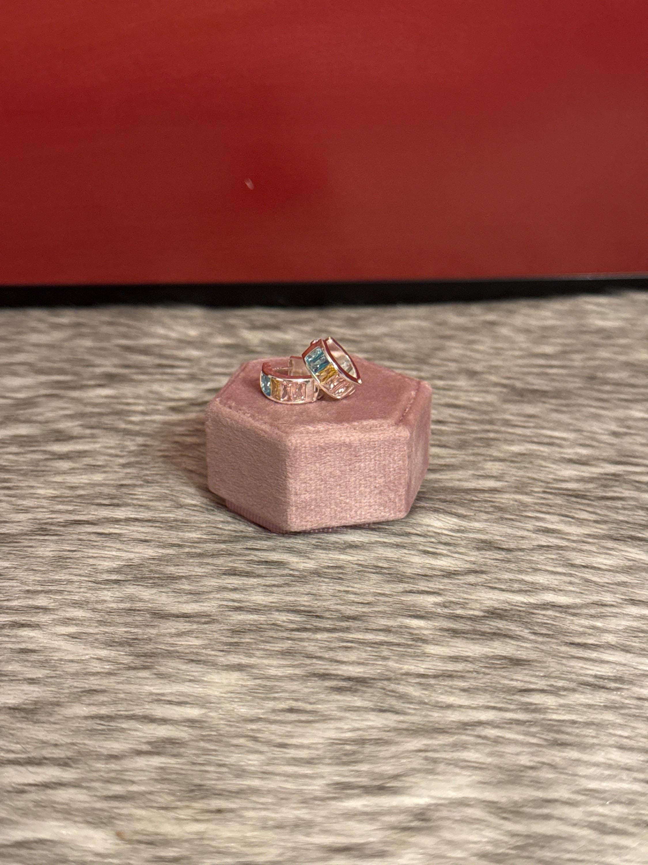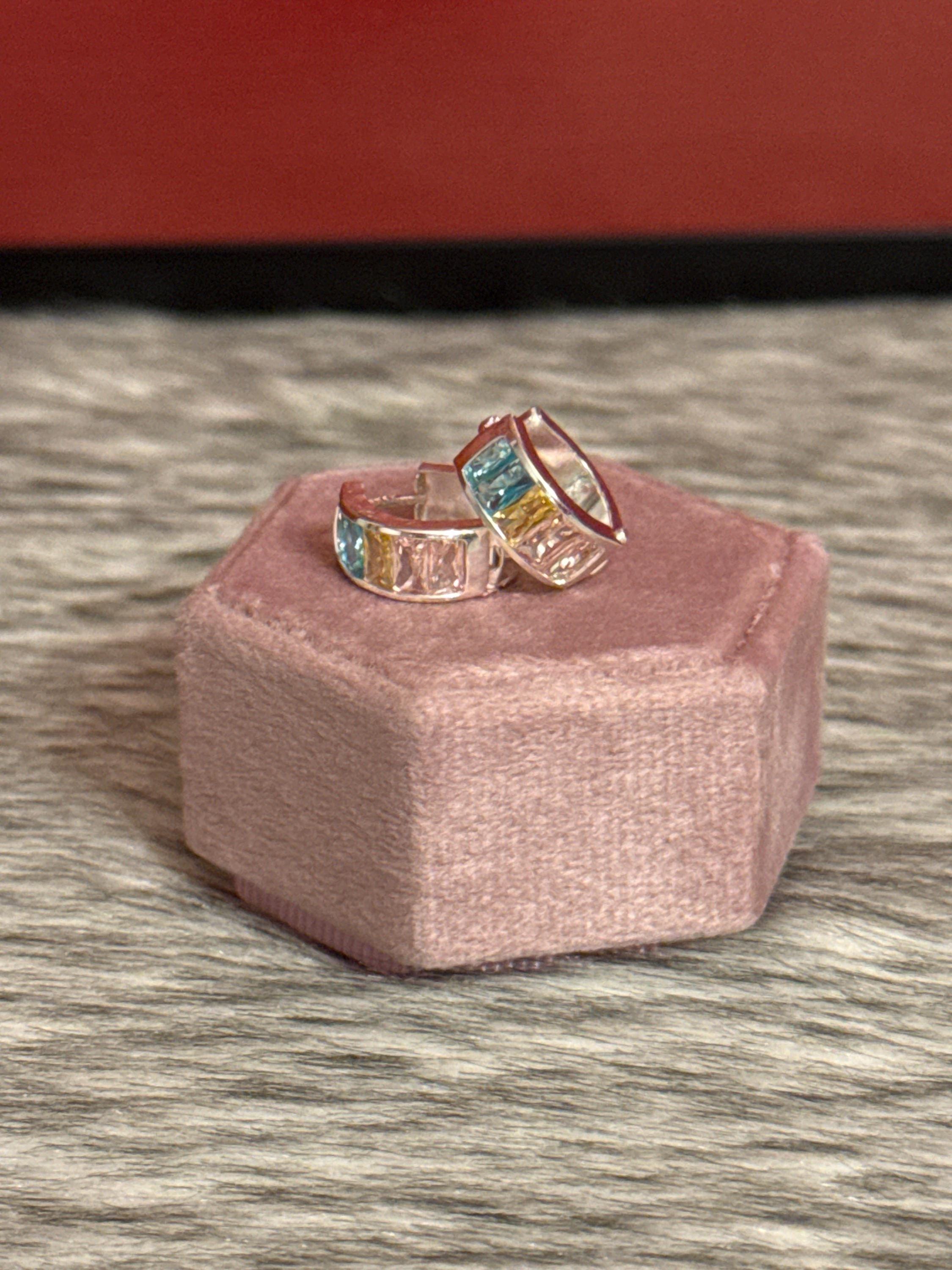 Beautiful hoop earrings made of 925 sterling silver and cubic zirconia in various colors.