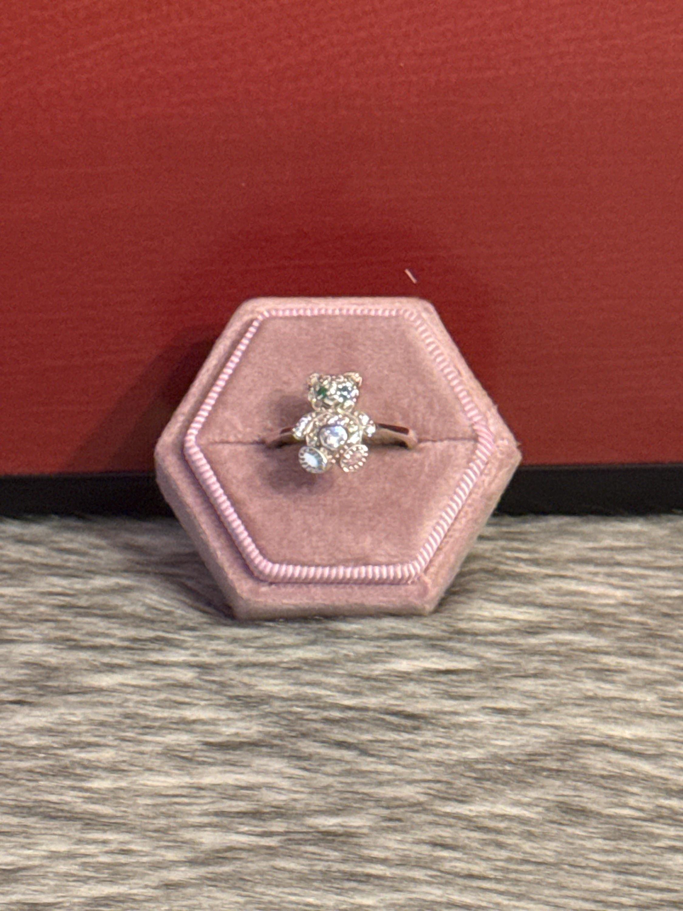 Beautiful Teddy Bear Ring, made of 925 sterling silver and cubic zirconia, size 7.5