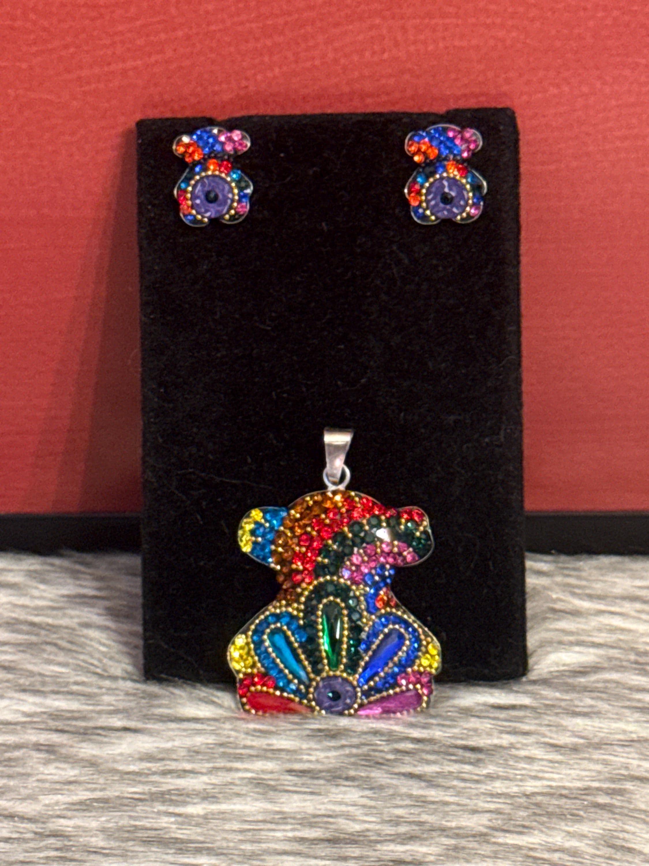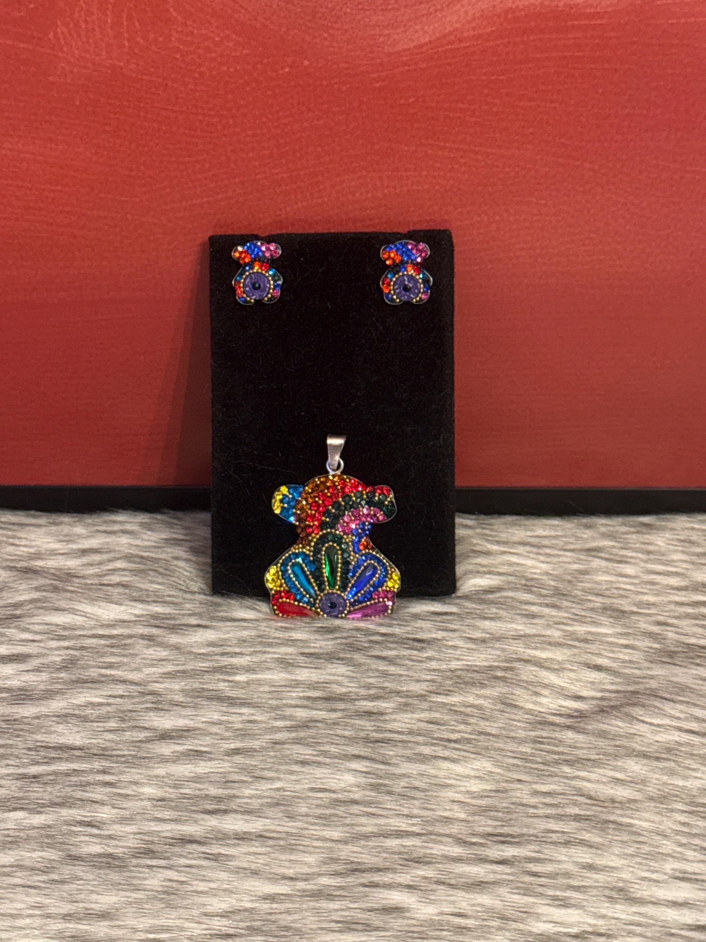 Beautiful set of handcrafted 925 sterling silver jewelry, made and decorated by Mexican artisans. The size and color of the stones may vary as it is a handmade piece, not machine-made. Chain not included.
