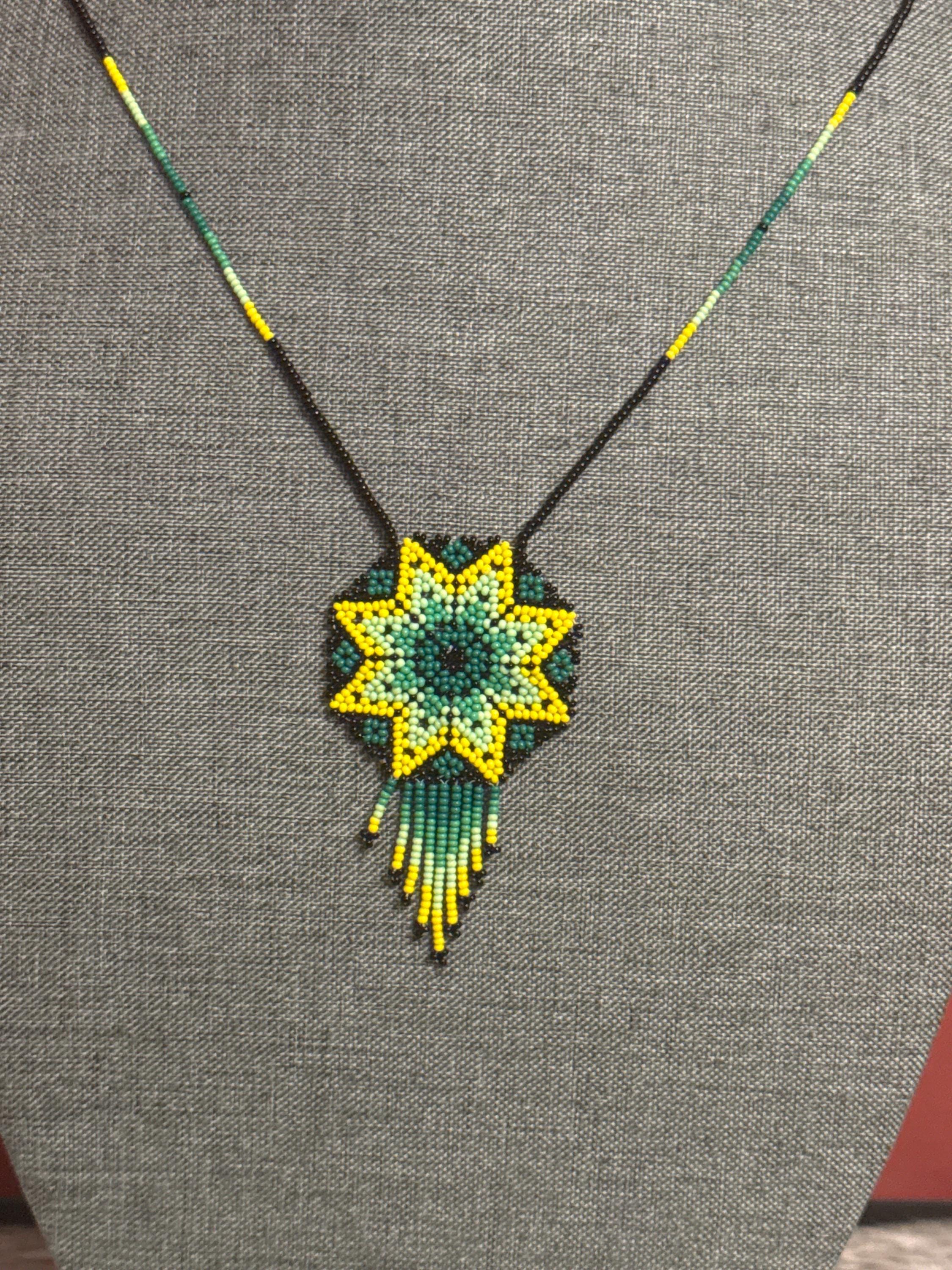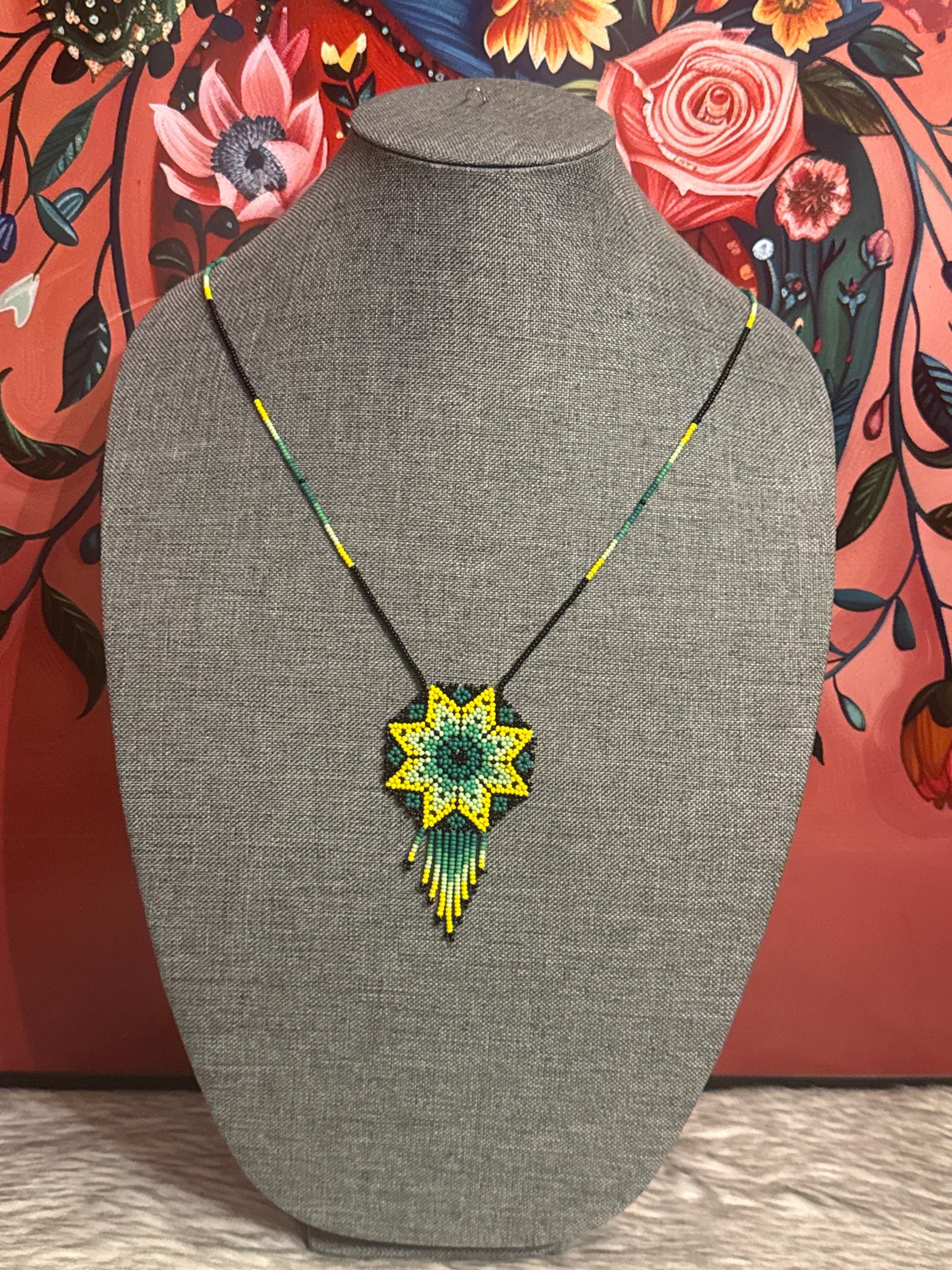 Beautiful dreamcatcher necklace, made with beads, handmade by Mexican artisans.