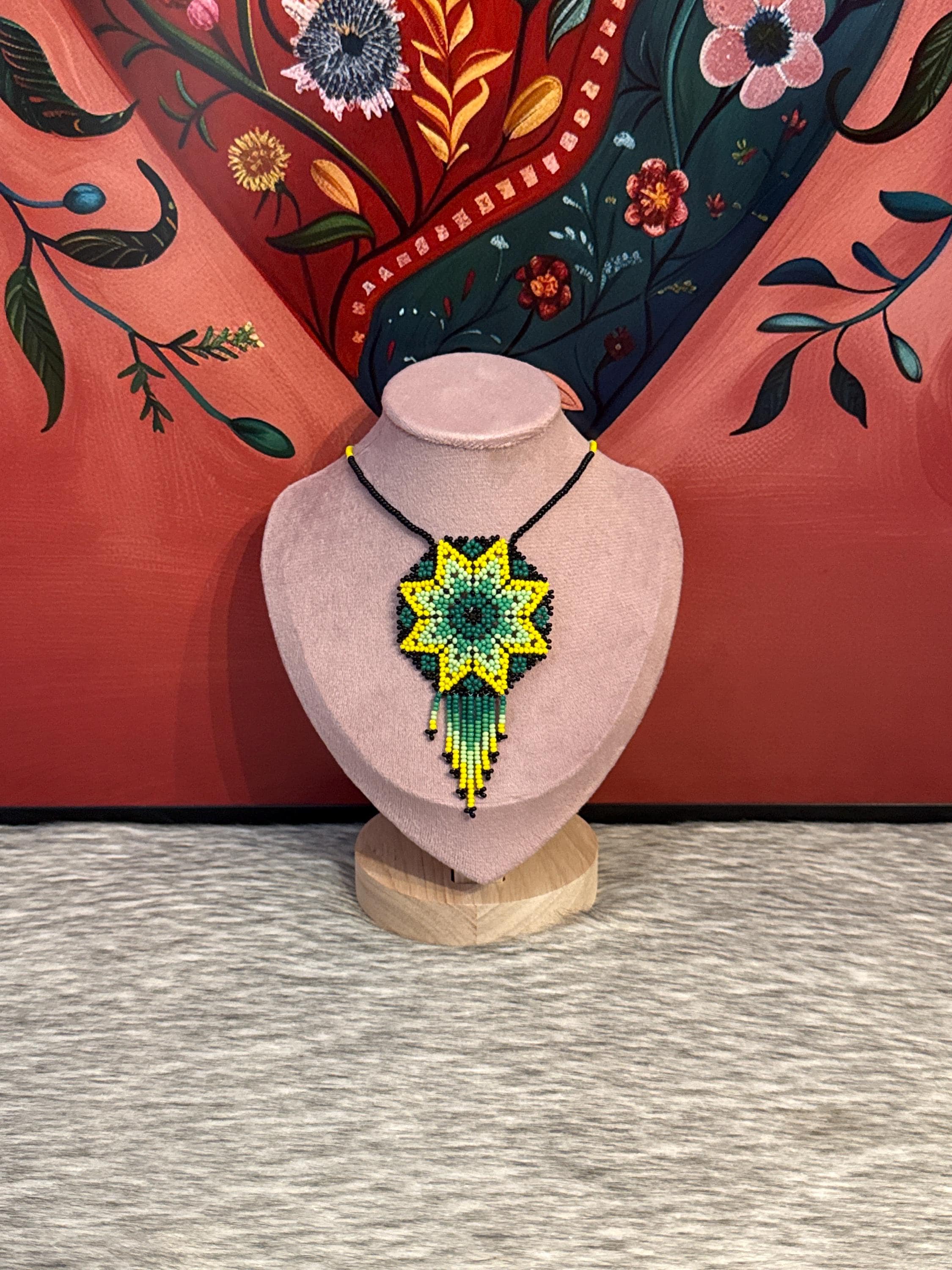Beautiful dreamcatcher necklace, made with beads, handmade by Mexican artisans.
