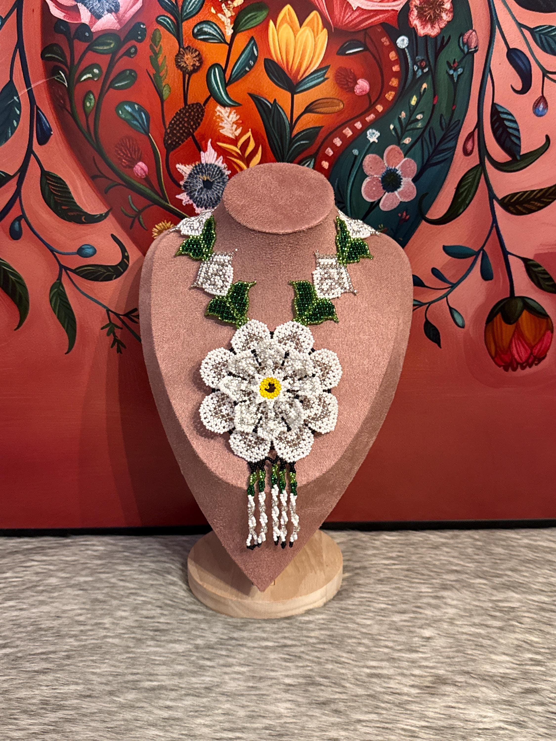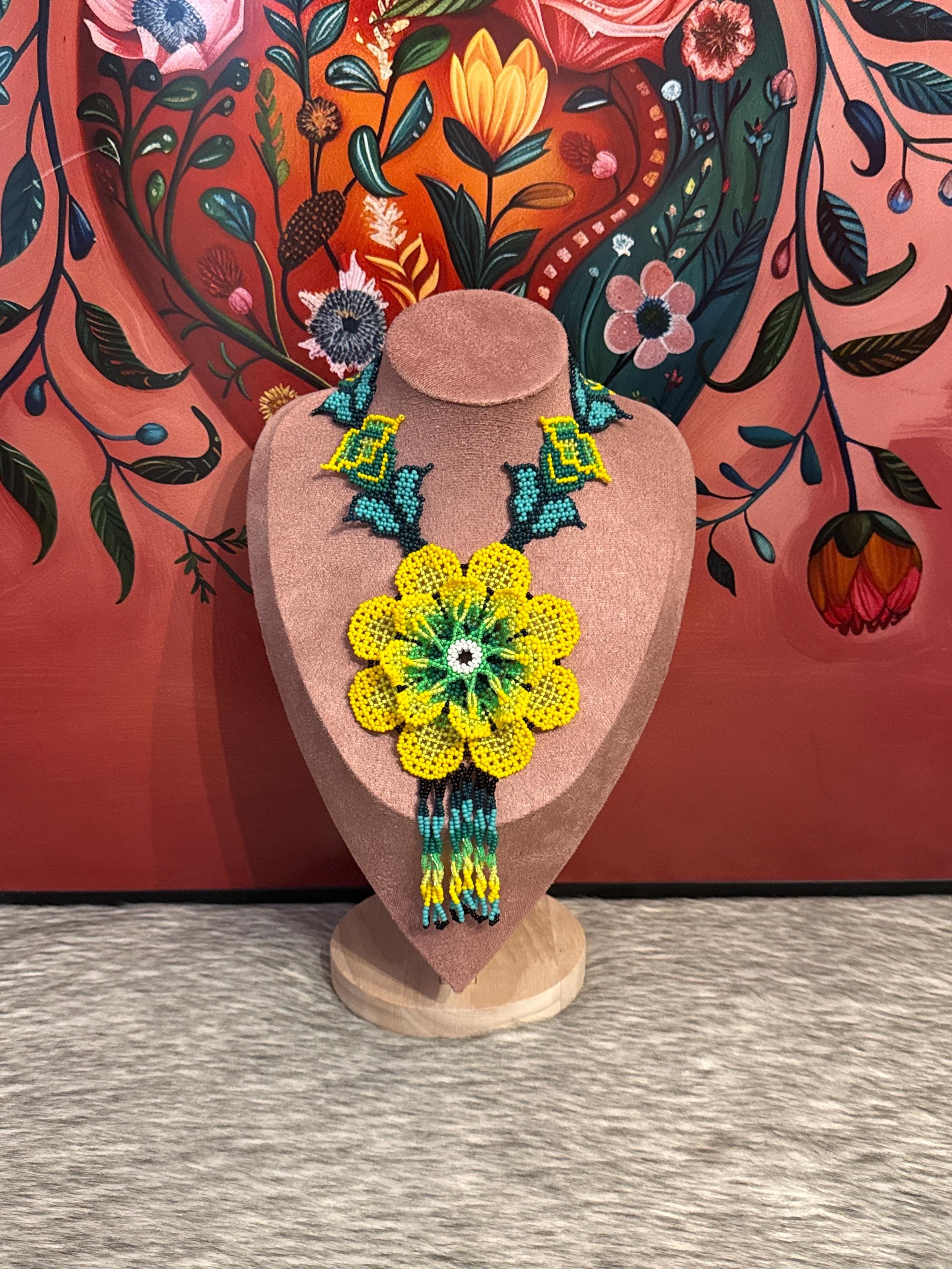 Beautiful flower necklace with bracelet and earrings, handmade with beads by Mexican artisans
