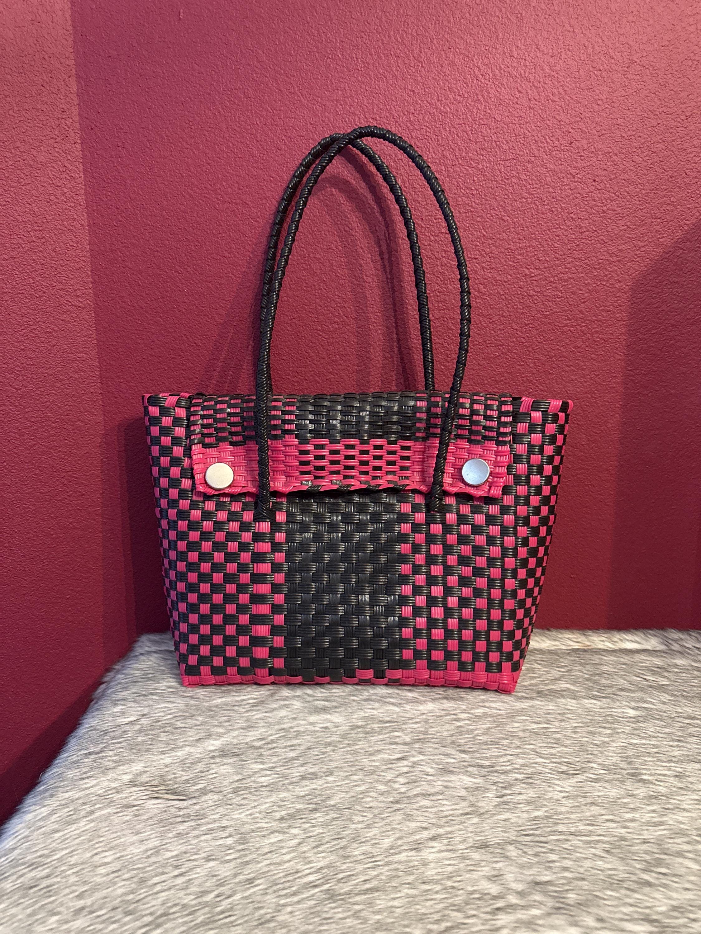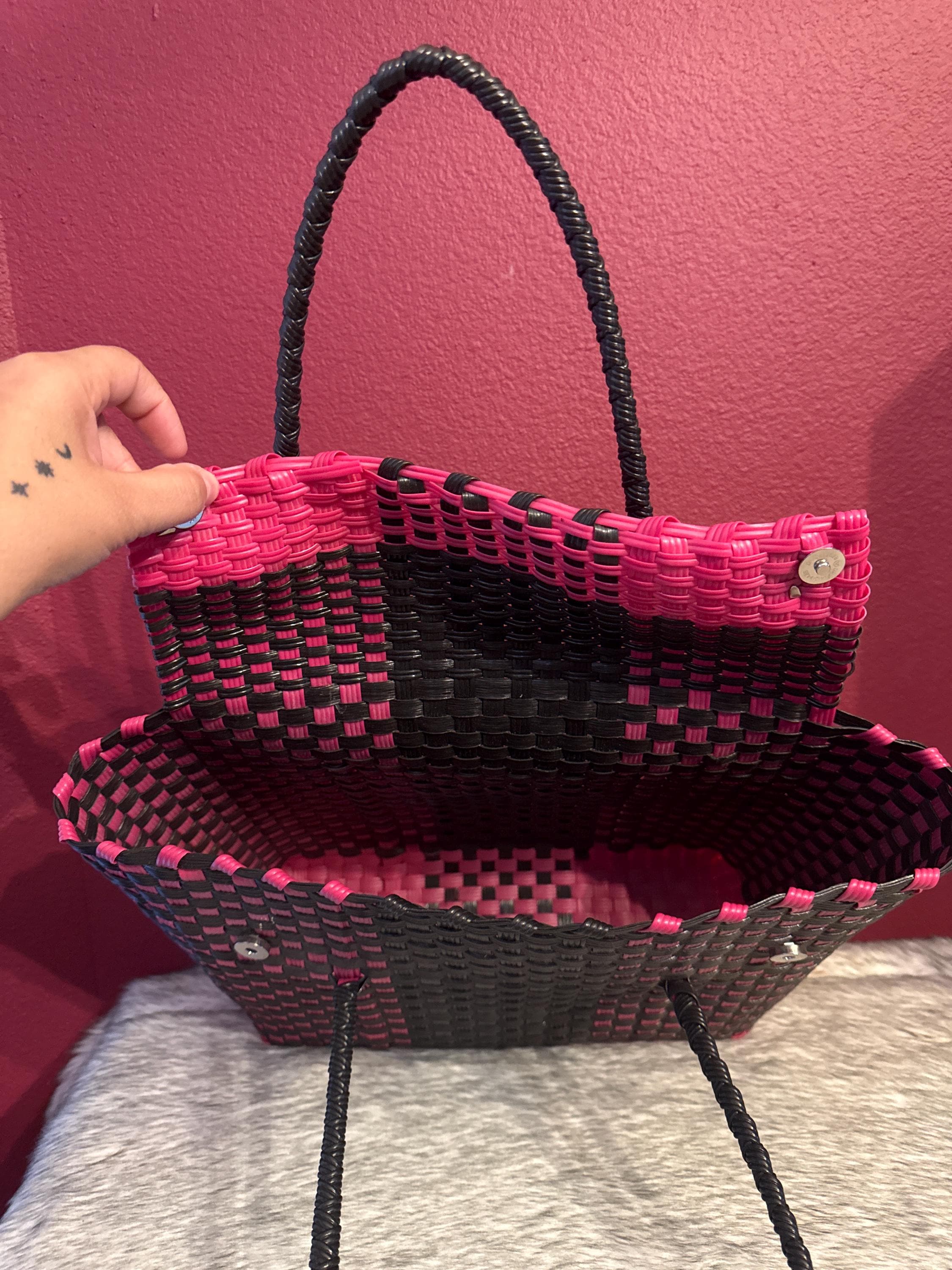 Beautiful handmade bag, made with multicolored palm leaves, the bag measures approximately 18x12.
