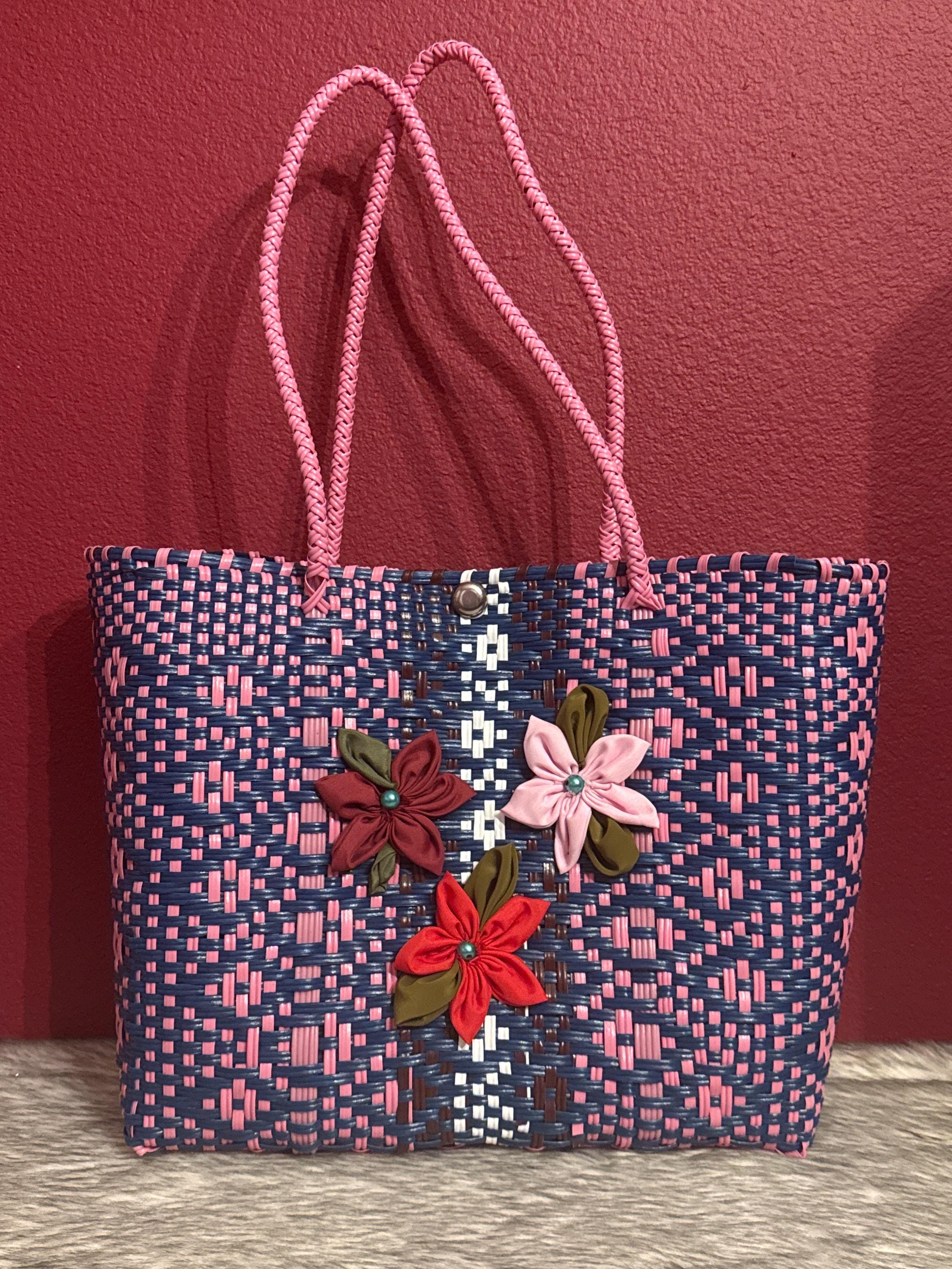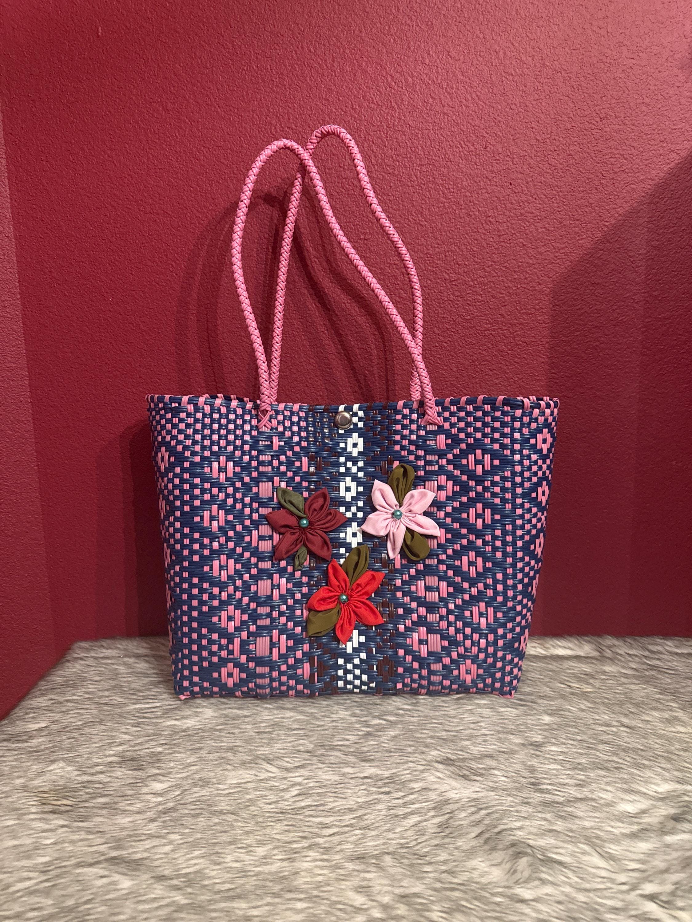 Beautiful handmade bag, crafted with multicolored palm leaves, the bag measures approximately 17x12 inches.