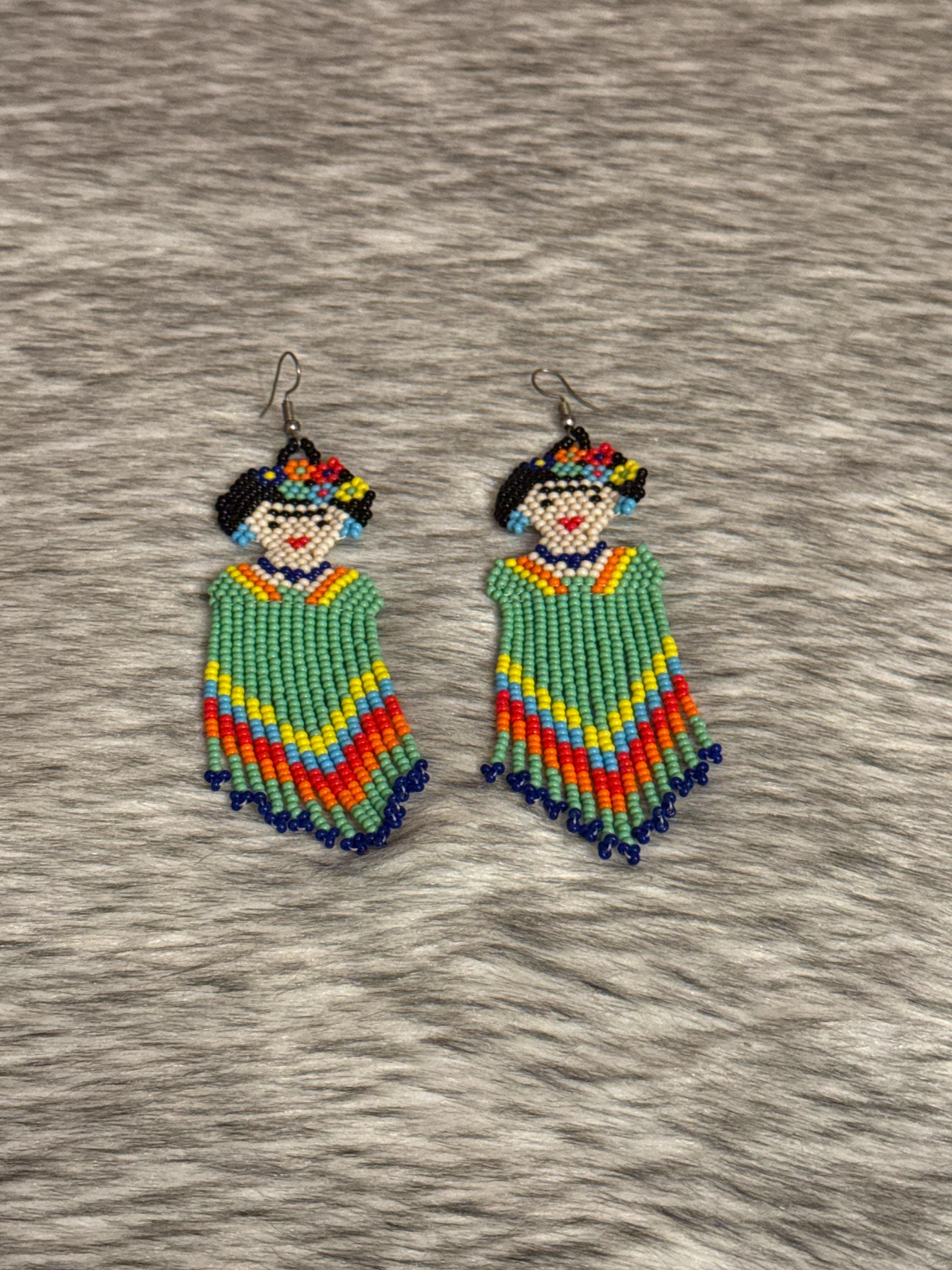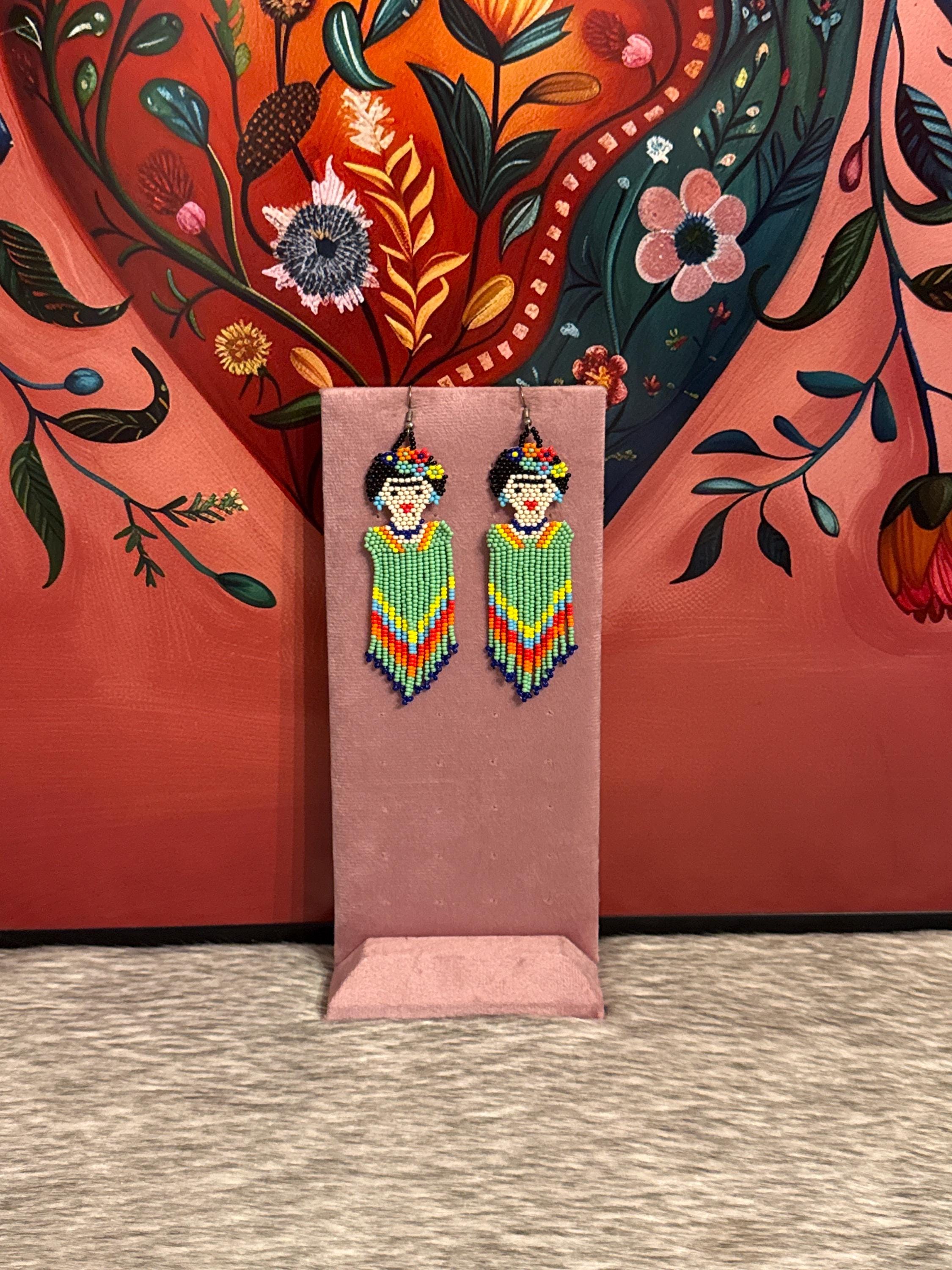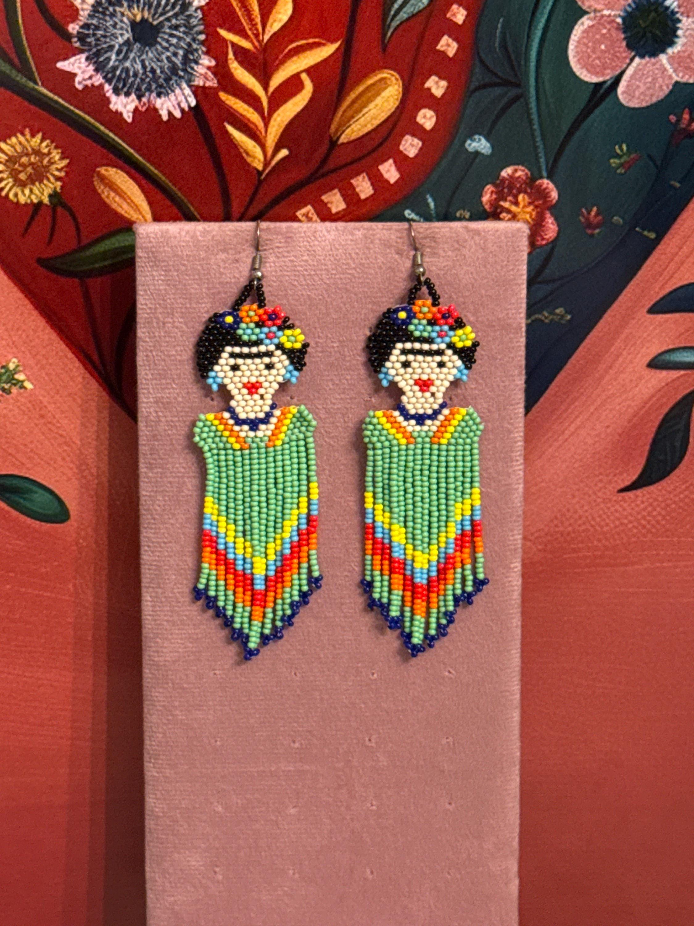 Beautiful long Frida earrings, made with beads by Mexican artisans.