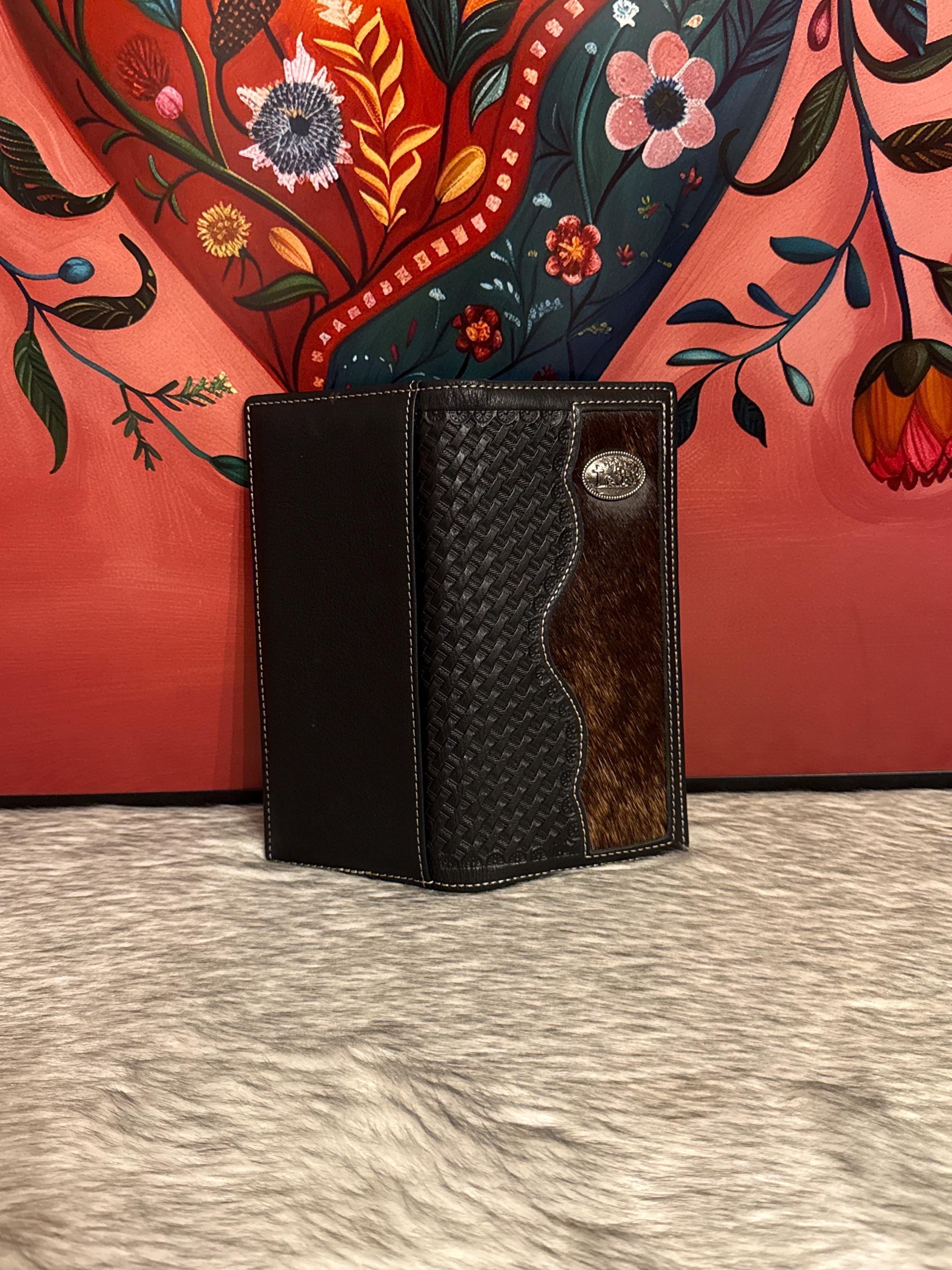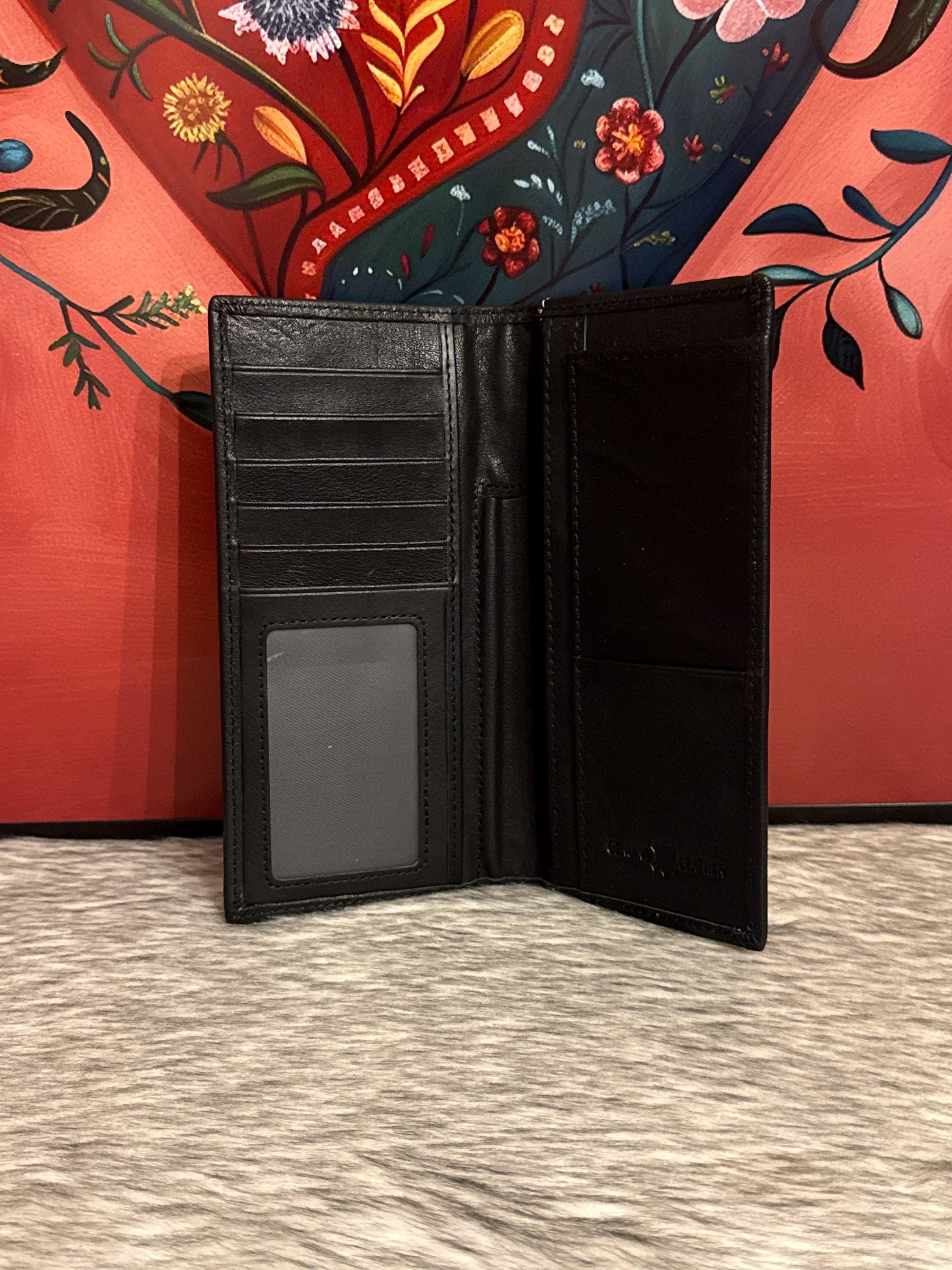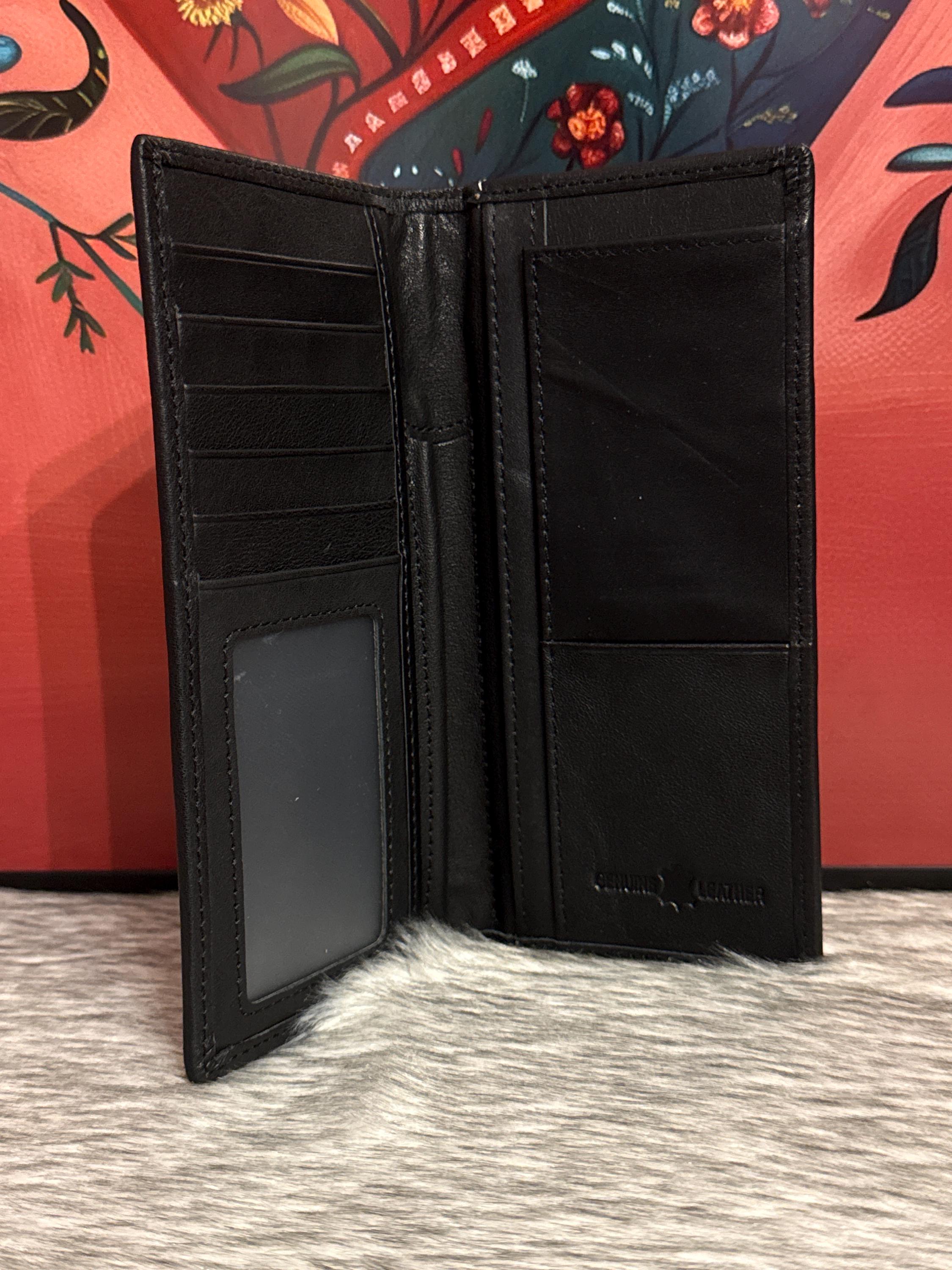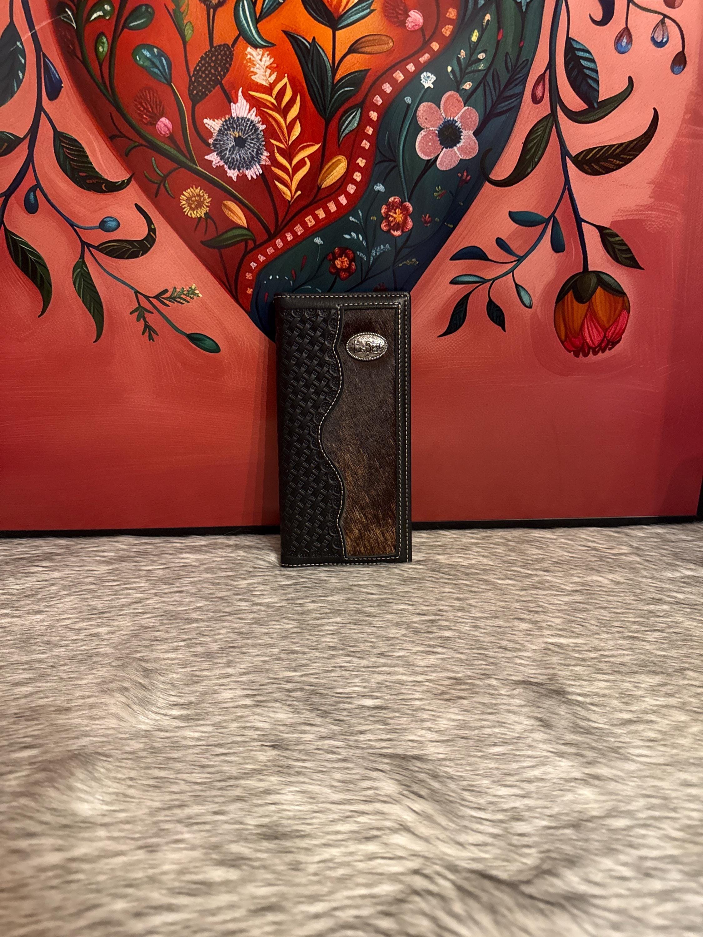 Beautiful long wallet, made of leather with a small horse pendant at the top, made by Mexican artisans. Mexican artisan wallet.
