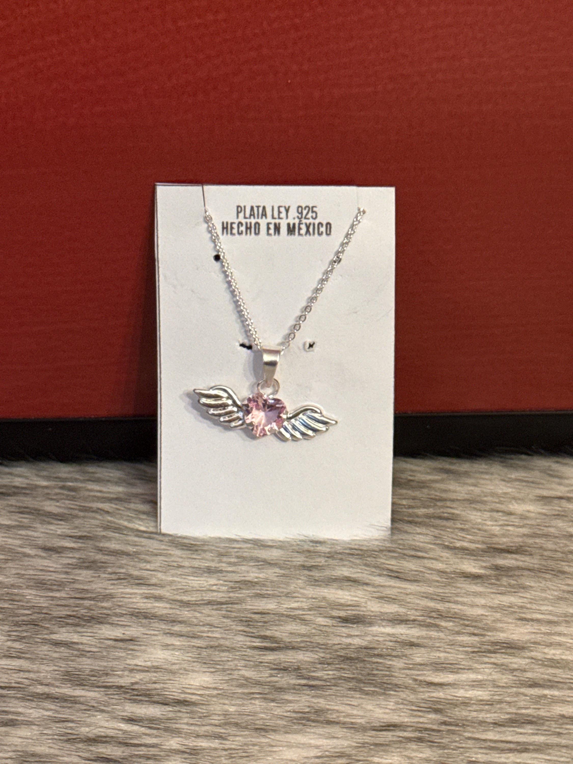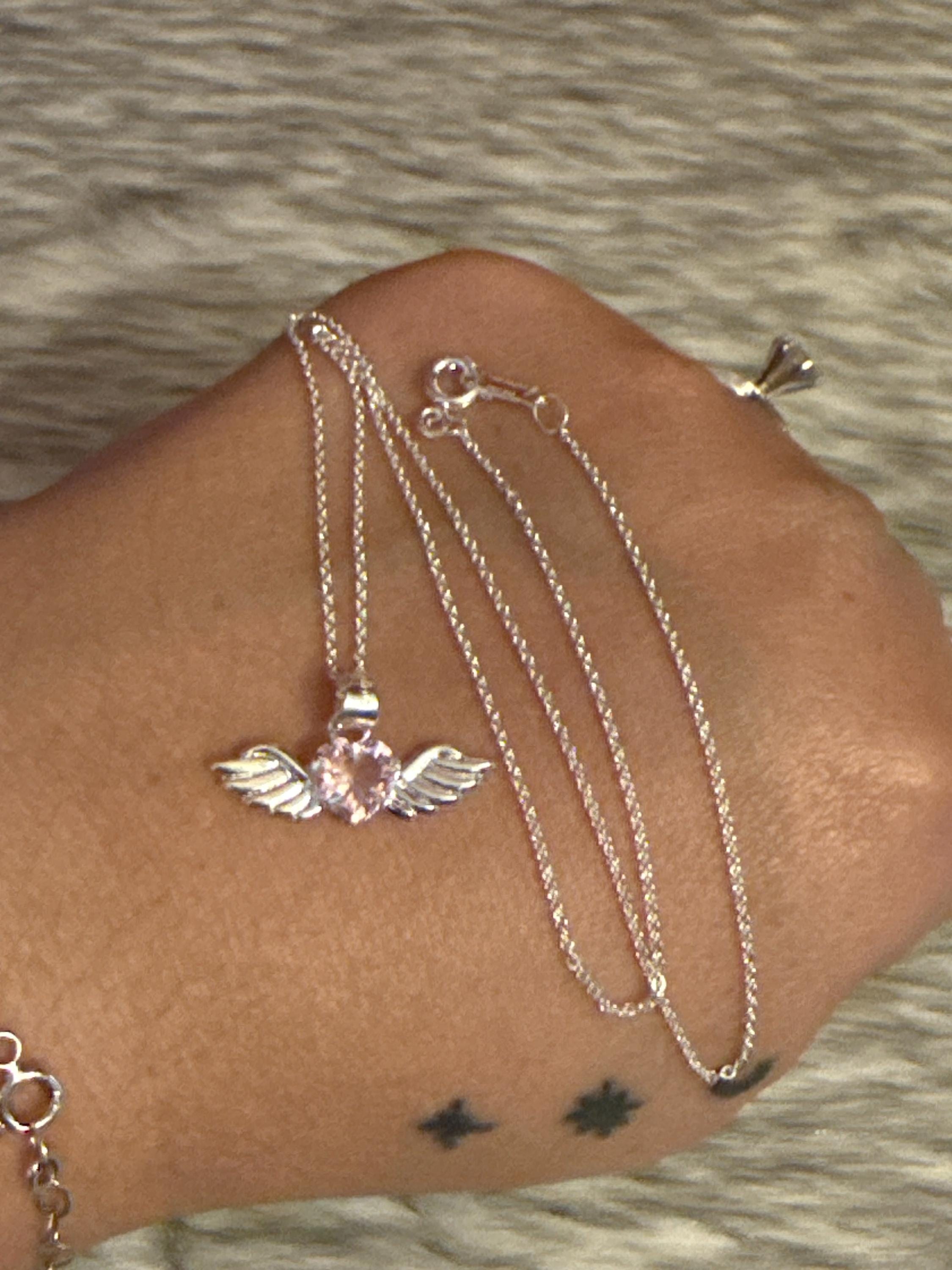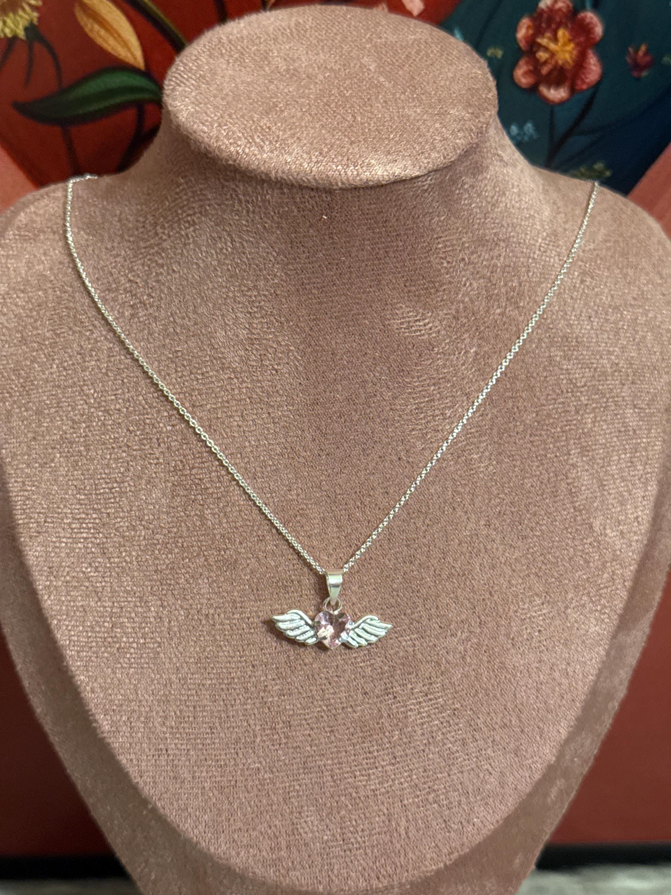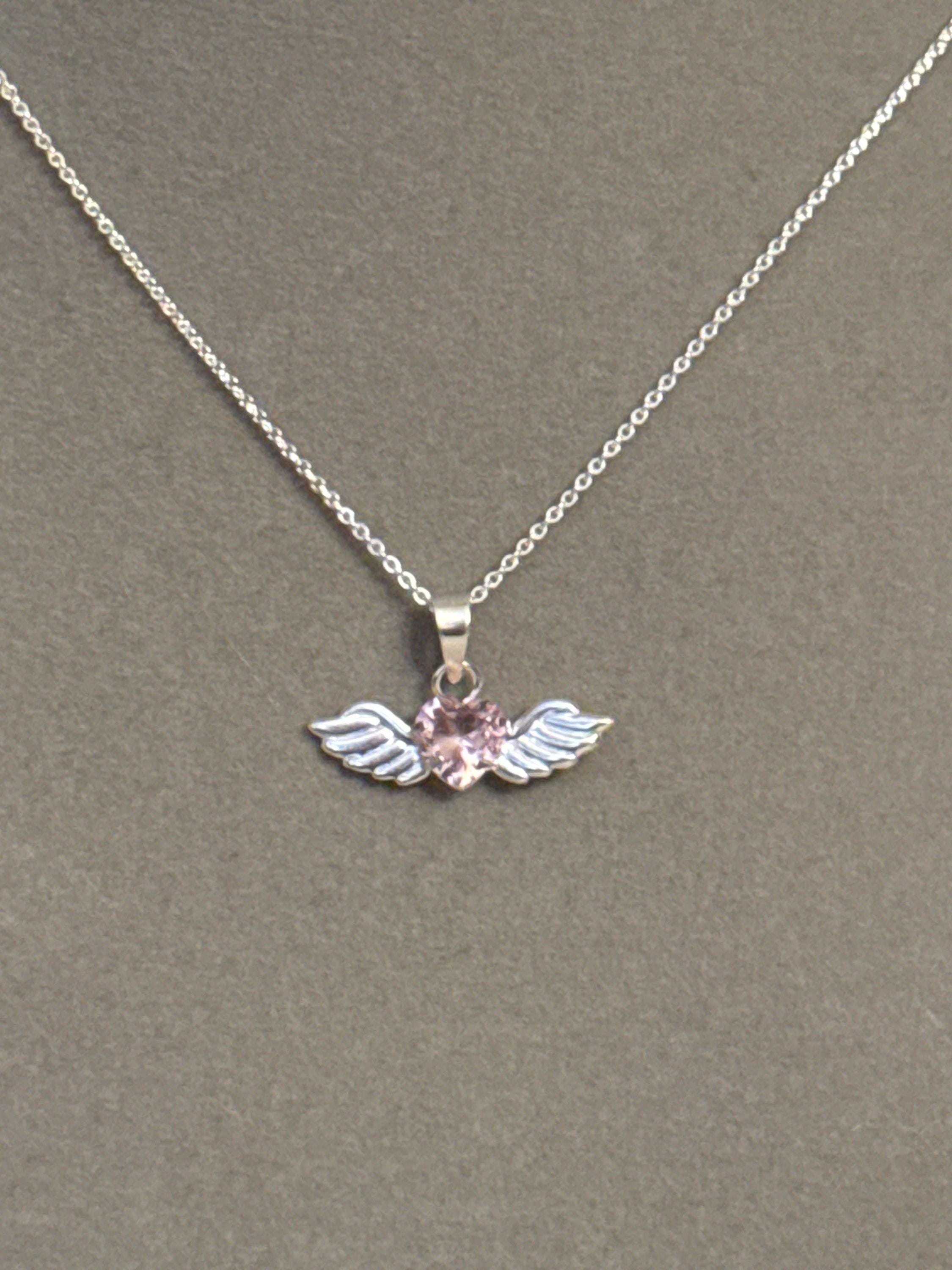 Beautiful fine and delicate Angel Heart chain, made of 925 sterling silver with a pink zirconia wing and heart pendant, the chain measures approximately 15 inches long.