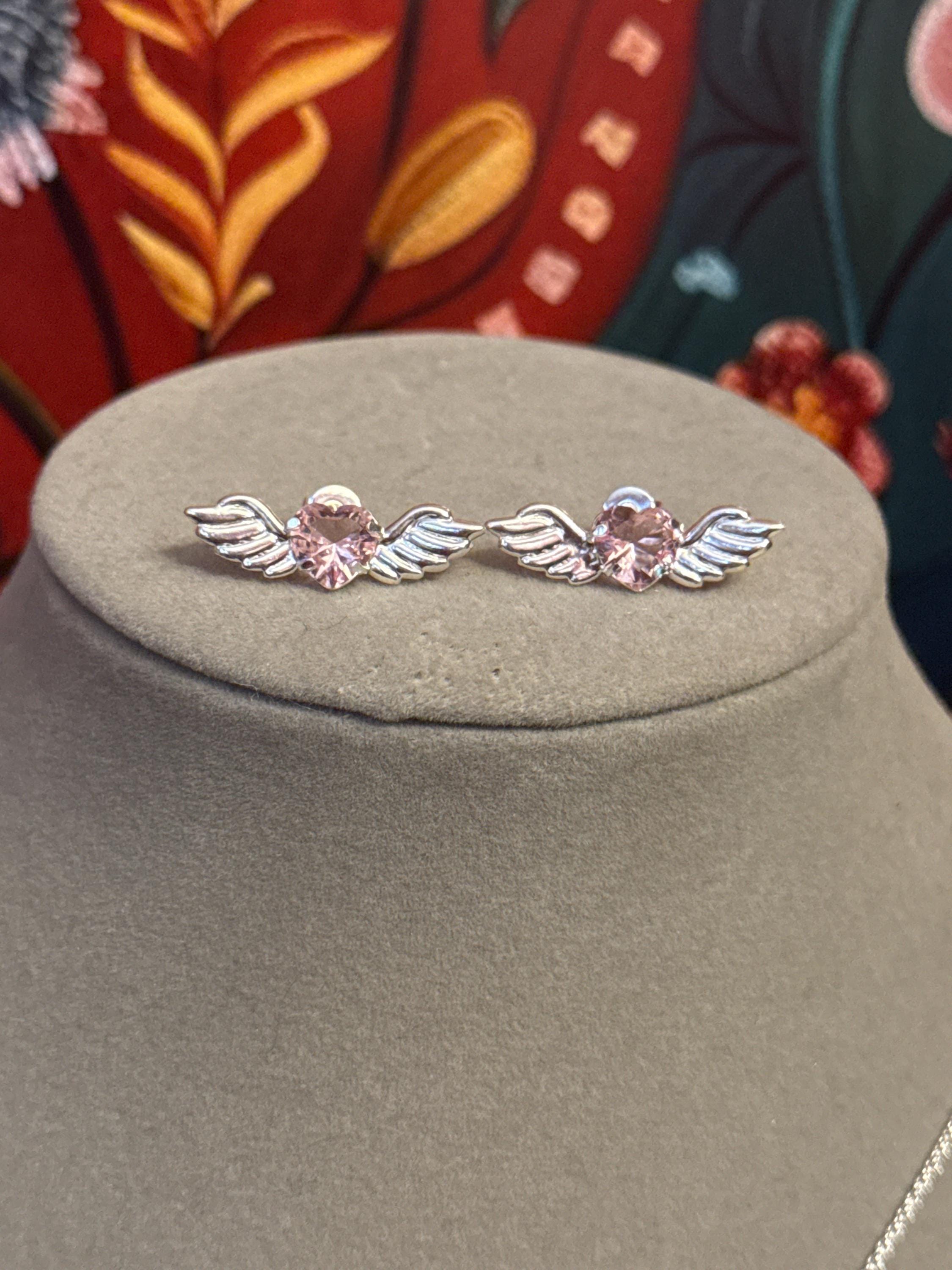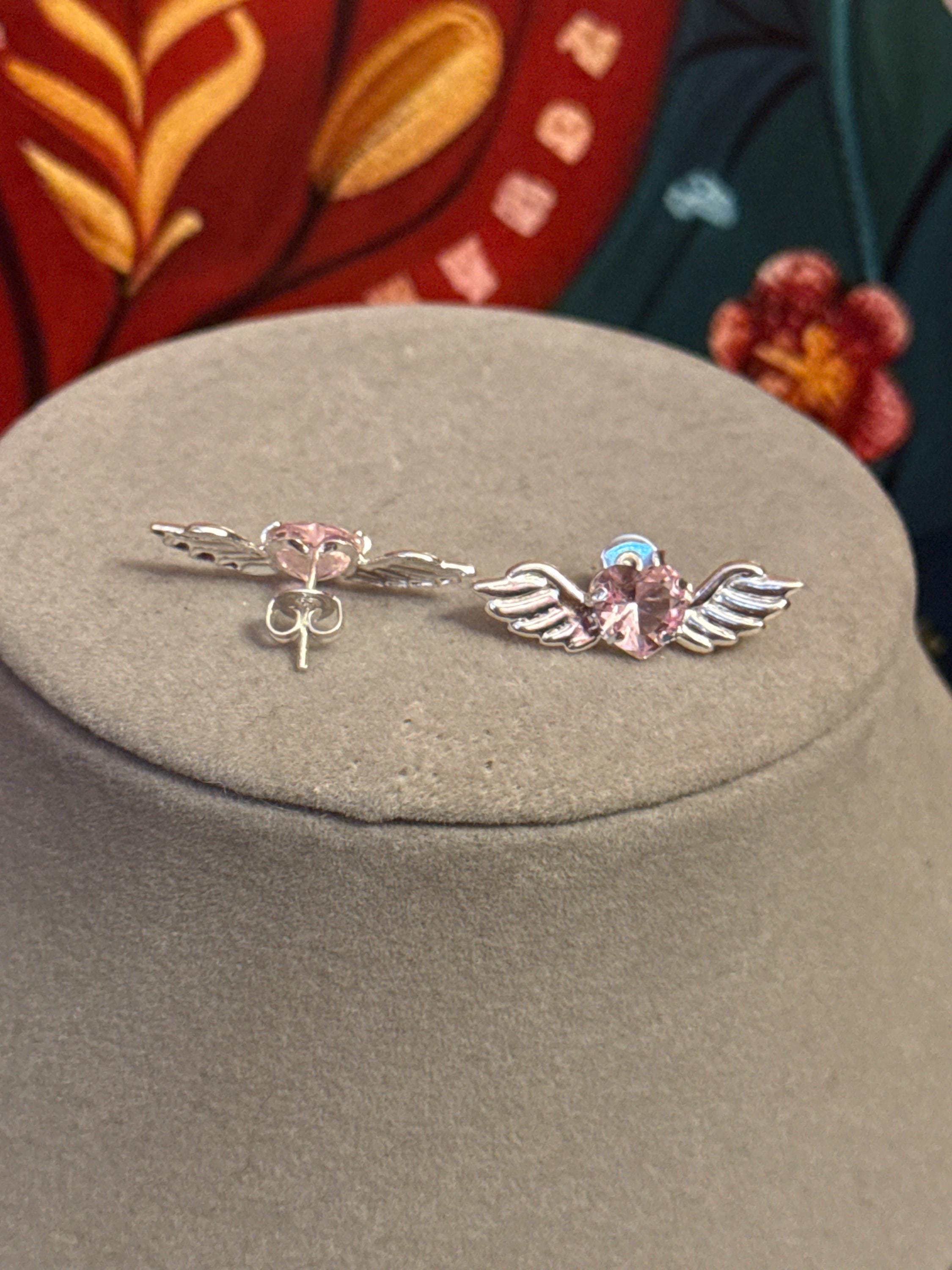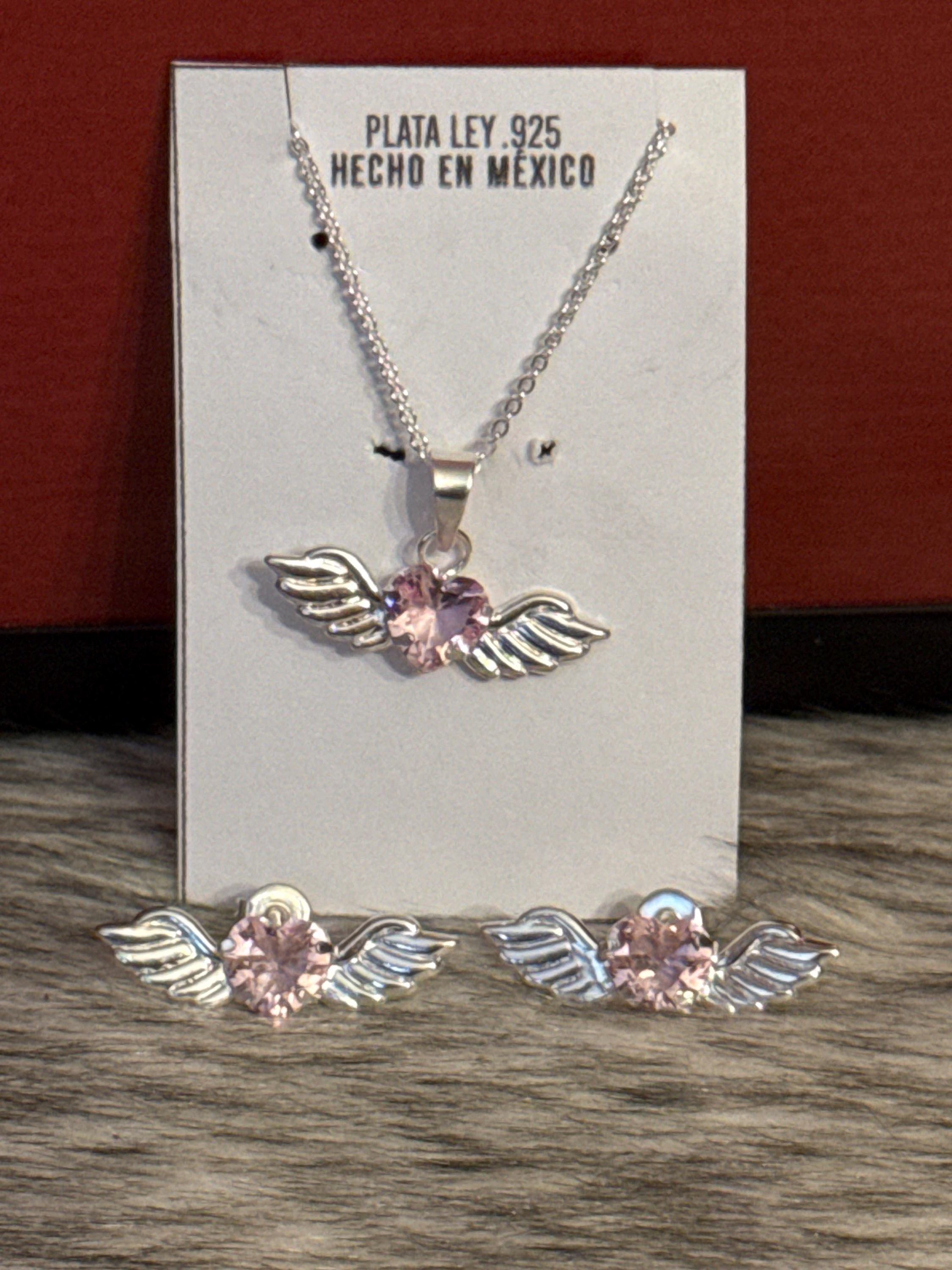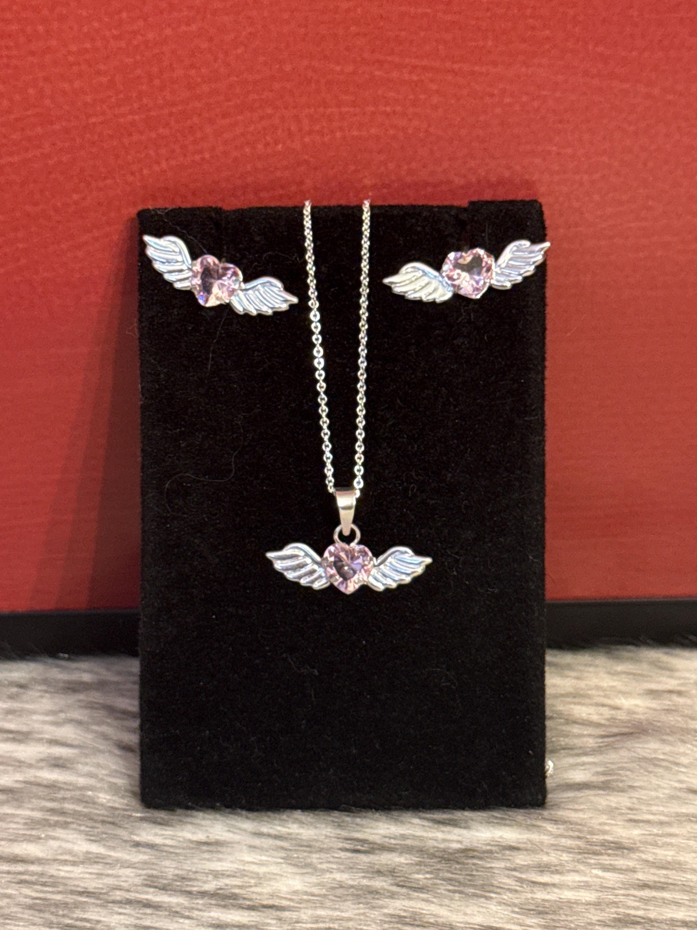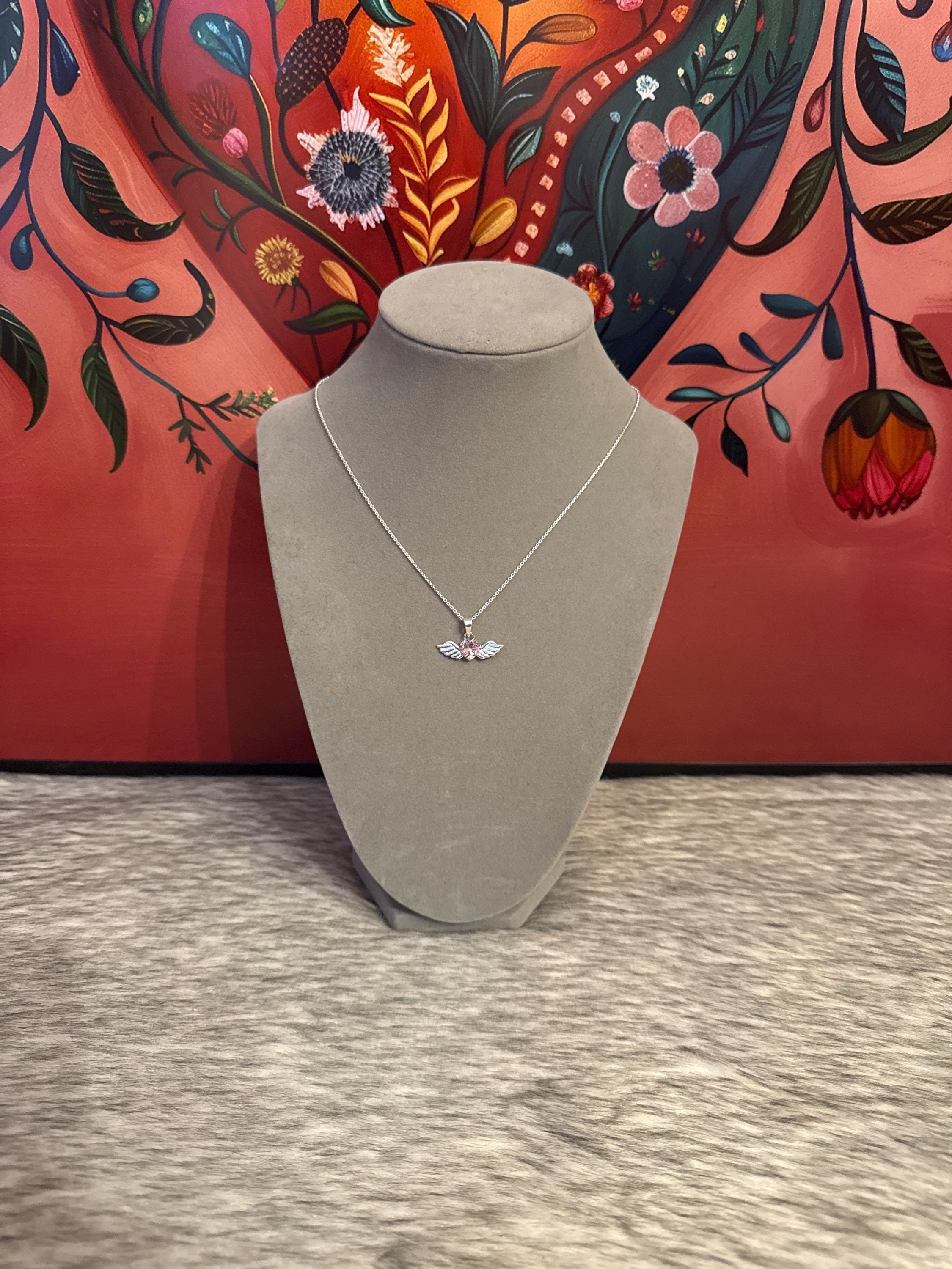 Beautiful fine and delicate Angel Heart chain, made of 925 sterling silver with a pink zirconia wing and heart pendant, the chain measures approximately 15 inches long.