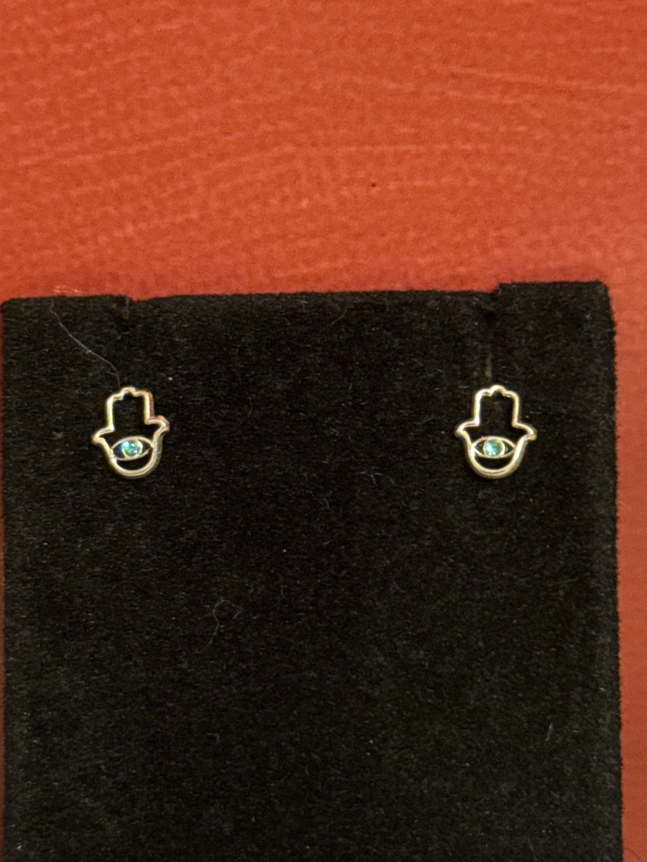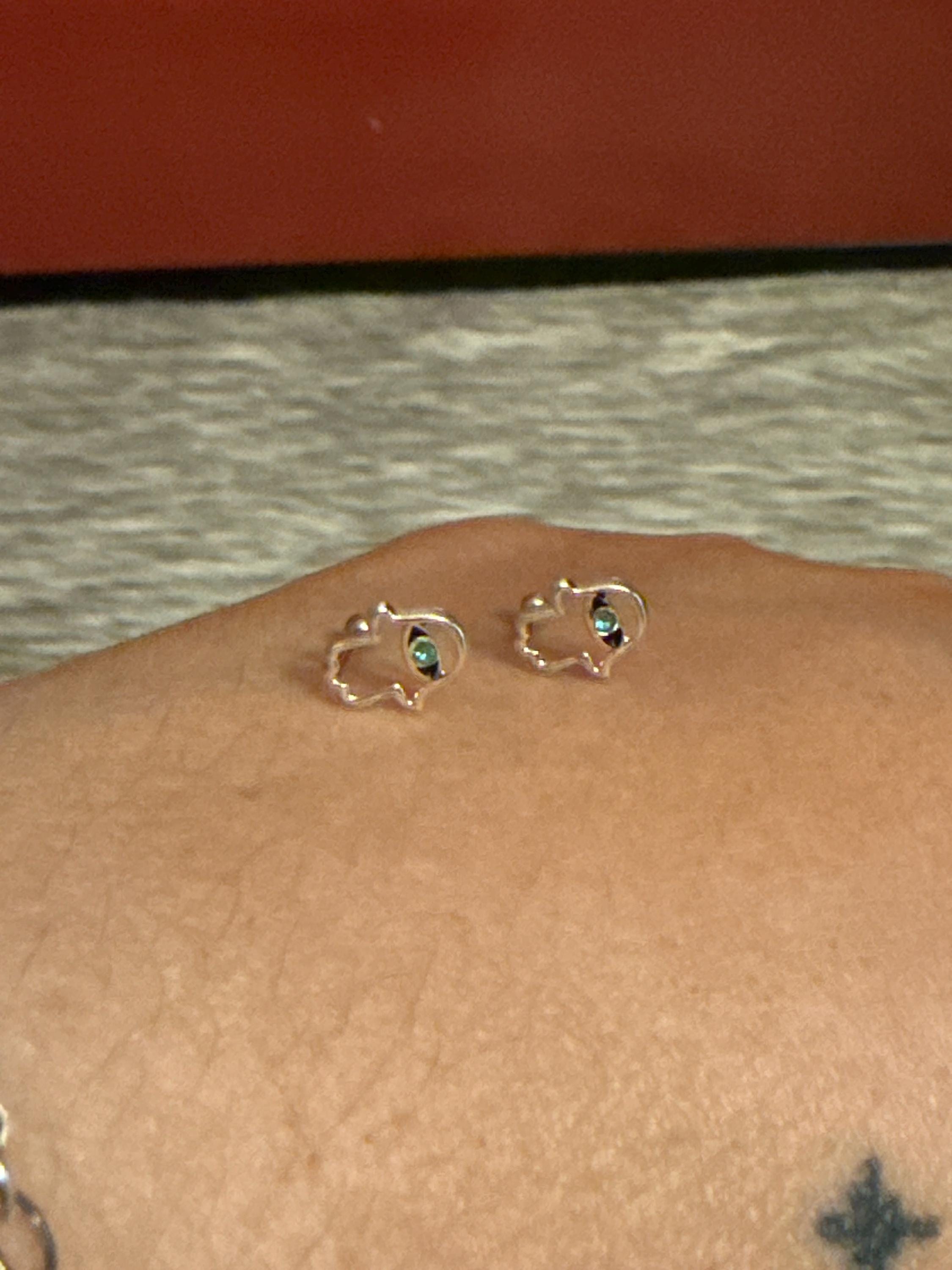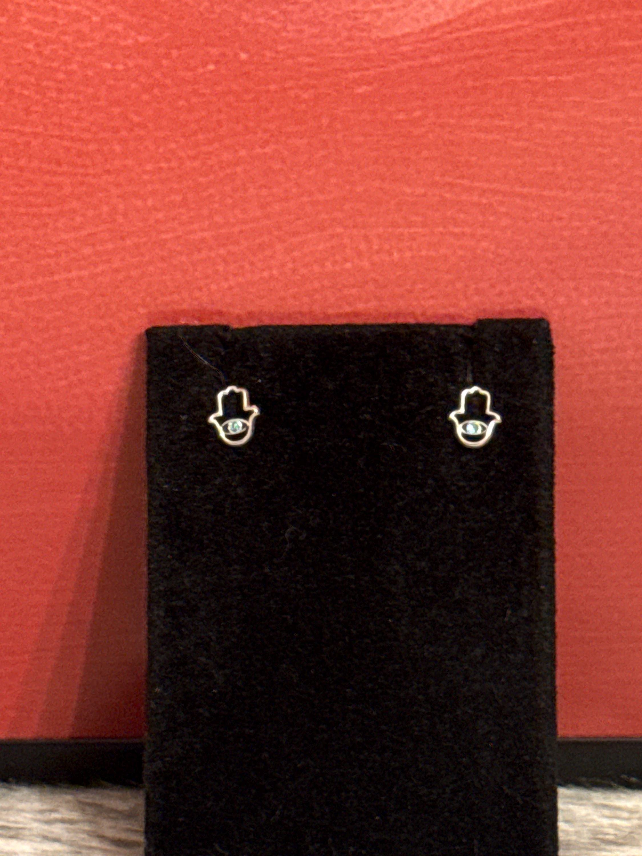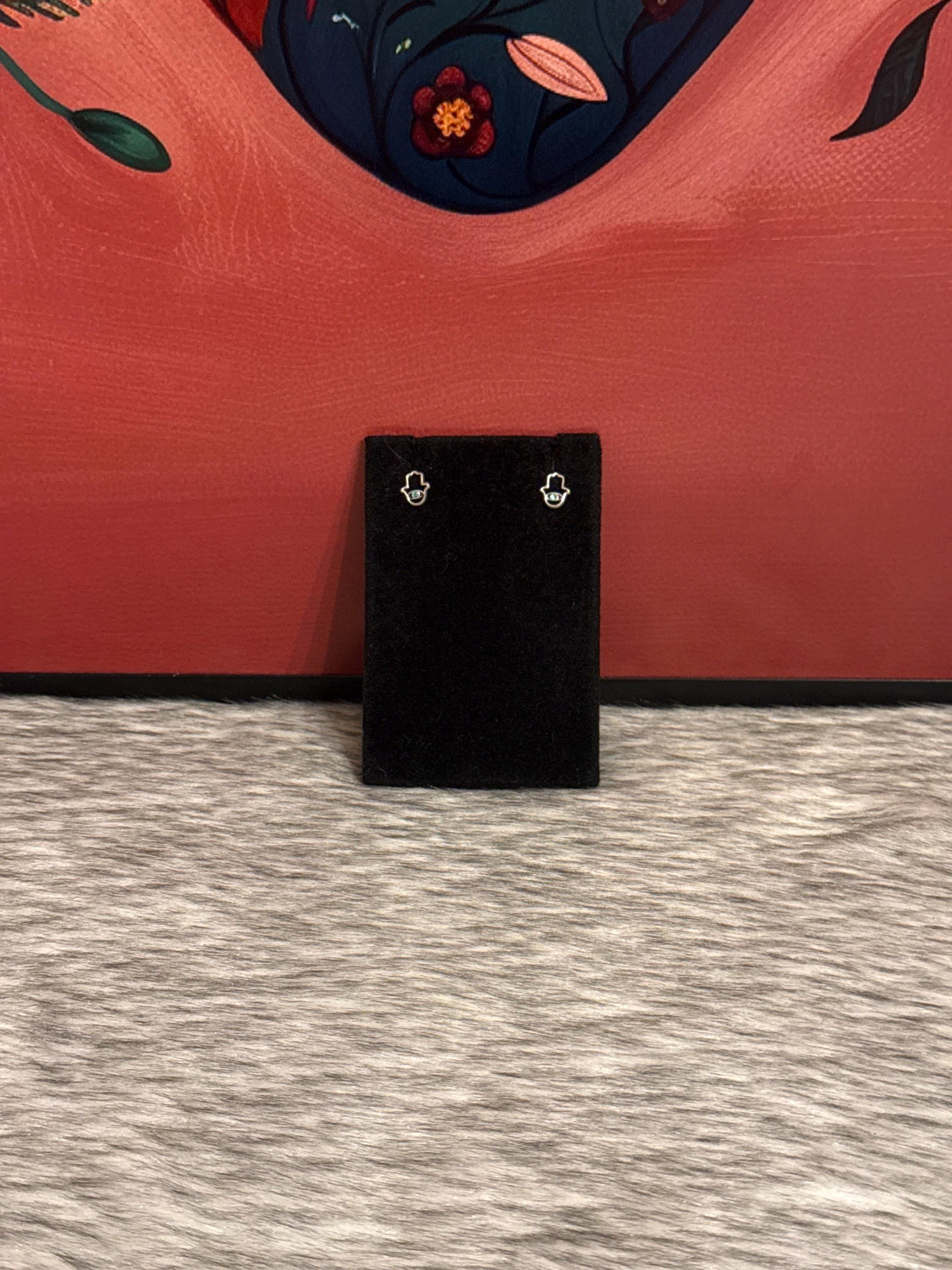 Beautiful handcrafted earrings, made in Mexico with 925 sterling silver and cubic zirconia stones. Fatima's Hand earrings