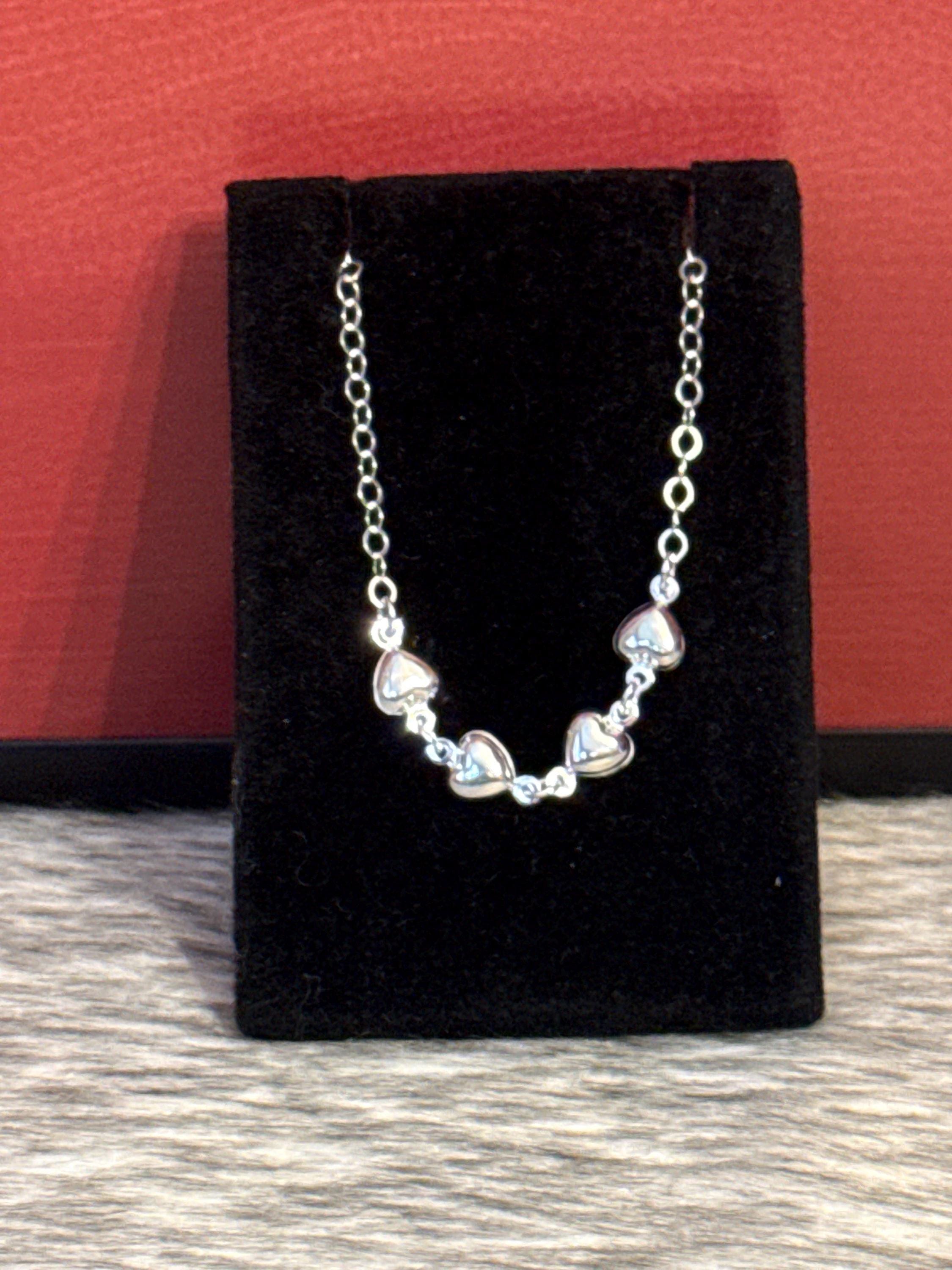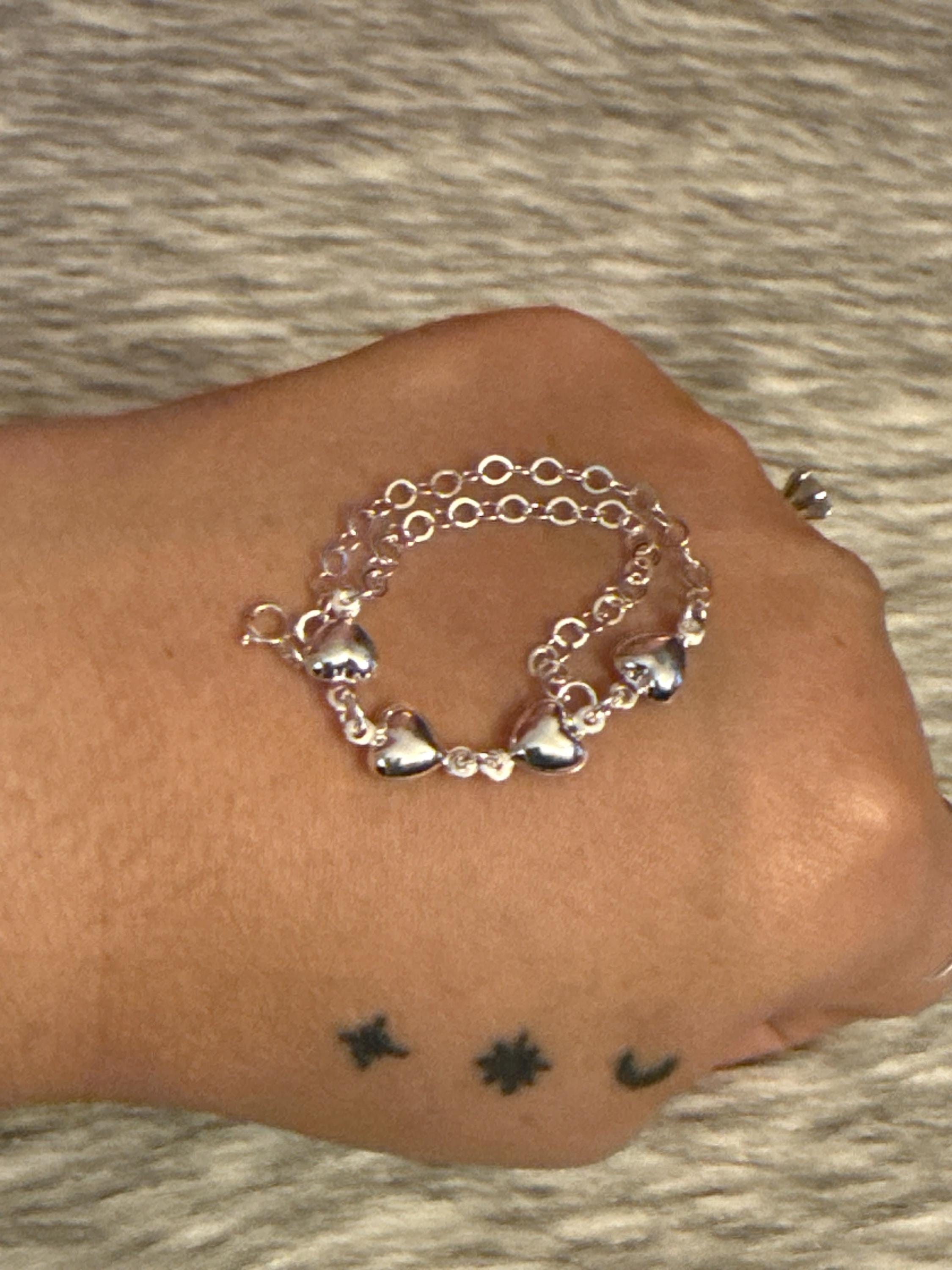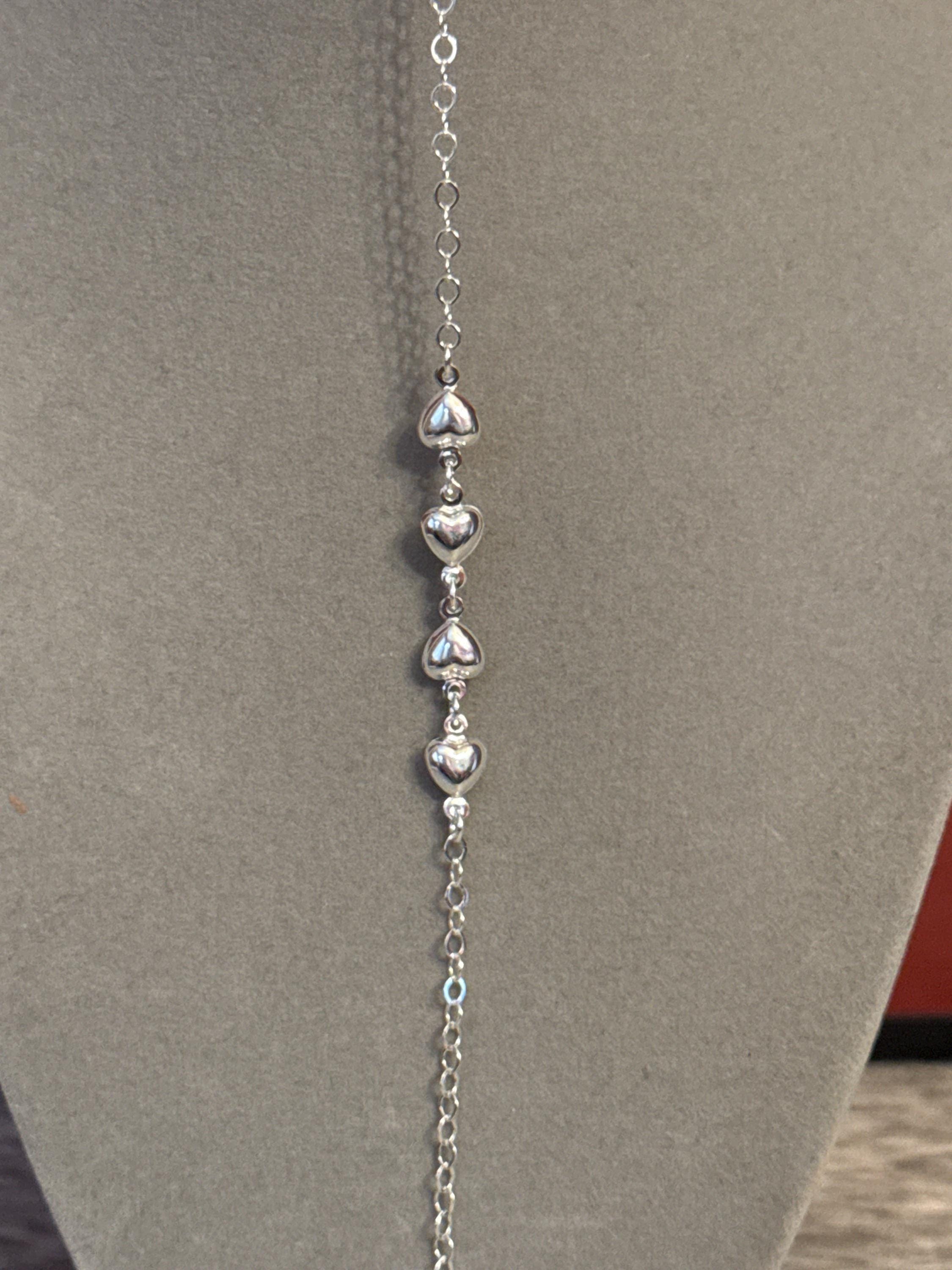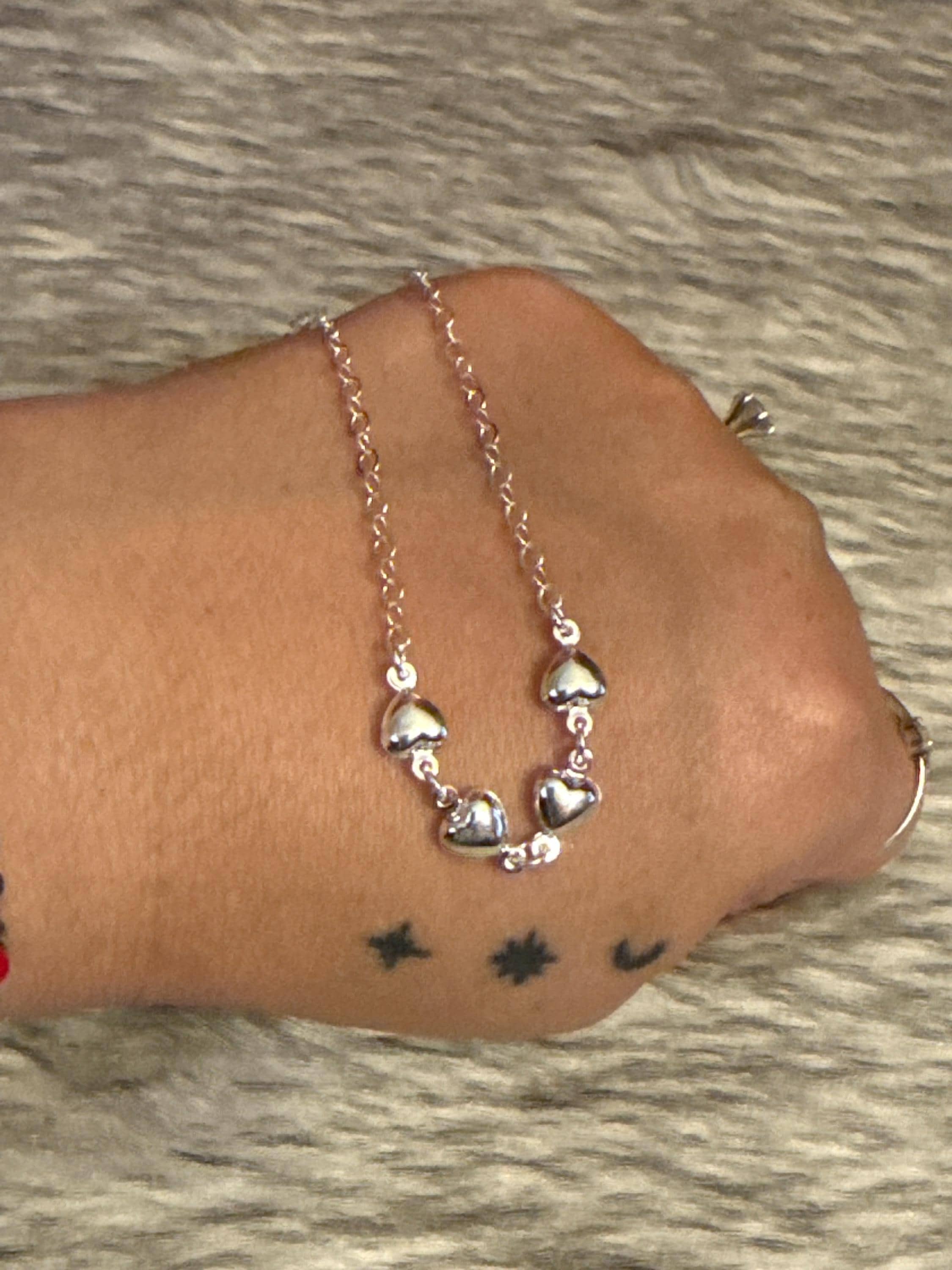 Beautiful 4 hearts bracelet, made in Mexico with 925 sterling silver, the bracelet measures approximately 7.5 inches long.