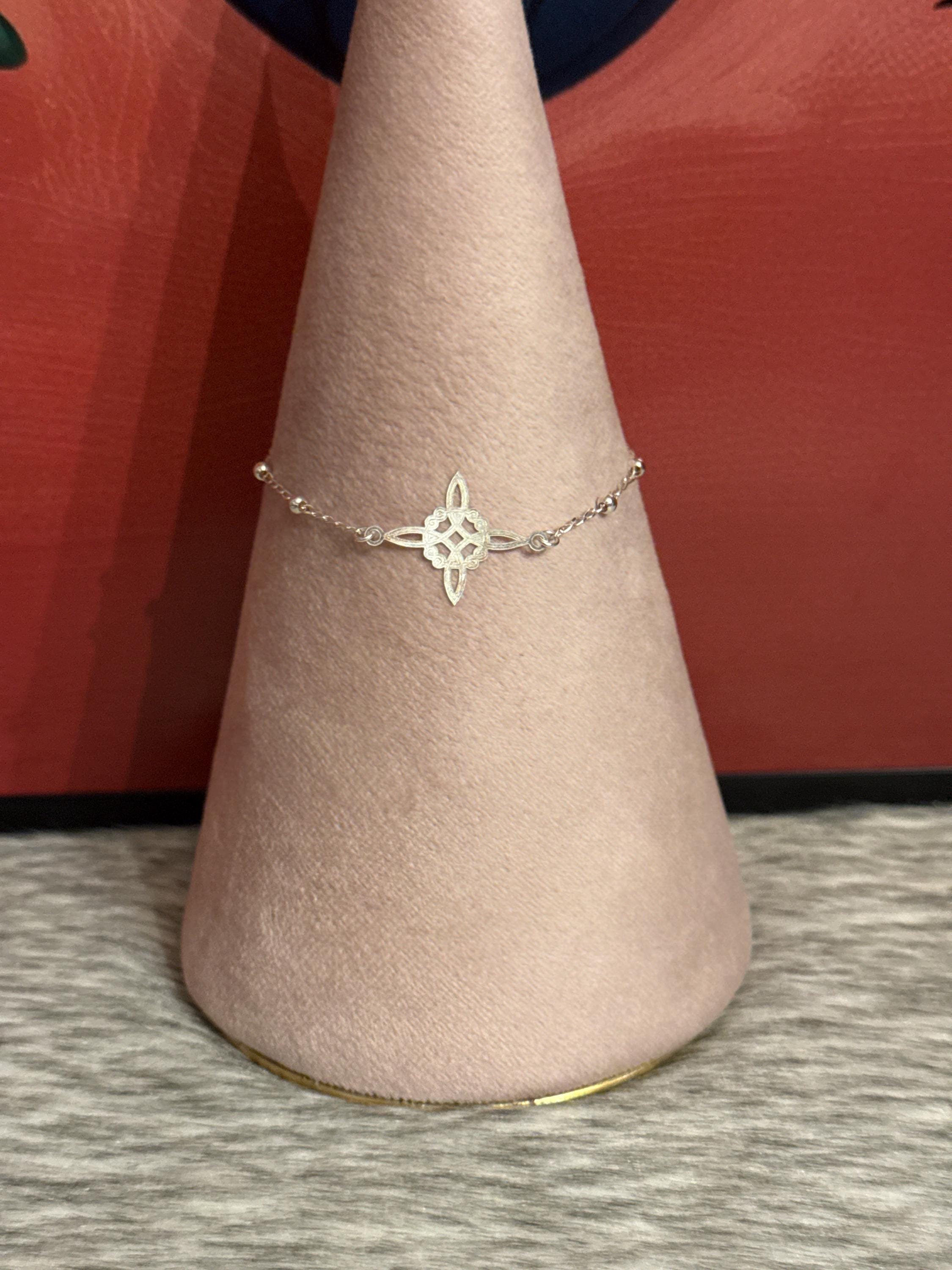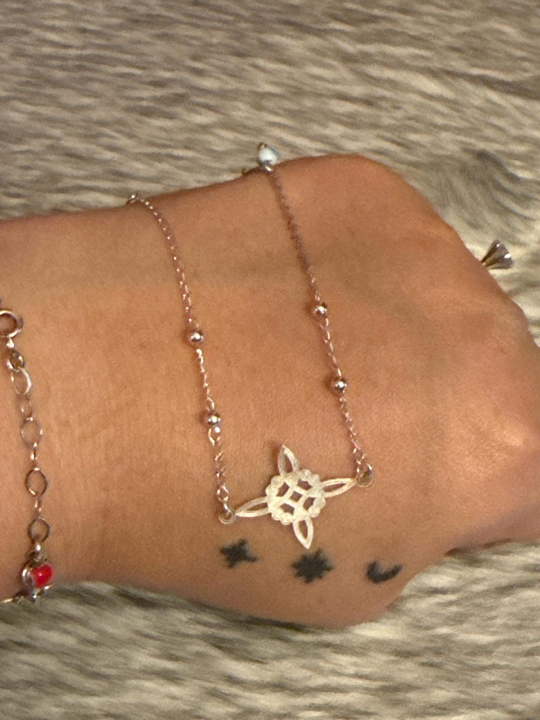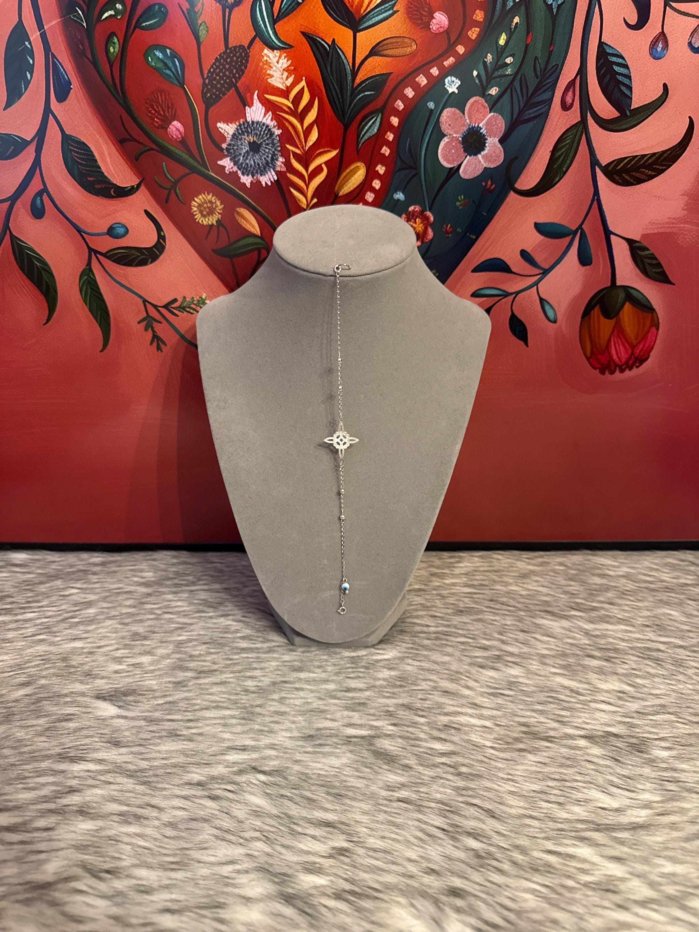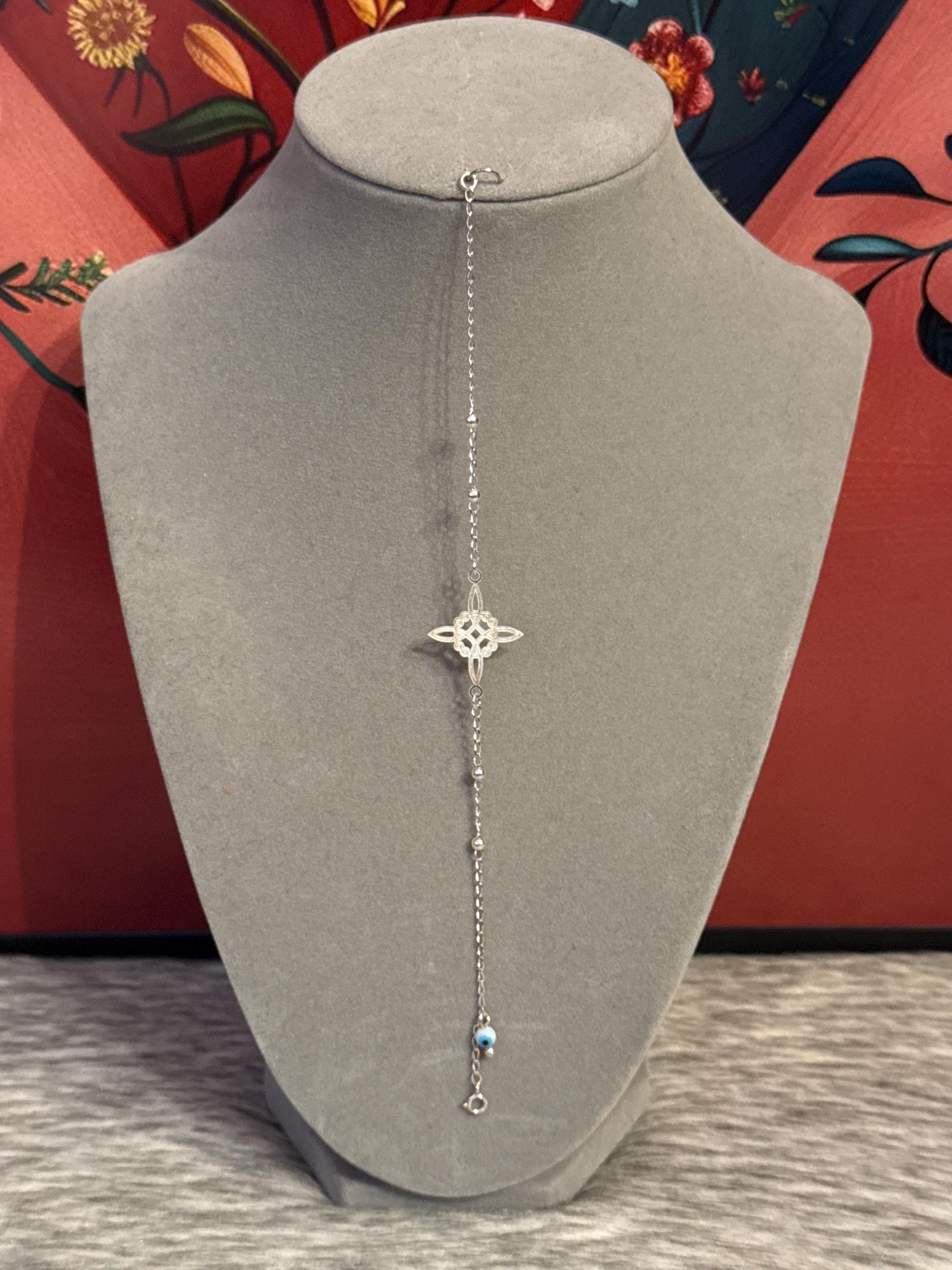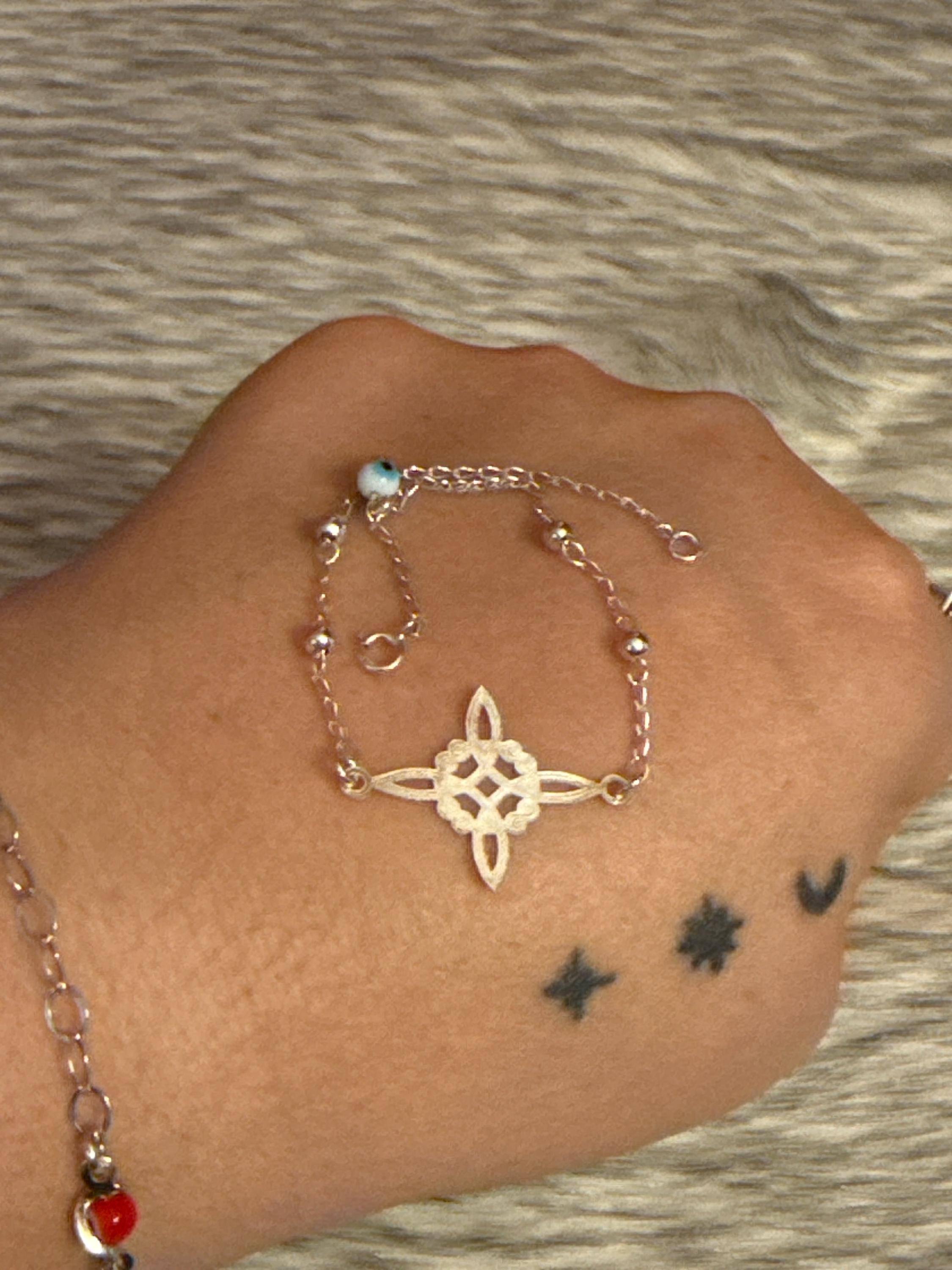 Beautiful witch knot bracelet with eye charm, made in Mexico with 925 sterling silver, the bracelet measures approximately 7 inches long.