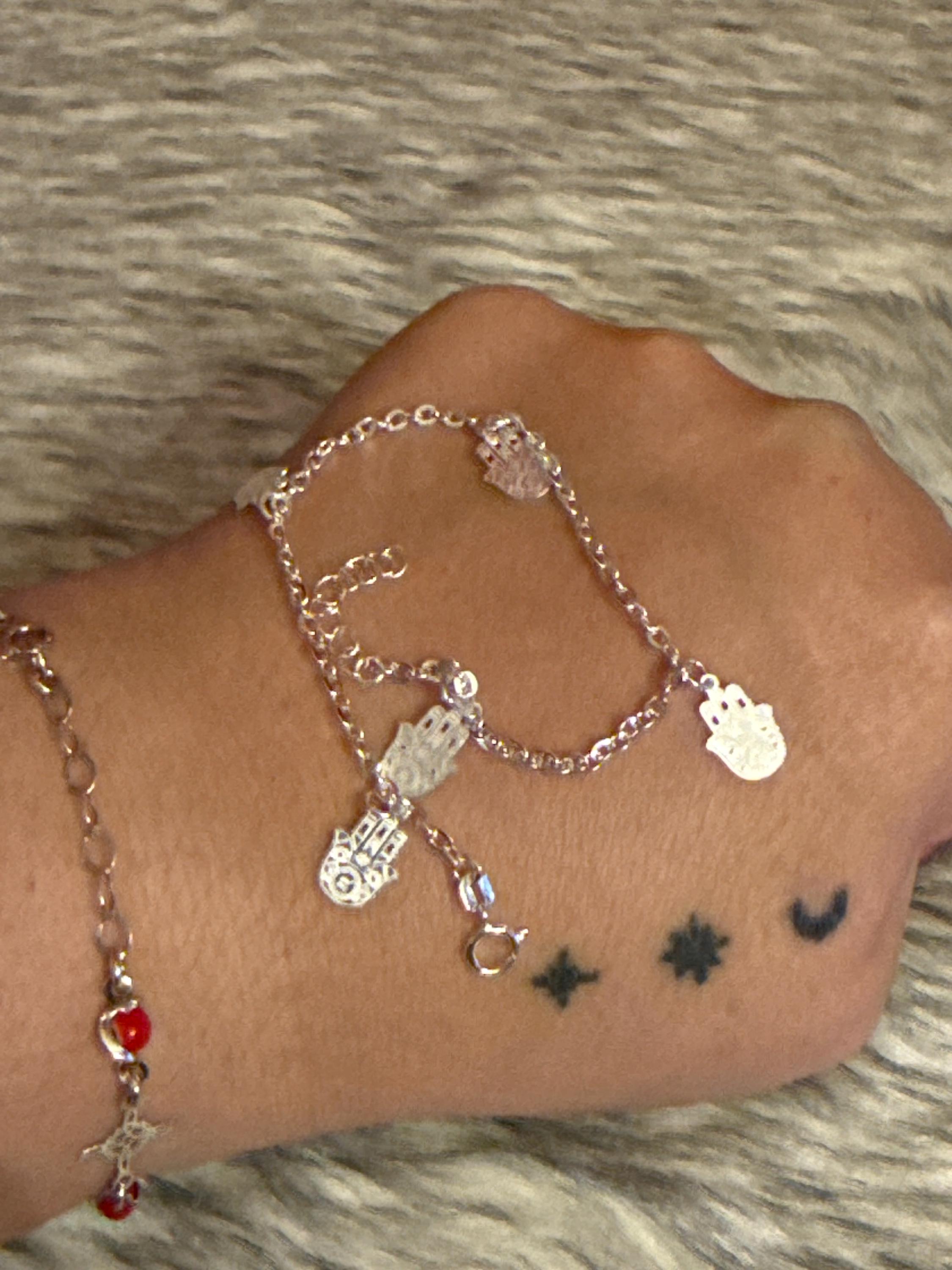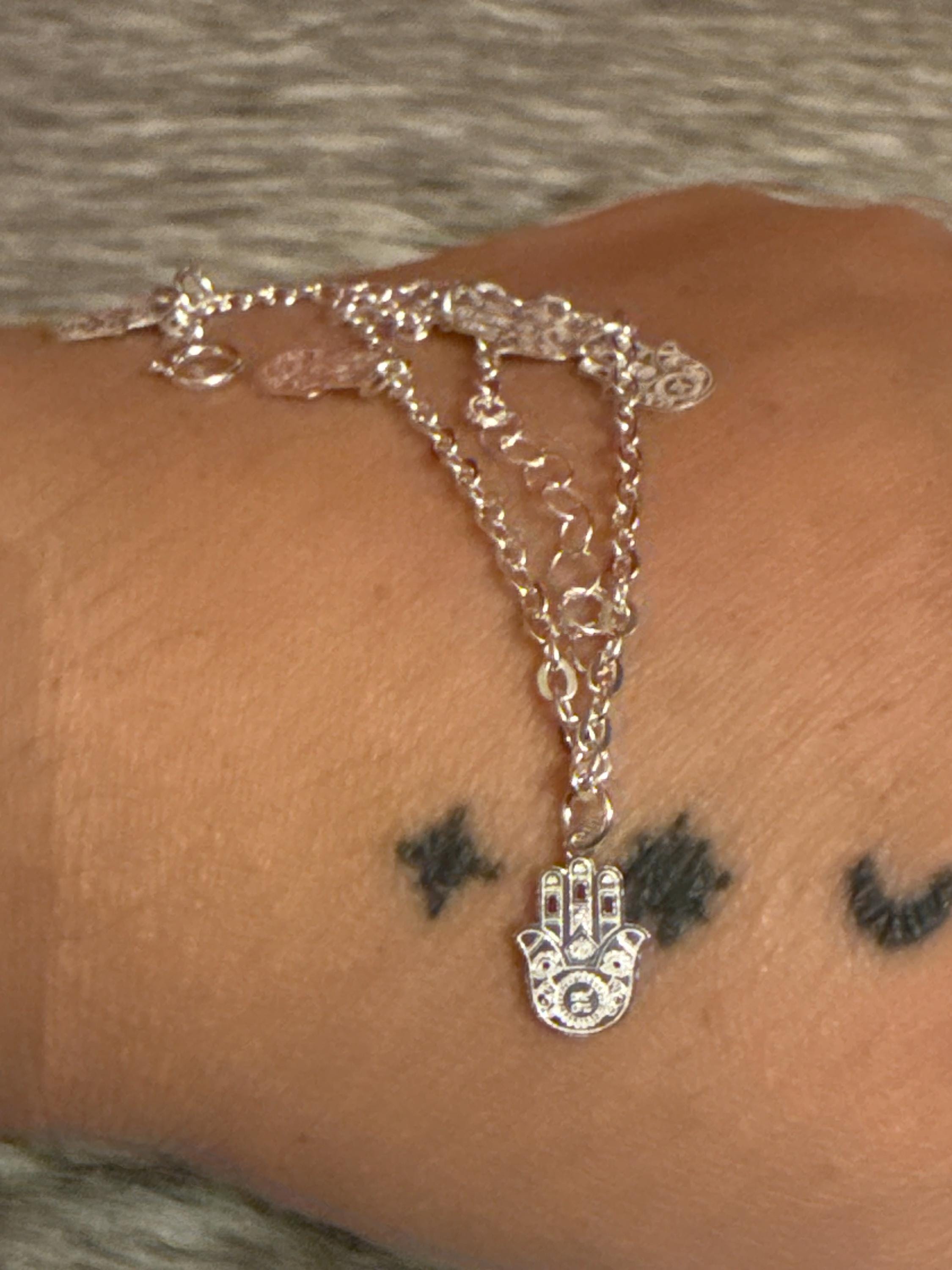 Beautiful Lucky Hand bracelet, made in Mexico with 925 sterling silver, the bracelet measures approximately 7.5 inches long.
