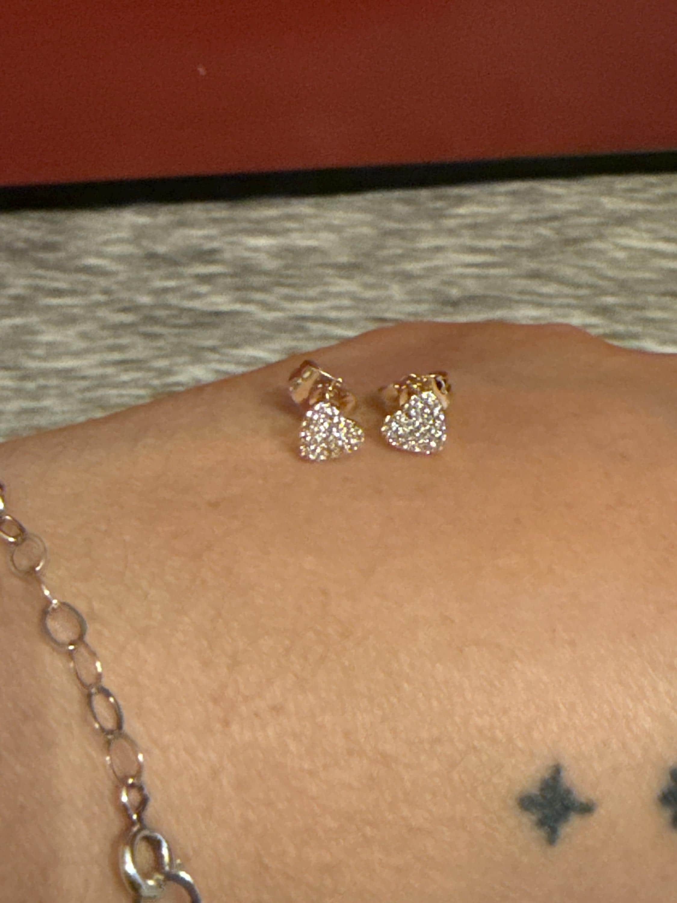 Beautiful heart earrings with zirconia and butterfly clasp, made in high quality 18k gold plated.