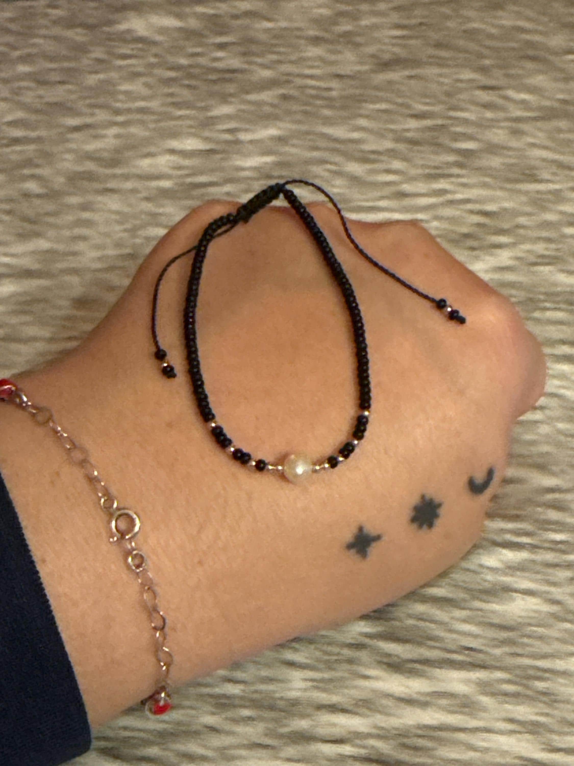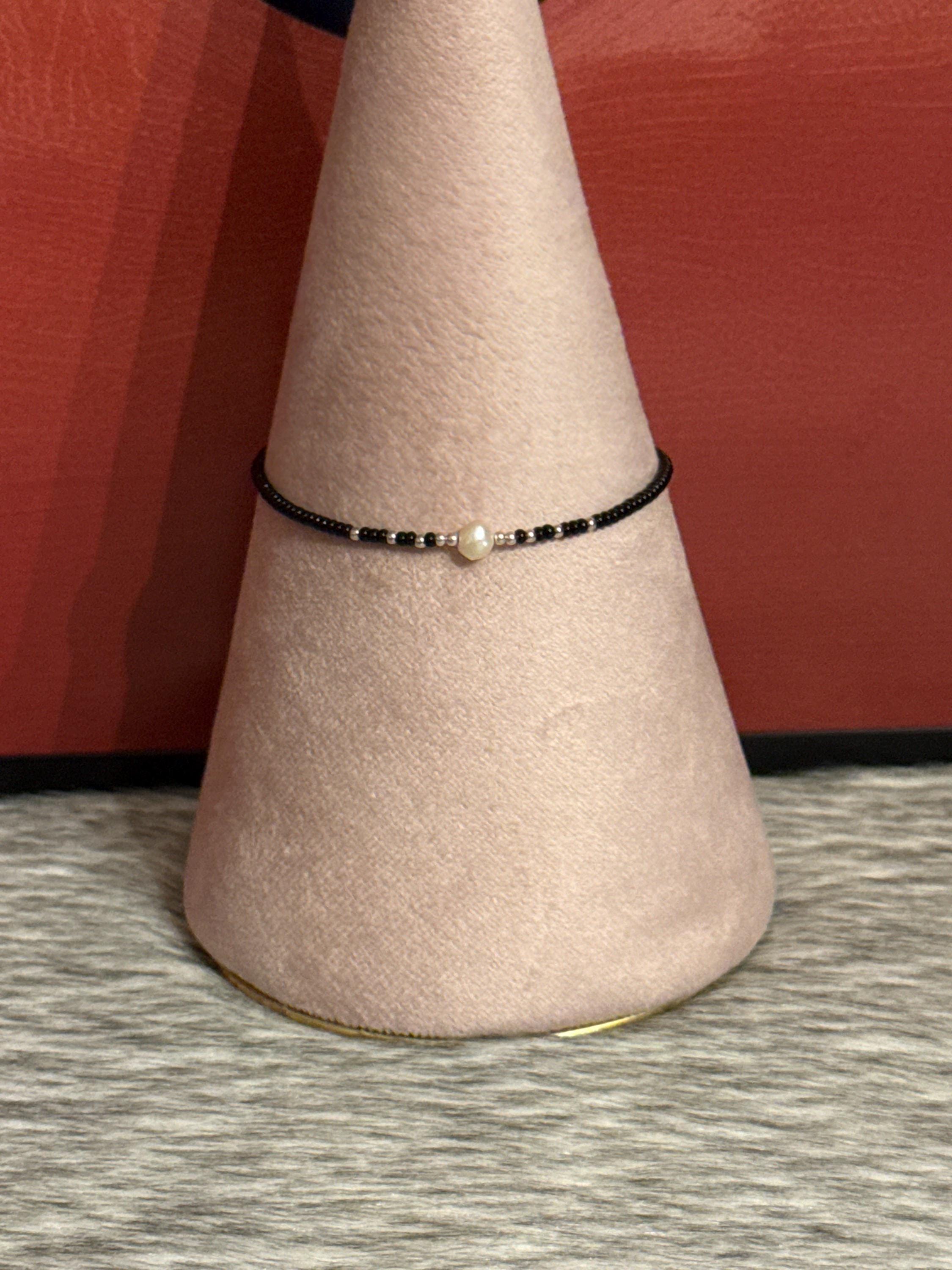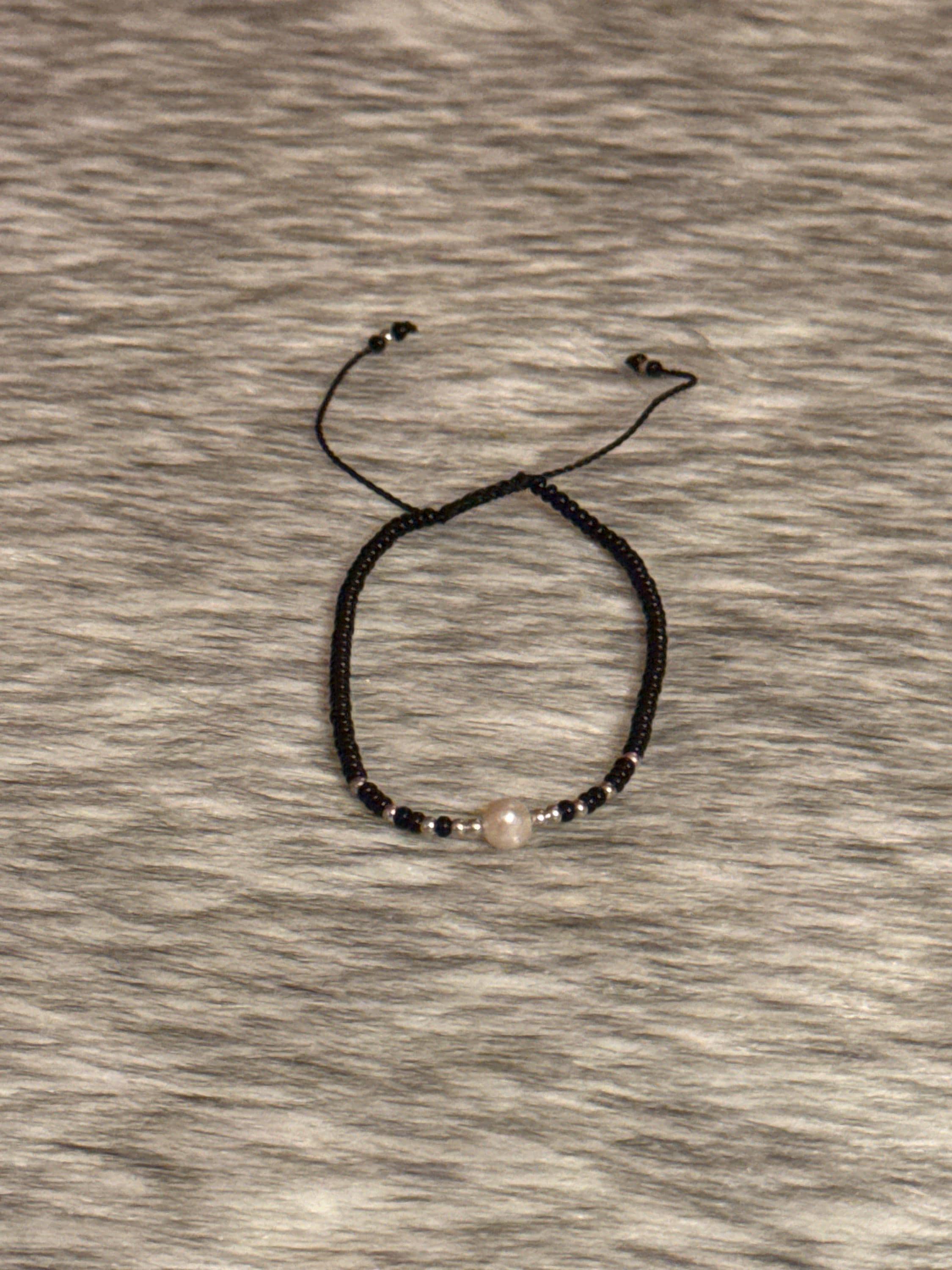 Beautiful unisex thread bracelet with 925 silver and cultured river pearl.