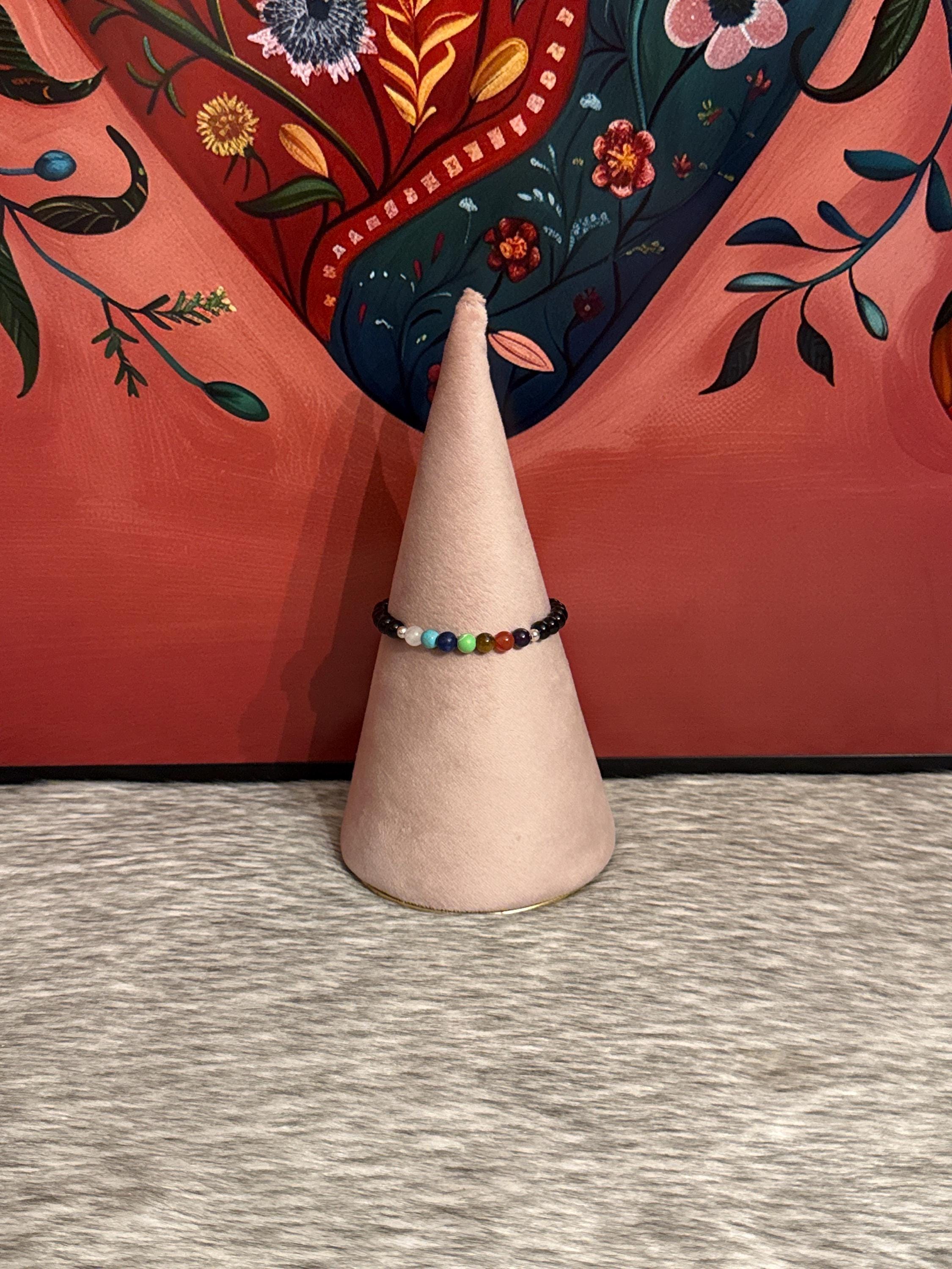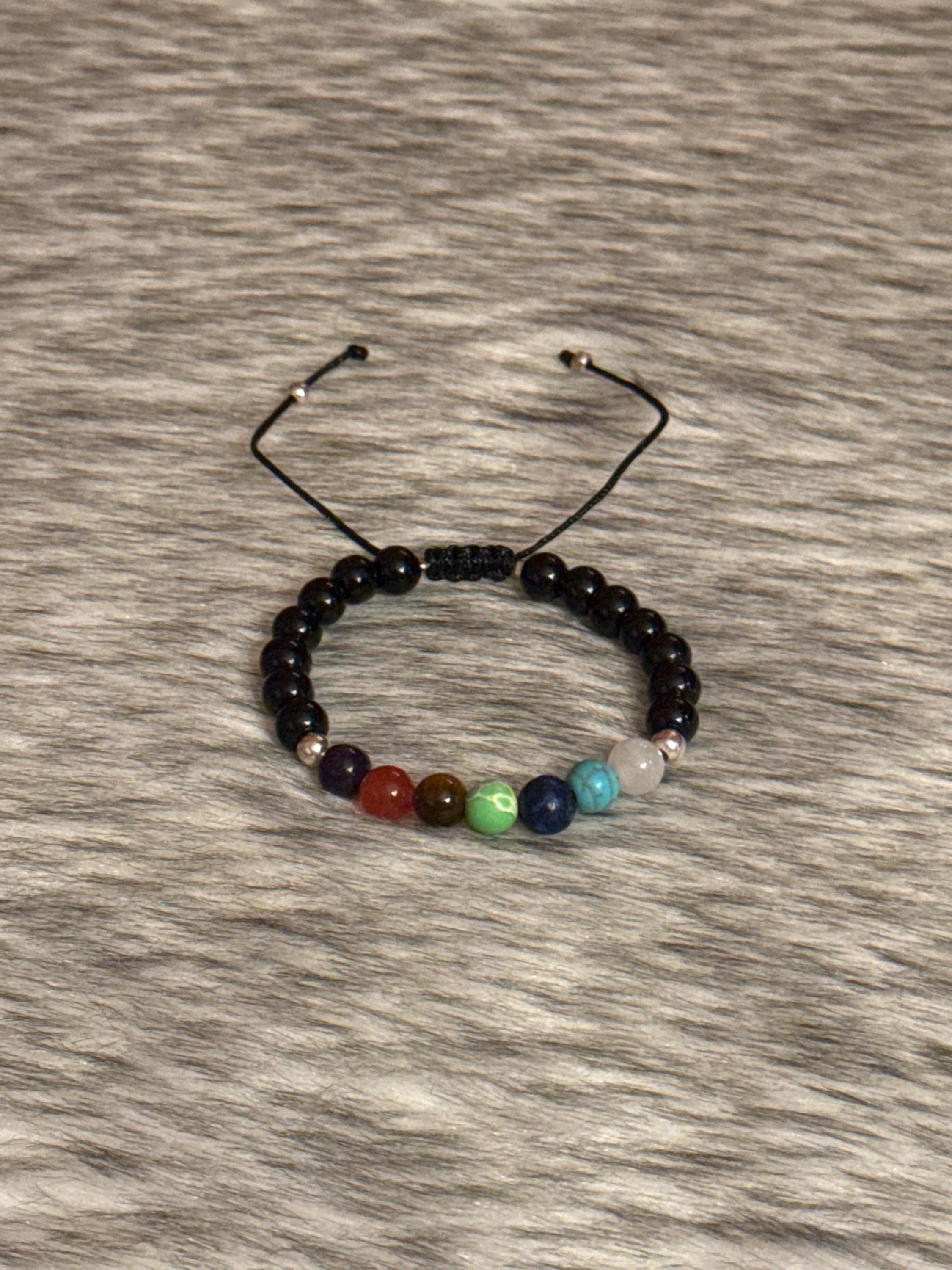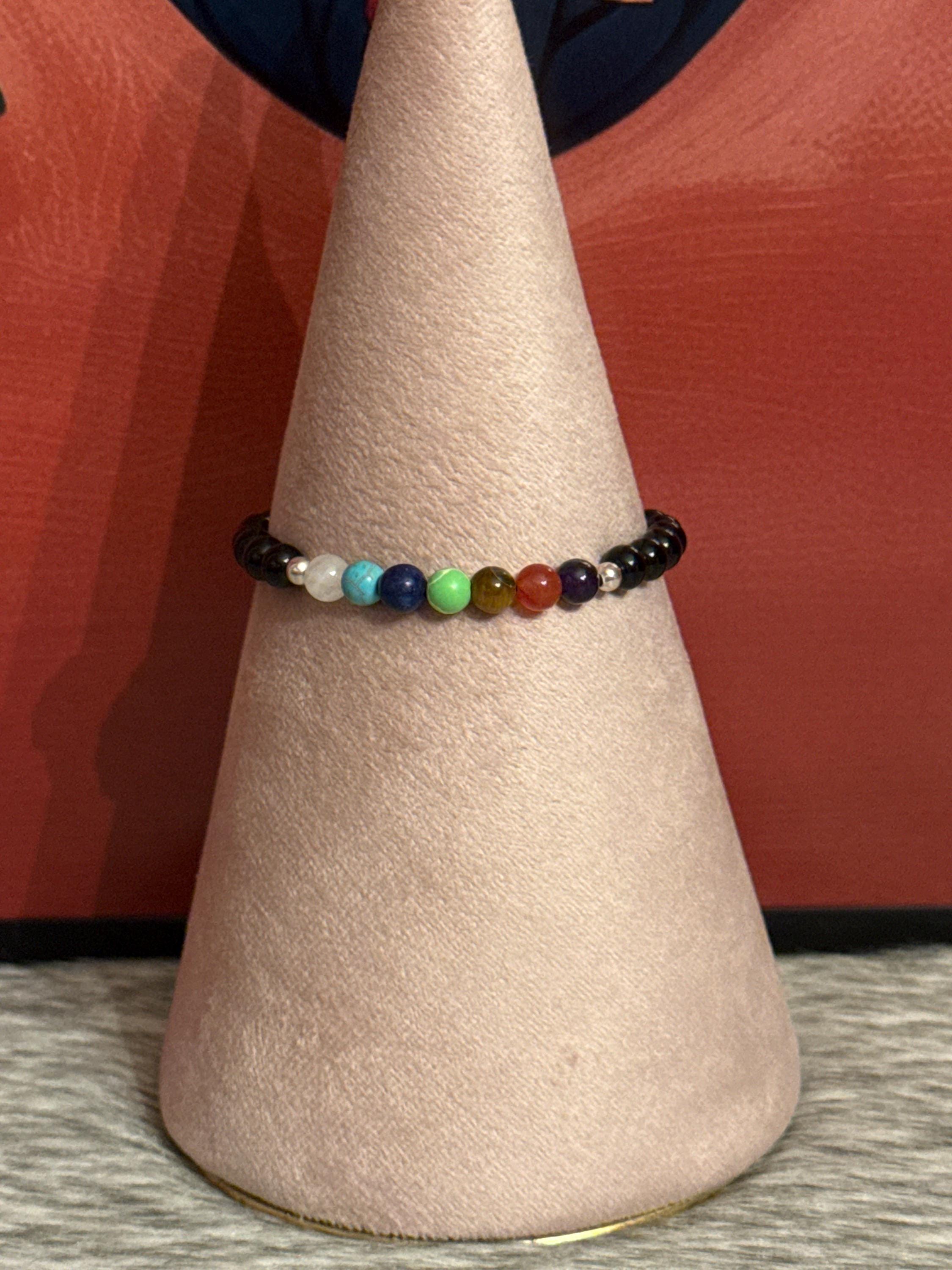 Beautiful unisex 7 chakra thread bracelet with natural agates and 925 silver.