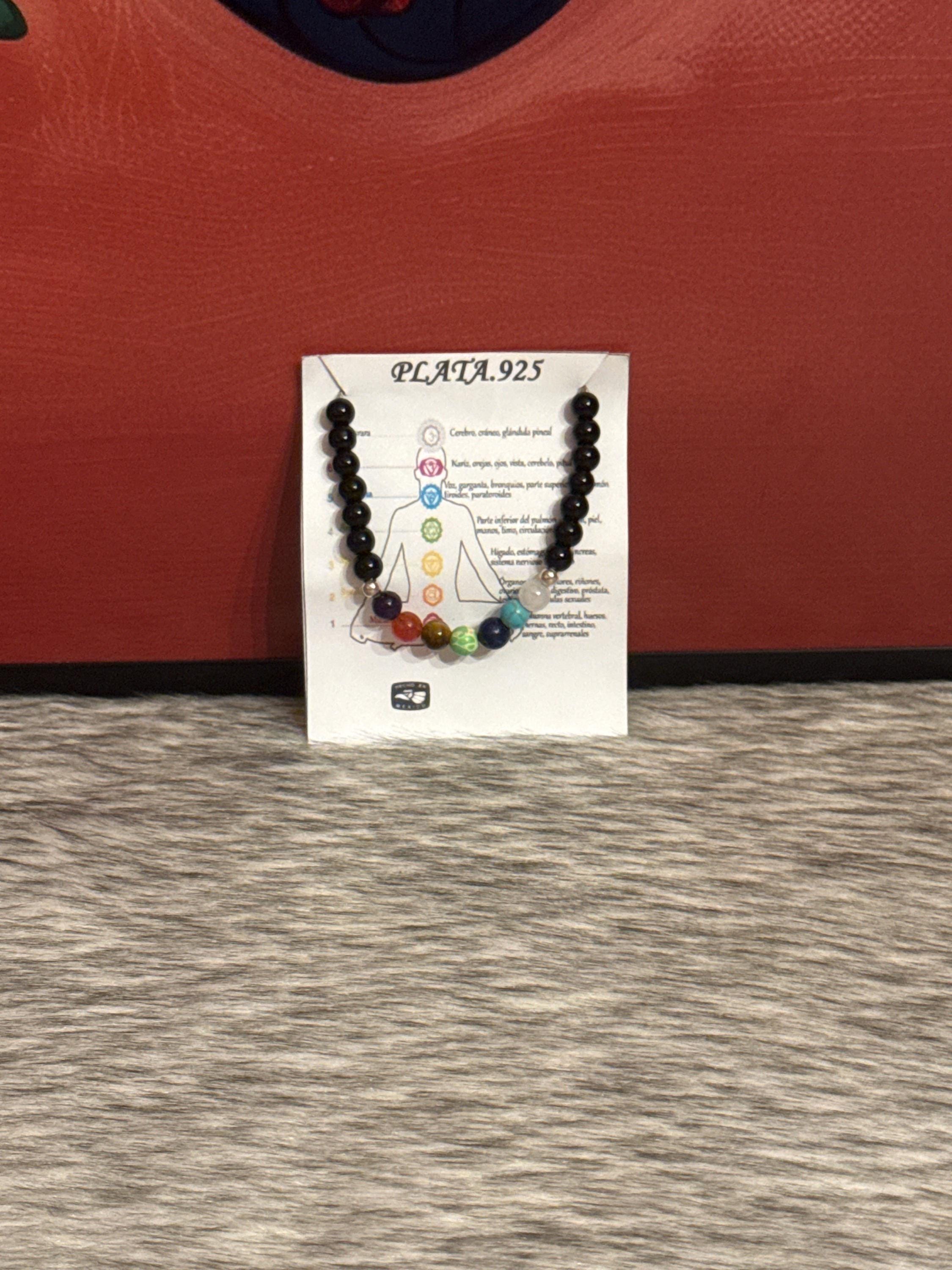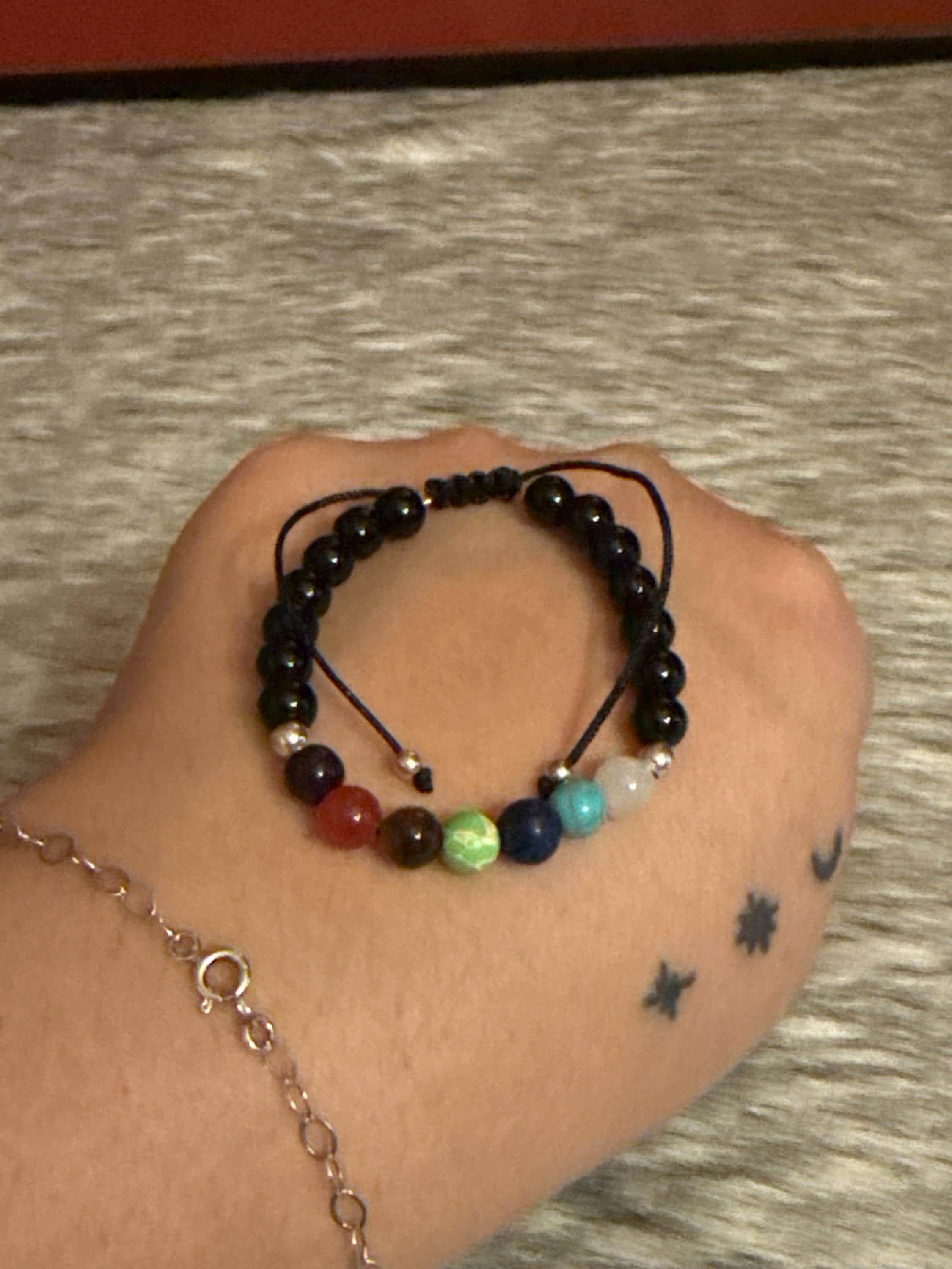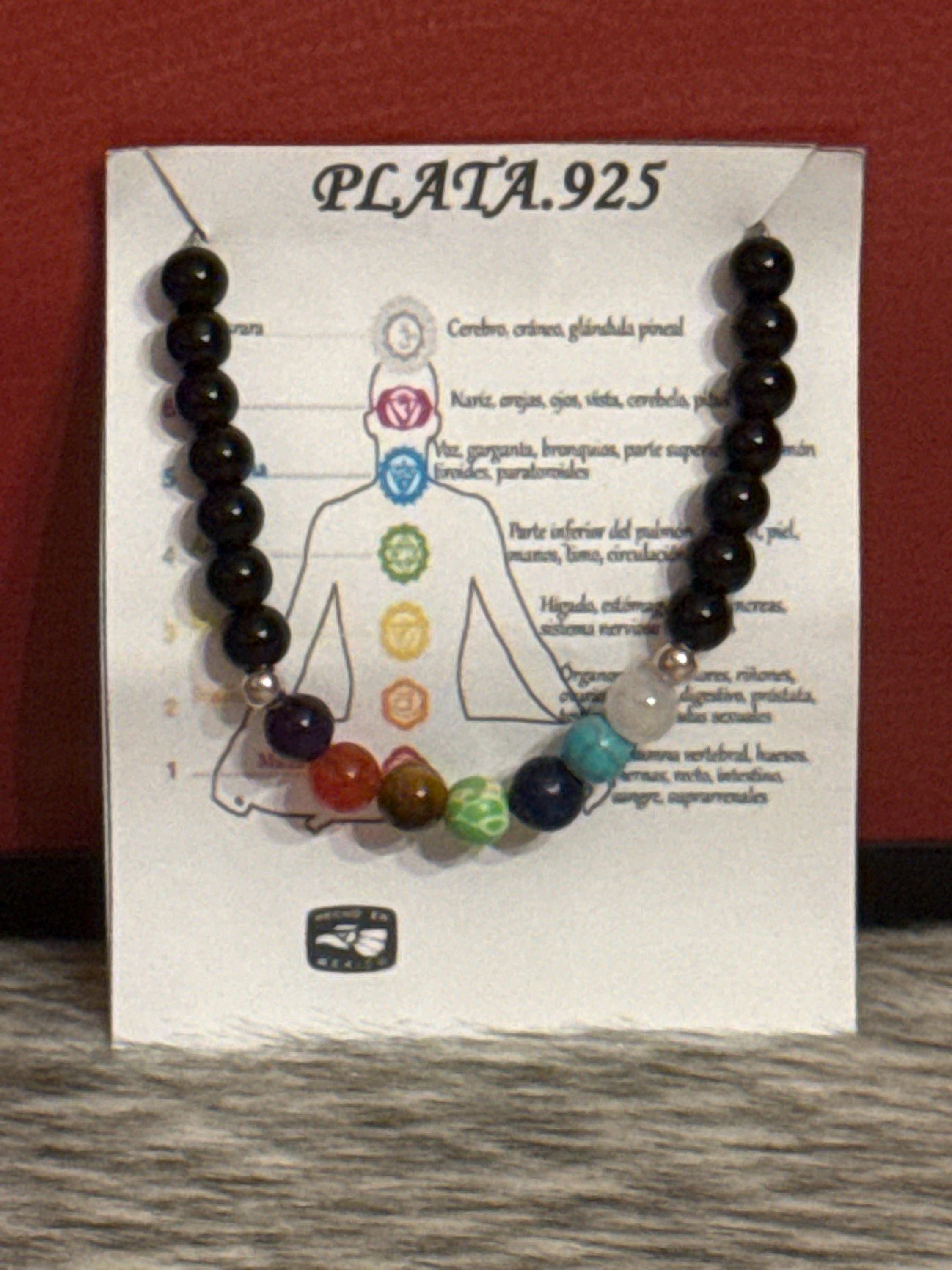 Beautiful unisex 7 chakra thread bracelet with natural agates and 925 silver.