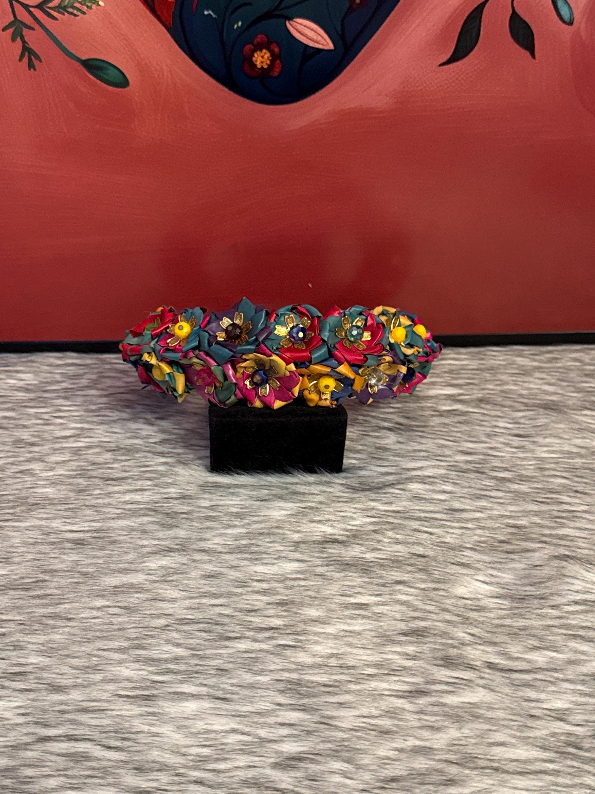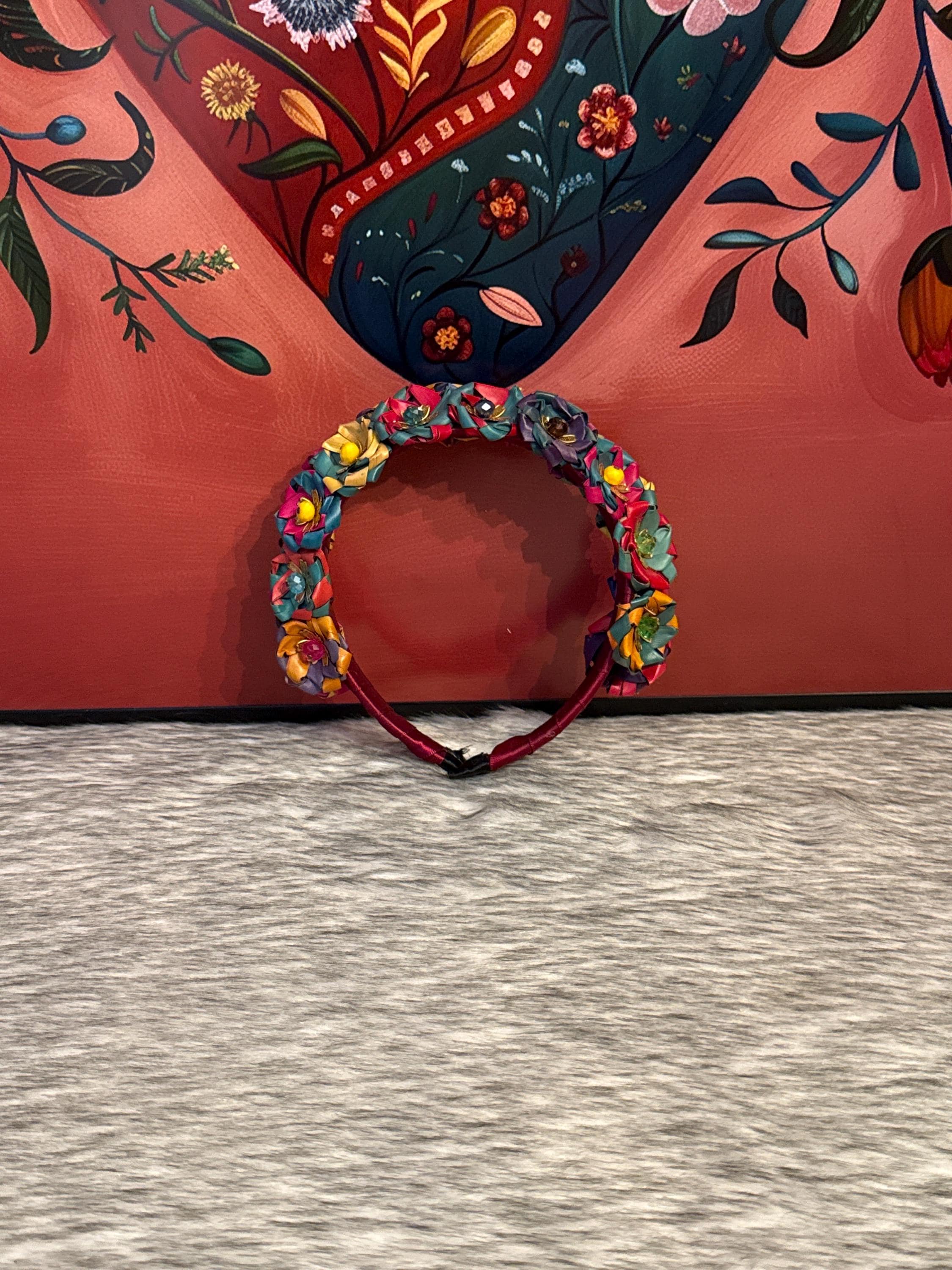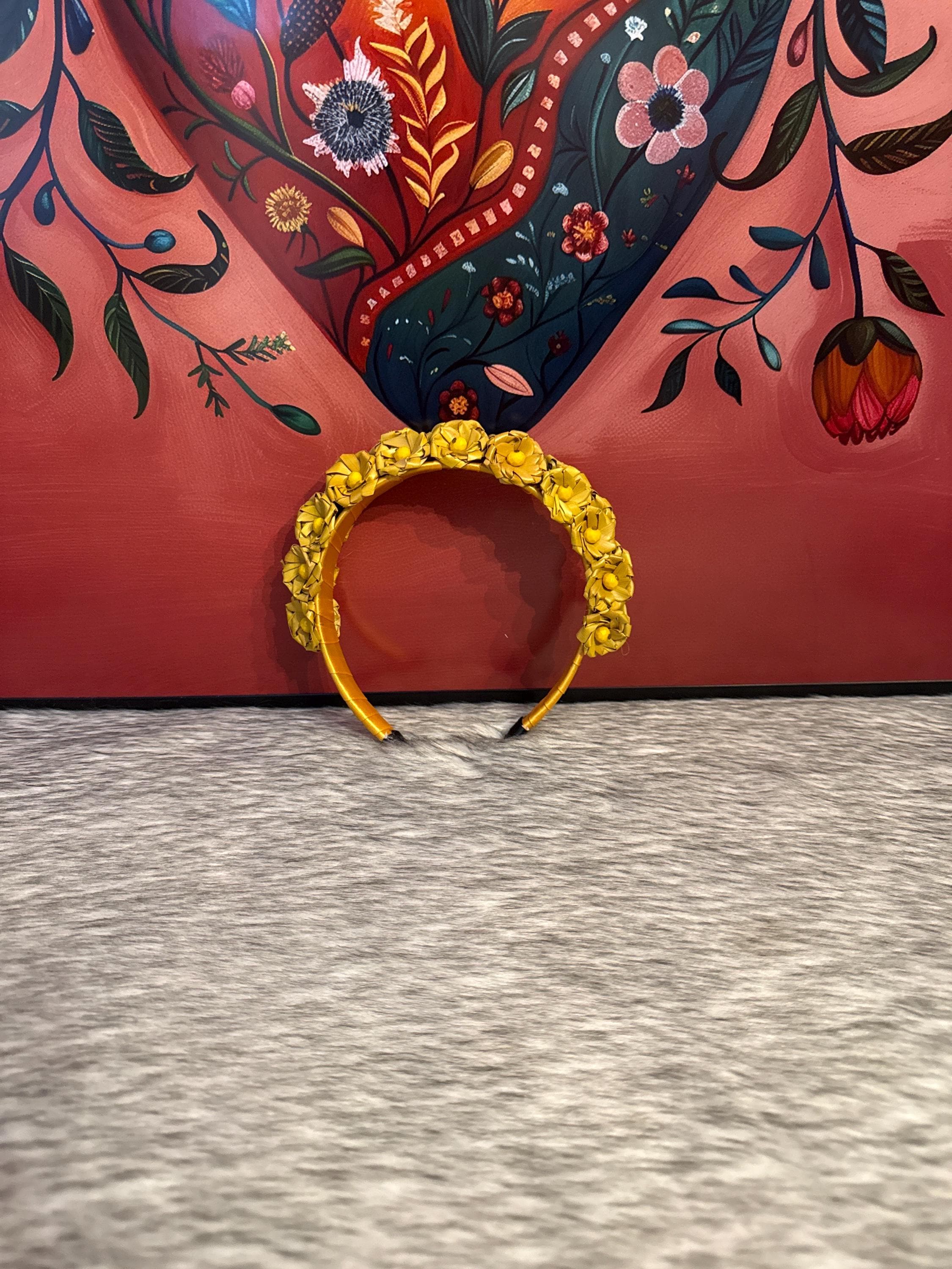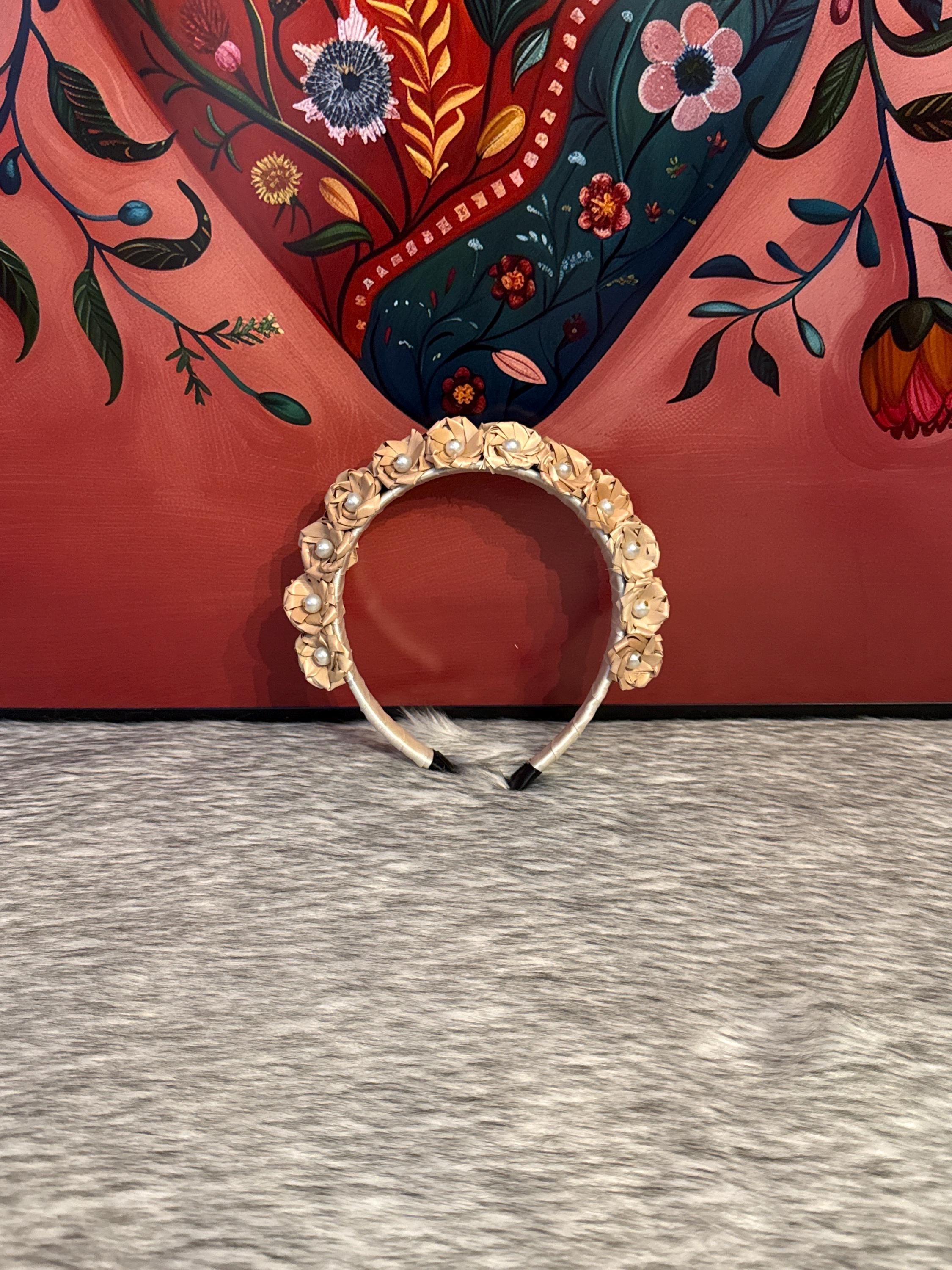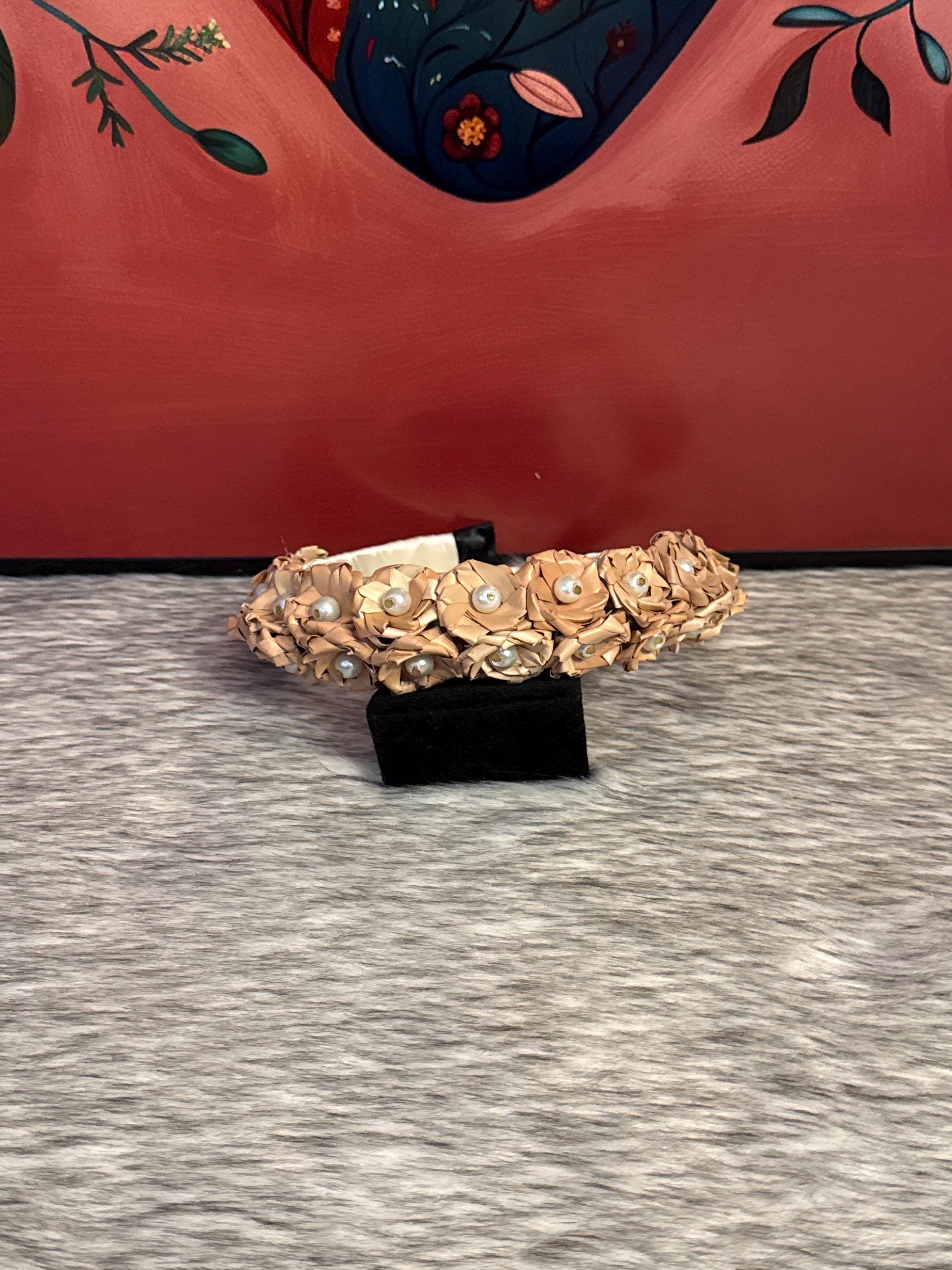Beautiful handmade headband made with palm leaf flowers, handmade by Mexican artisans.