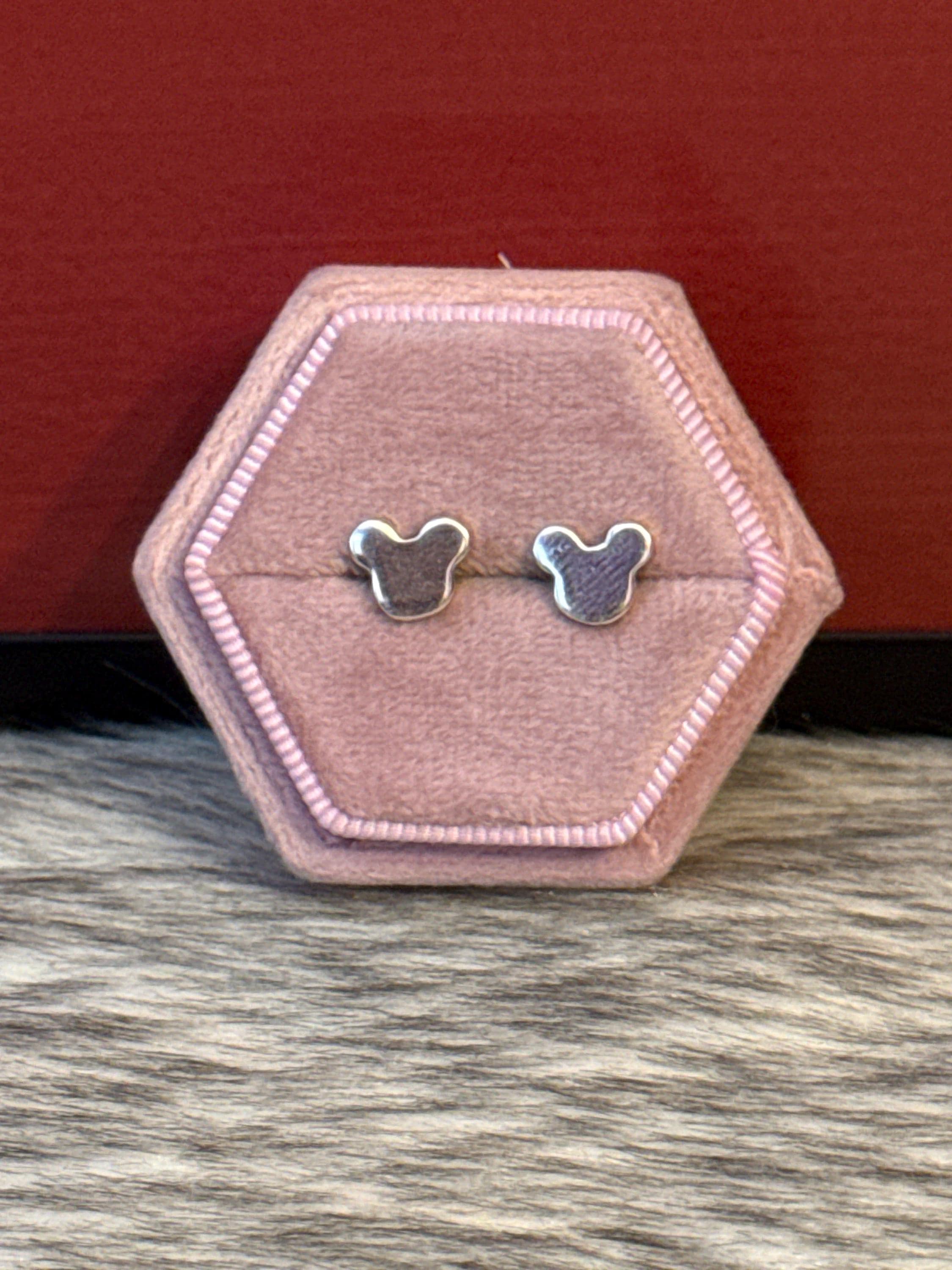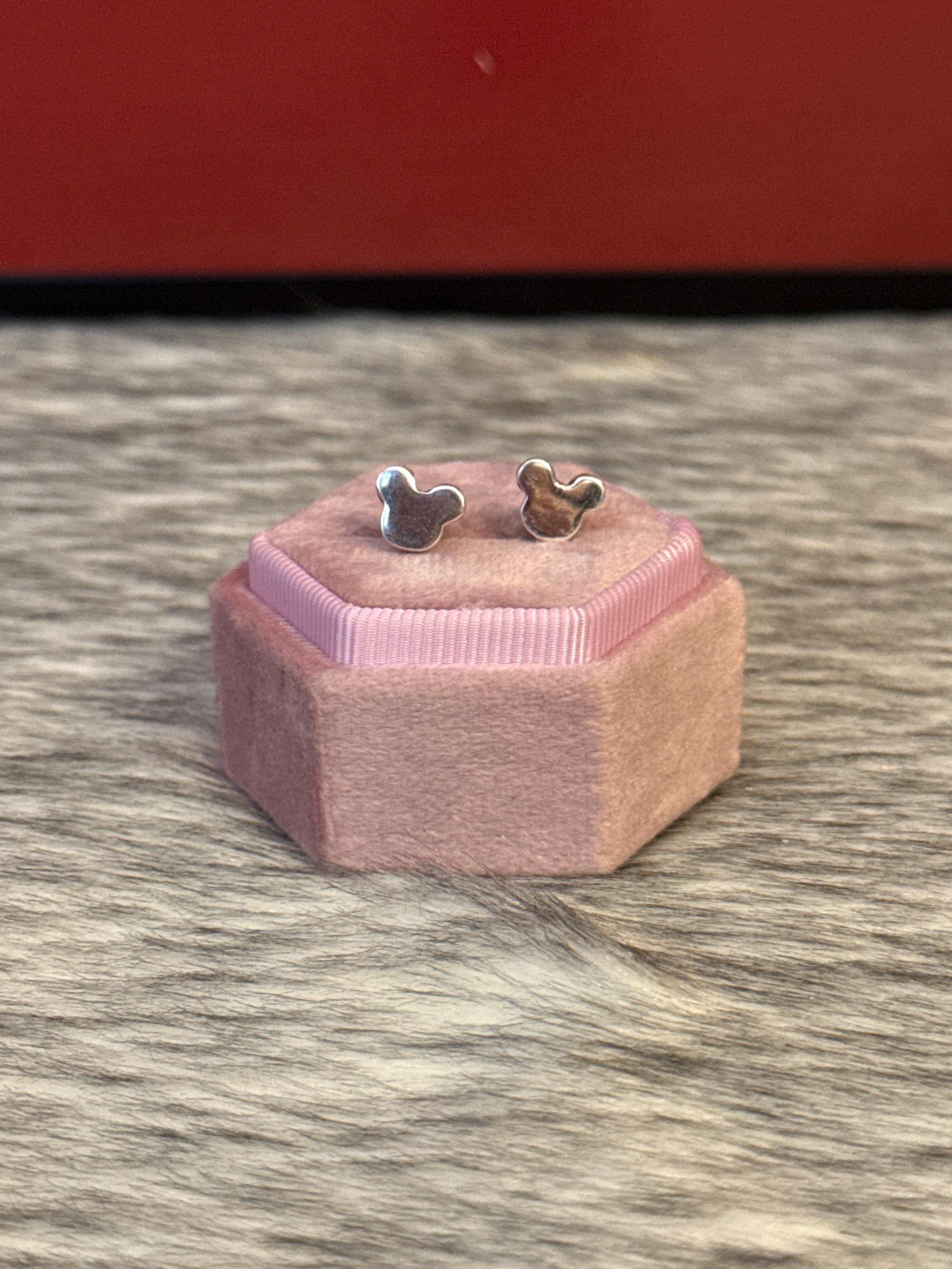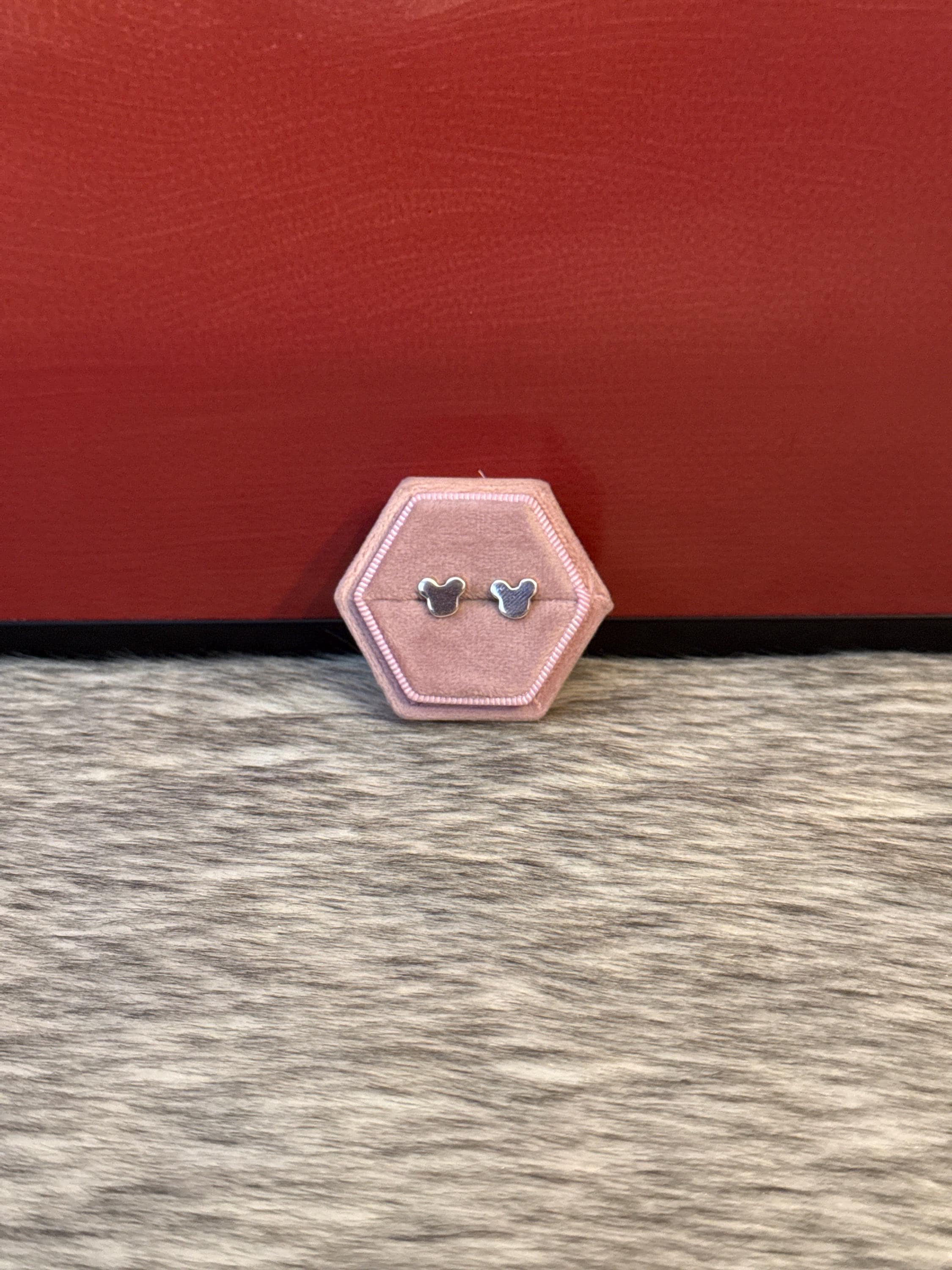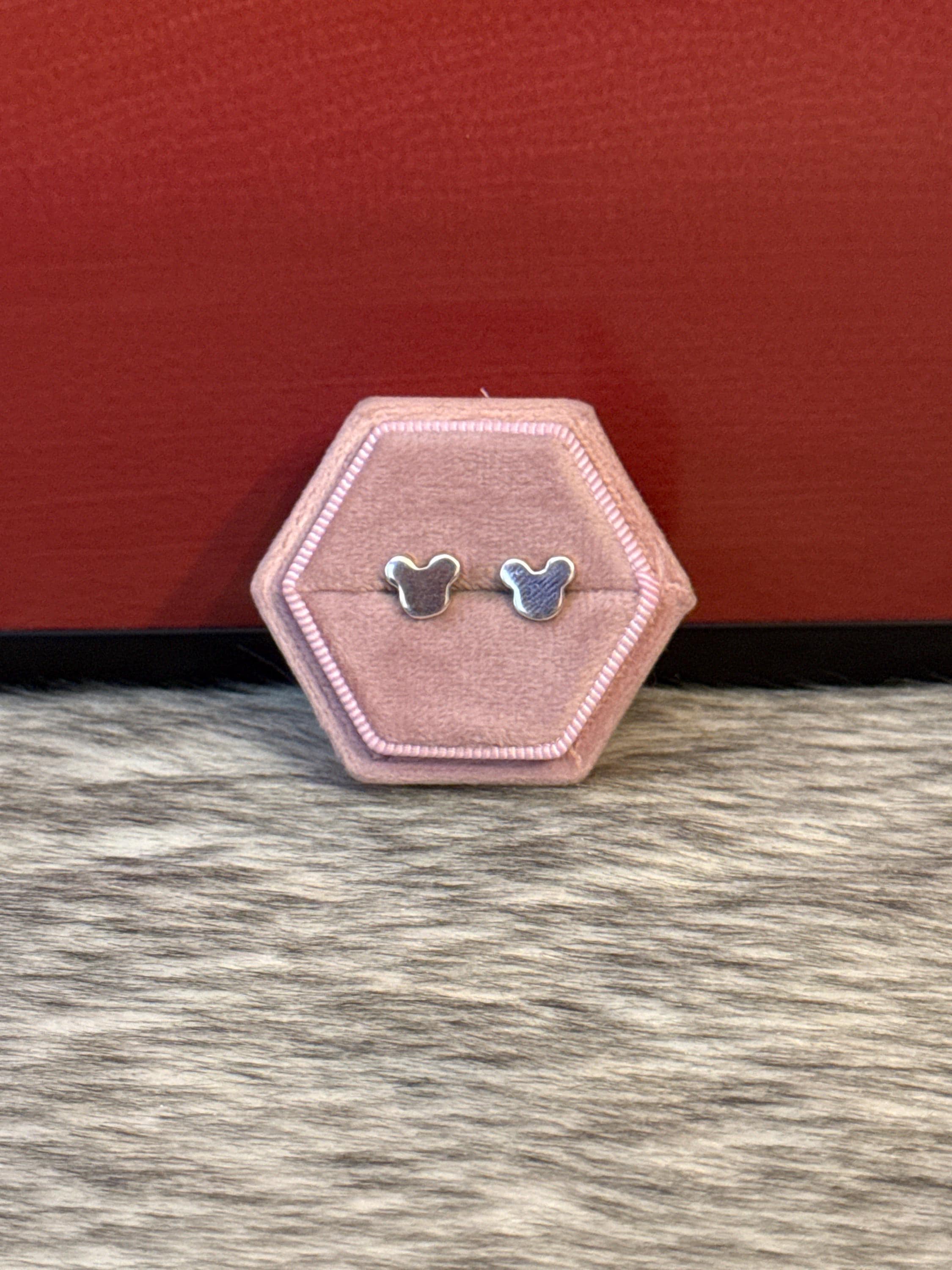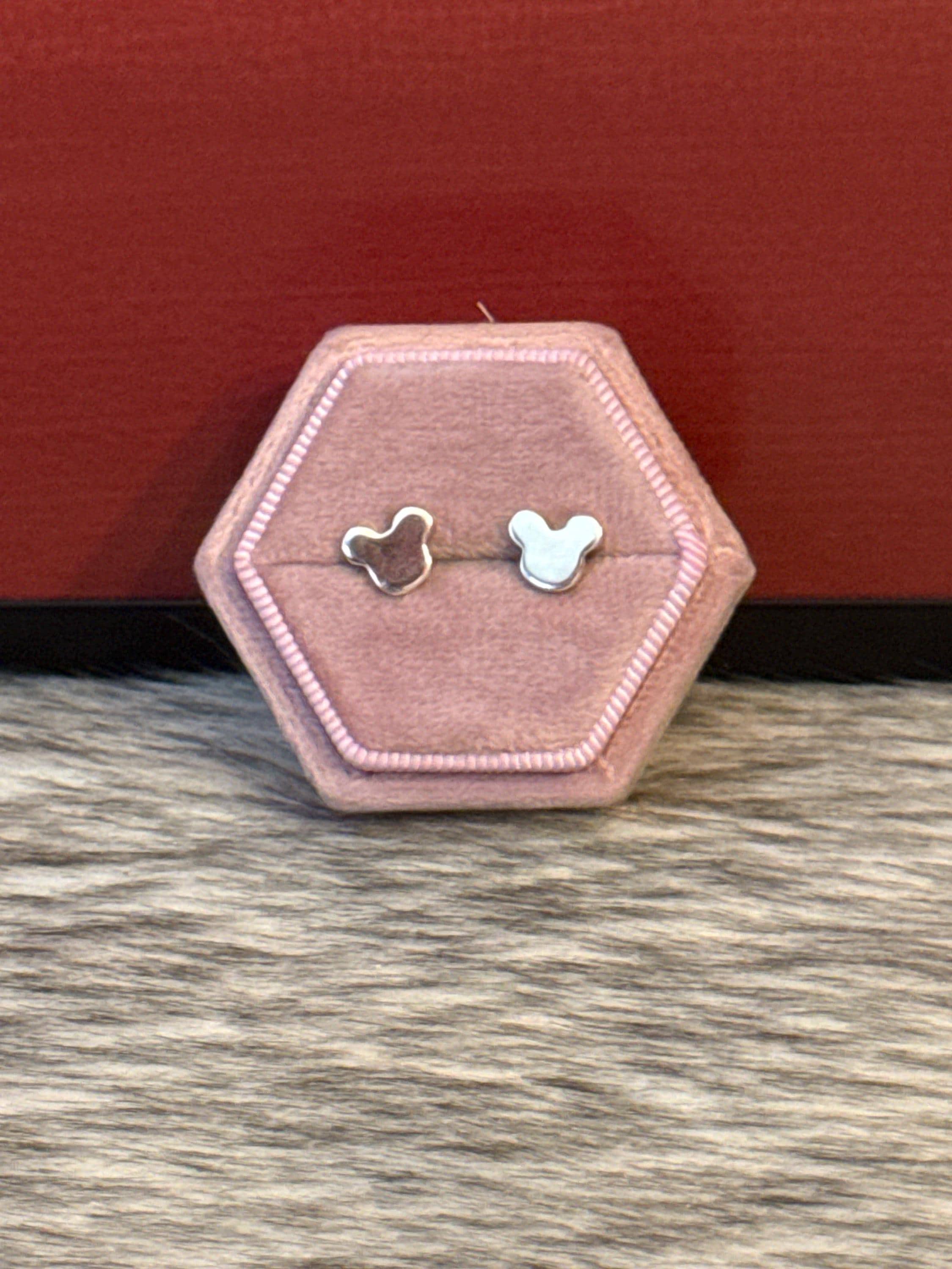 Hermoso par de aretes en forma de Mickey Mouse con broche mariposa ,hechos en plata de ley 925
