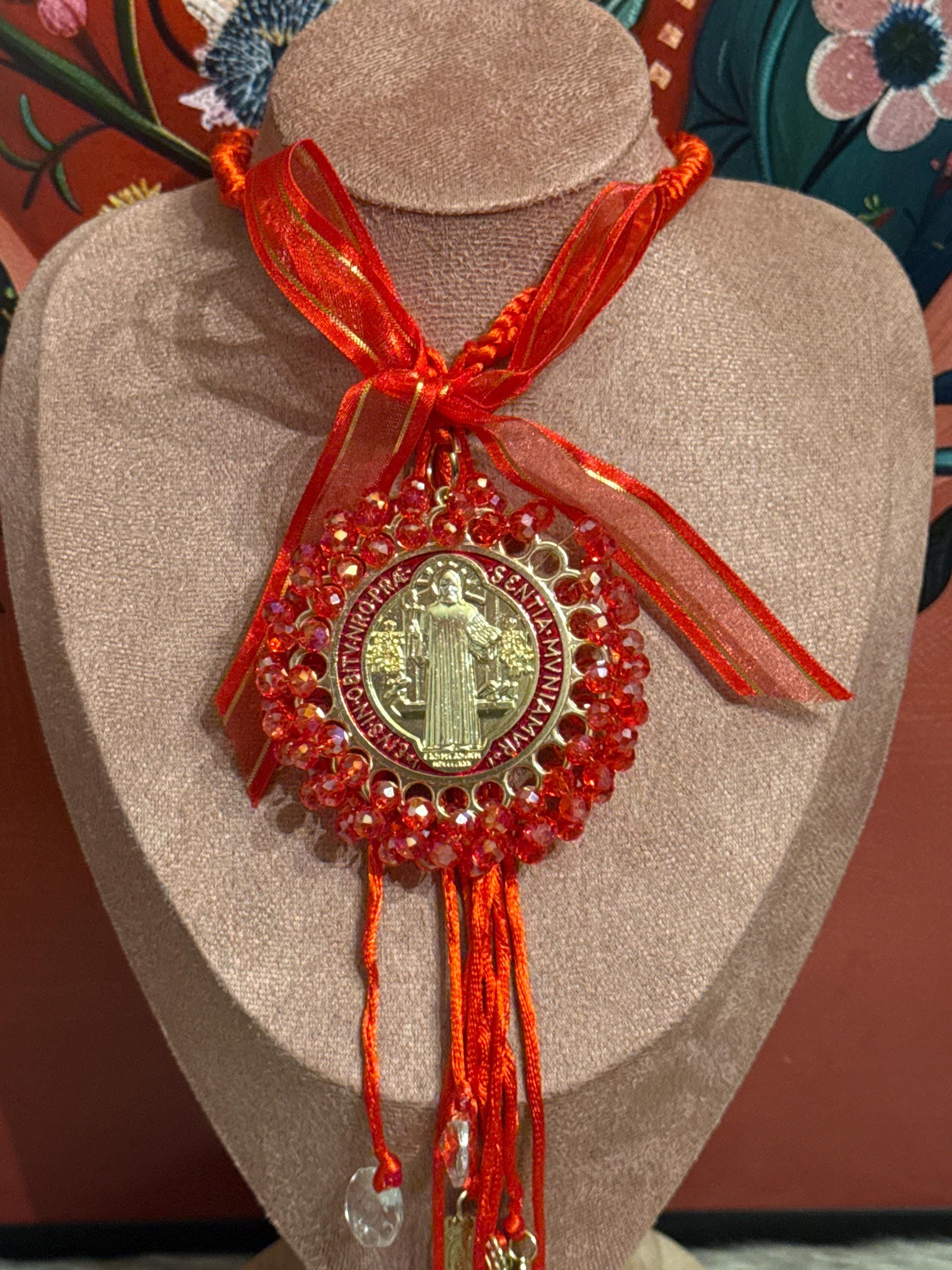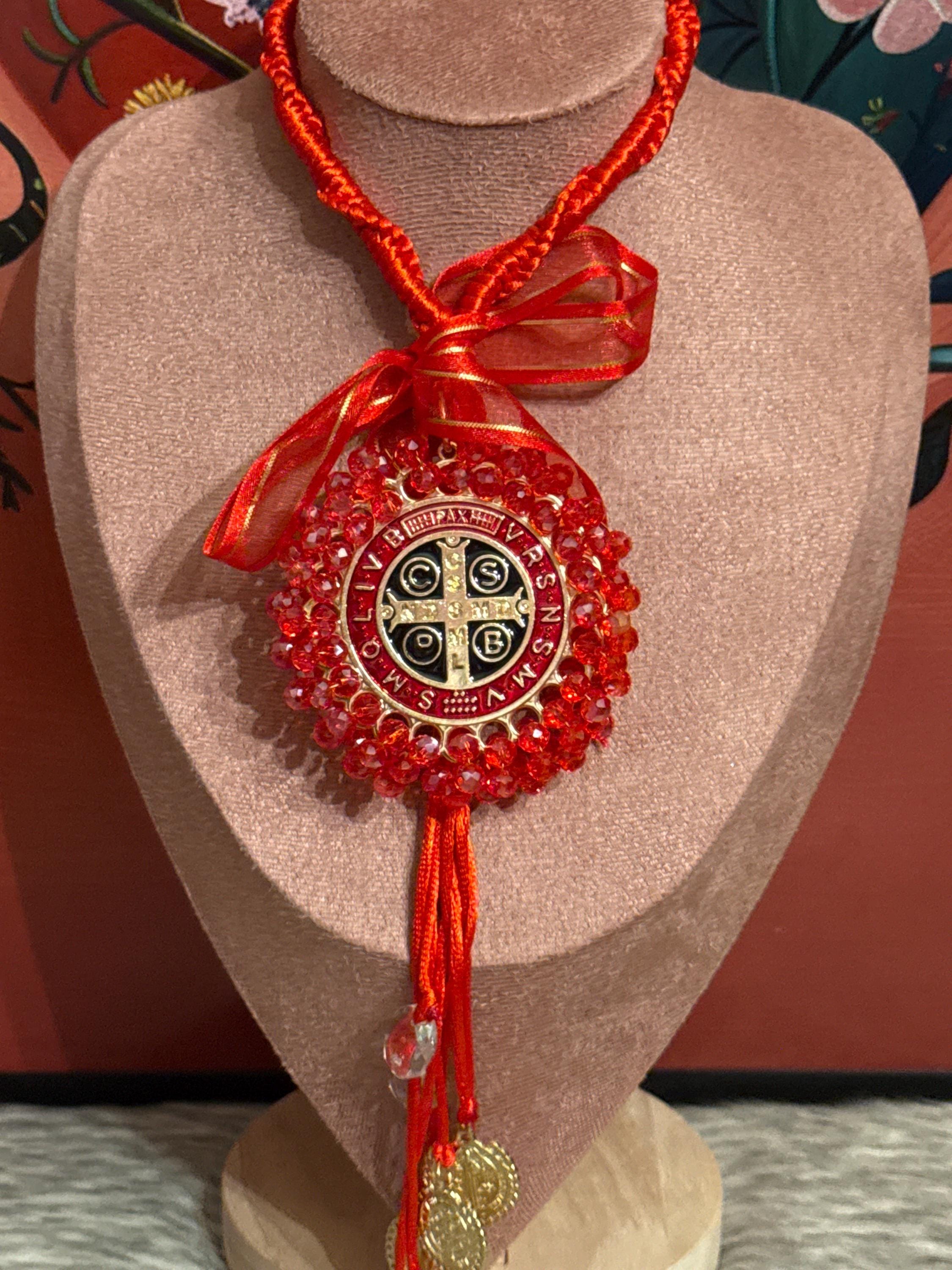 Beautiful handmade St. Benedict Blessing pendant with double medal