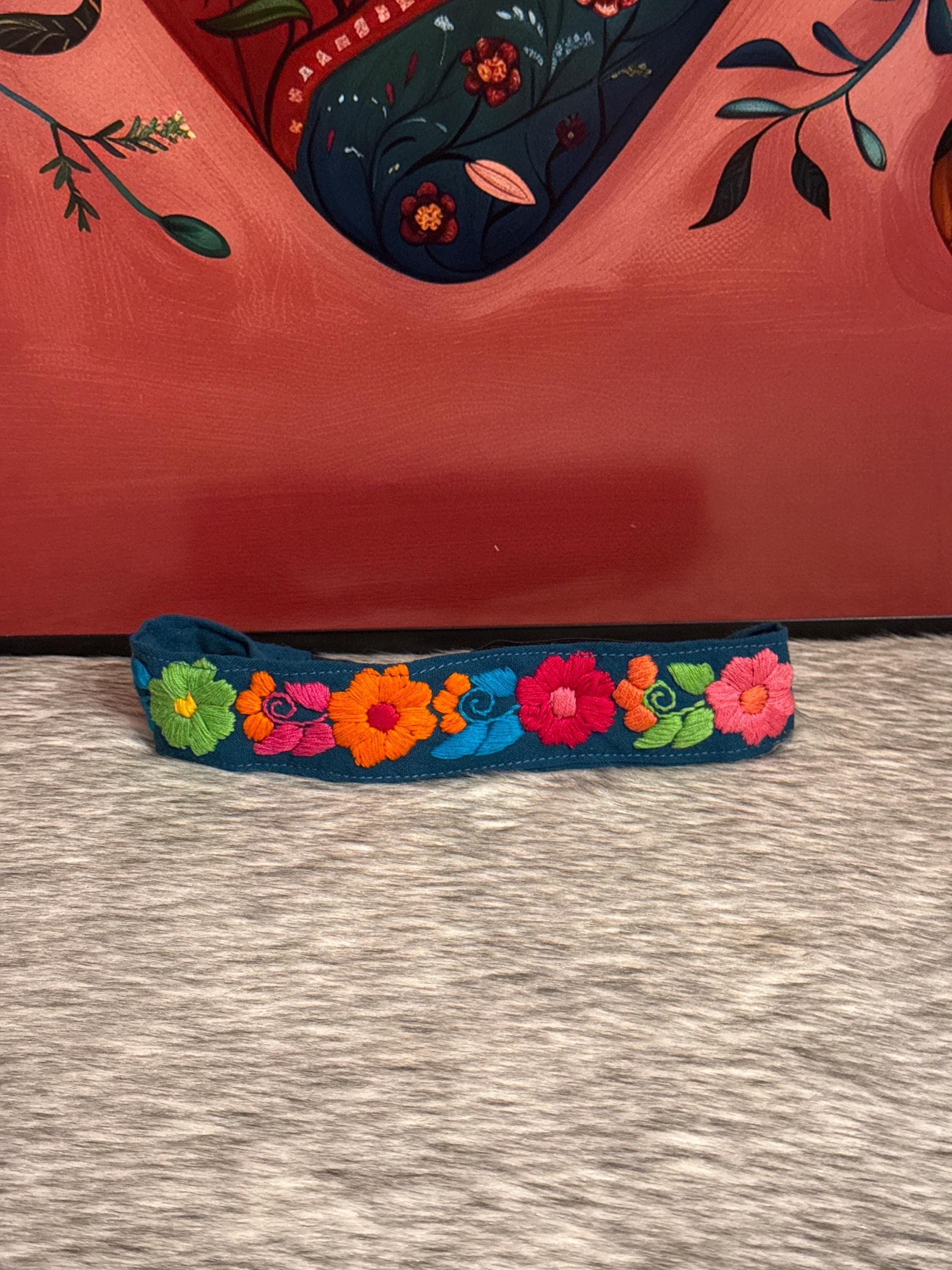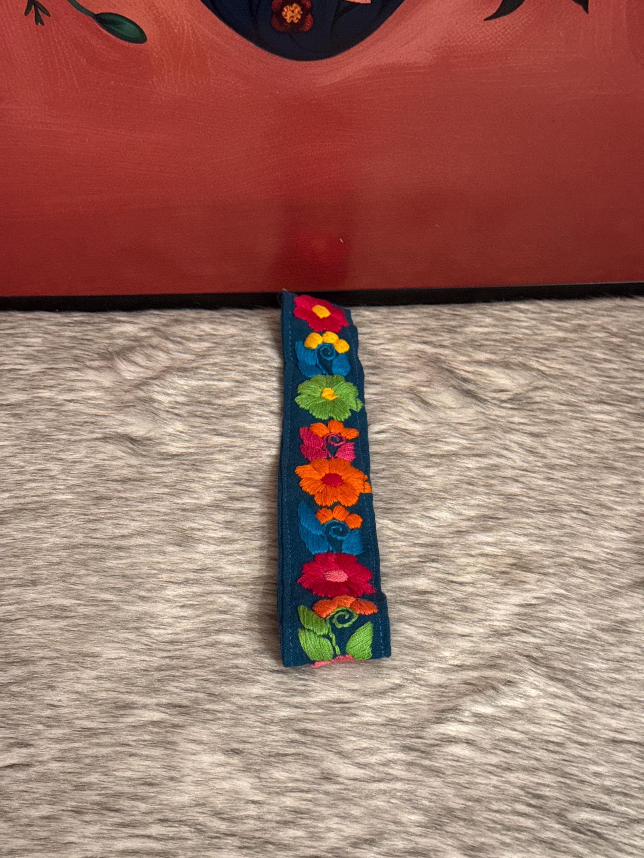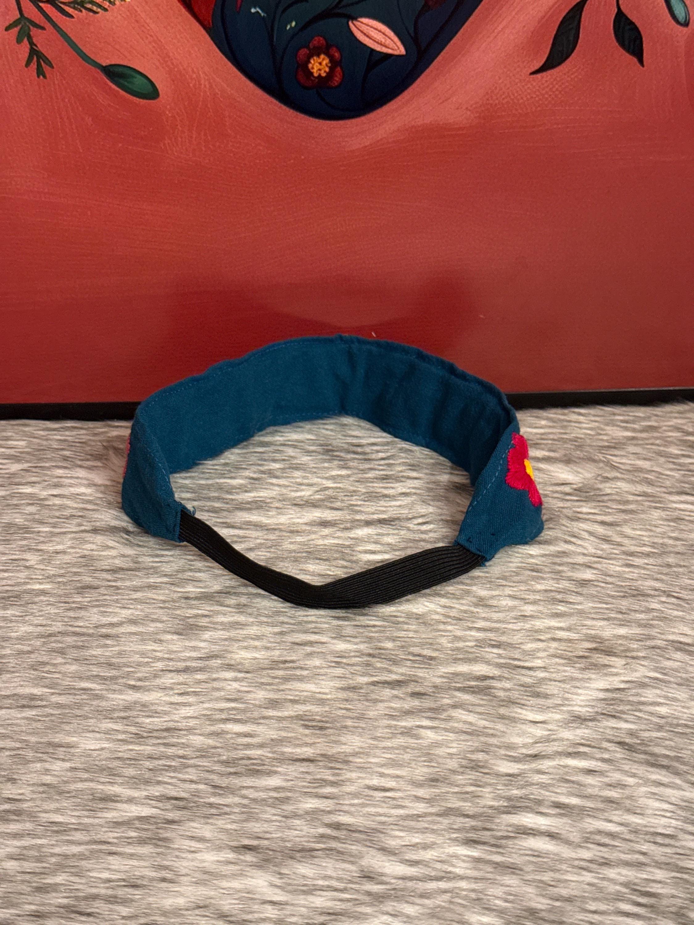 Beautiful elastic headbands with flowers hand-embroidered by Mexican artisans.