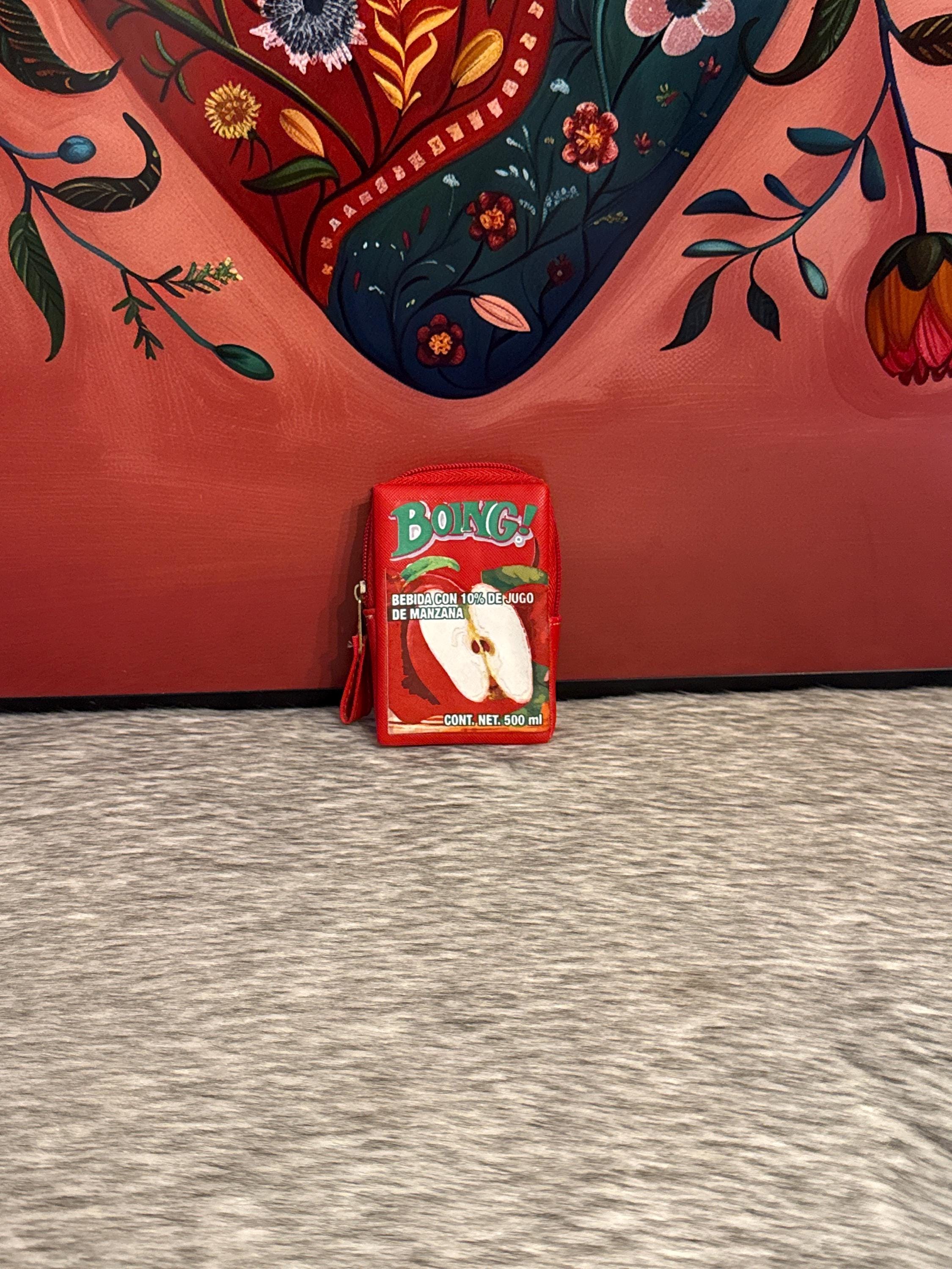 Bolsa monedero Boing de manzana,la bolsa monedero mide aproximadamente 4 pulgadas de largo por 3 pulgadas de ancho.hechos en mexico.