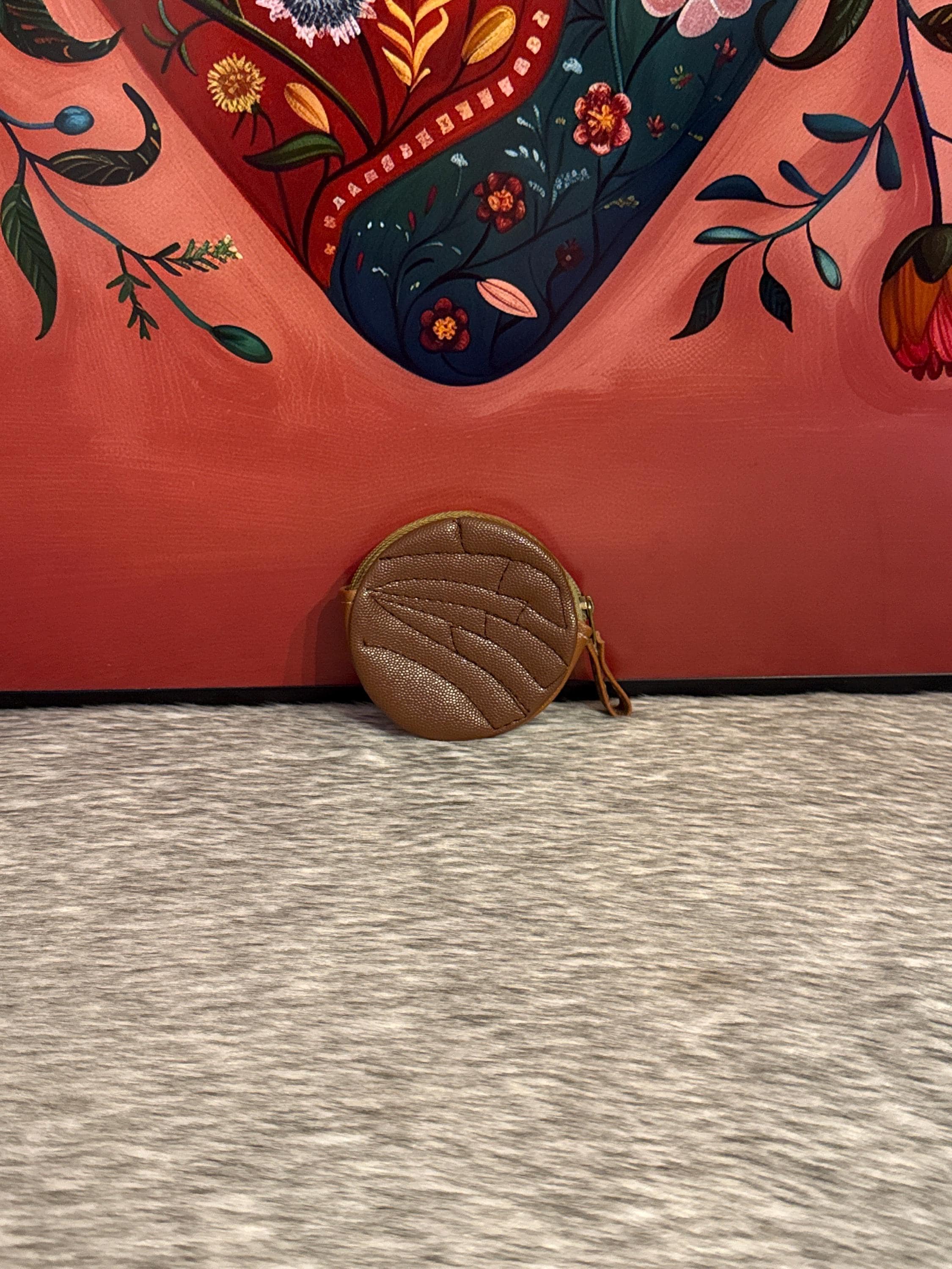 Bolsa monedero Concha Chocolate ,la bolsa monedero mide aproximadamente 4 pulgadas de largo por 3 pulgadas de ancho.hechos en mexico.