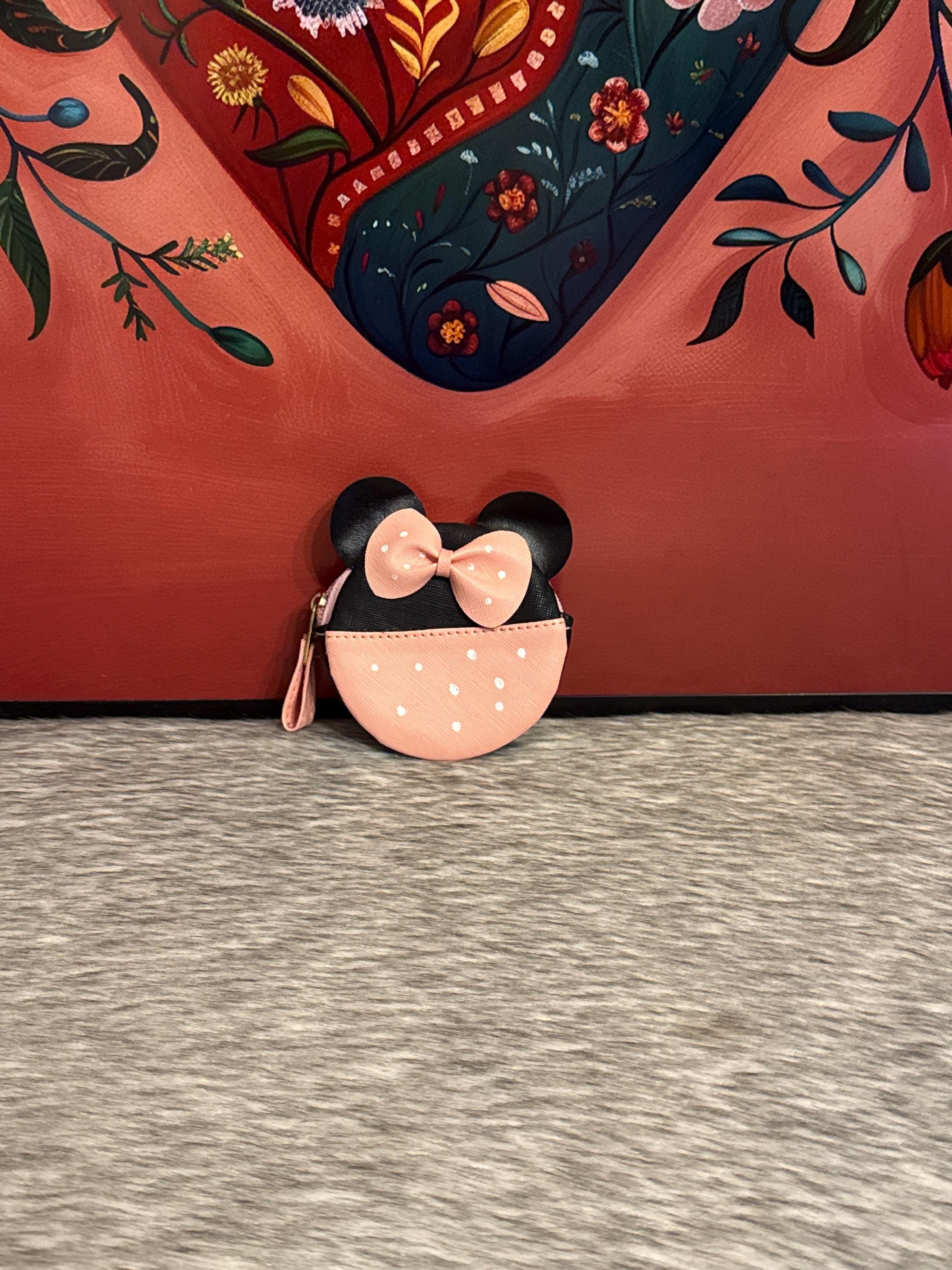 Minnie Mouse coin purse, the coin purse measures approximately 4 inches long by 3 inches wide. Made in Mexico.